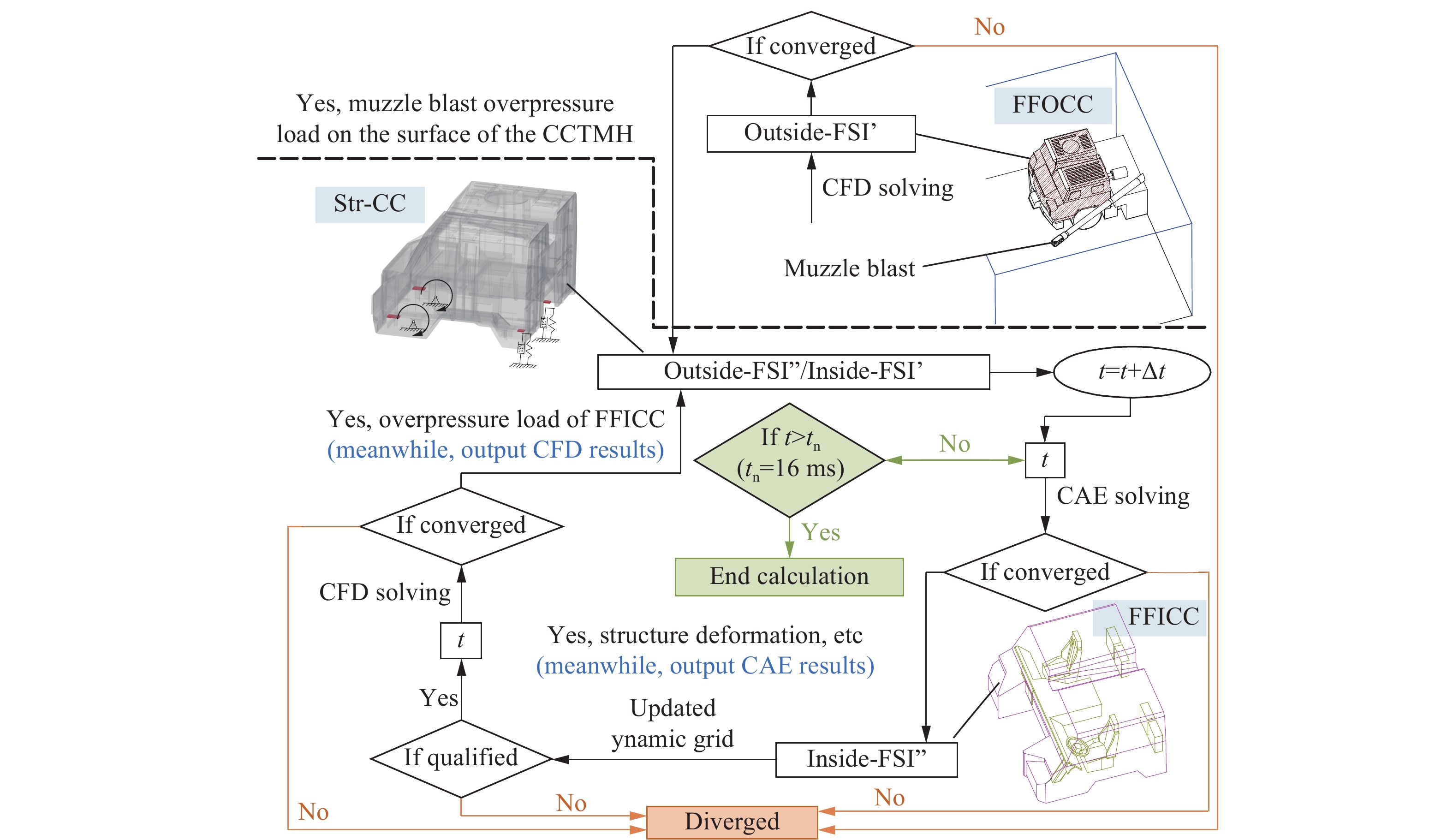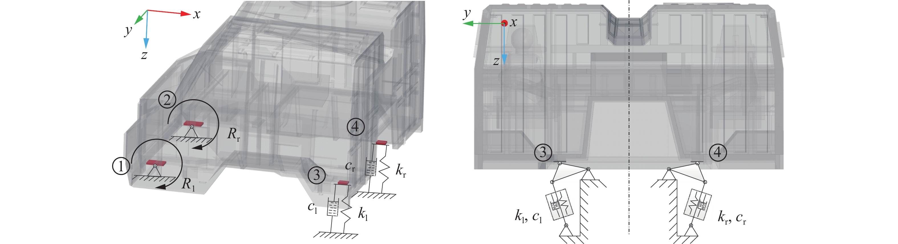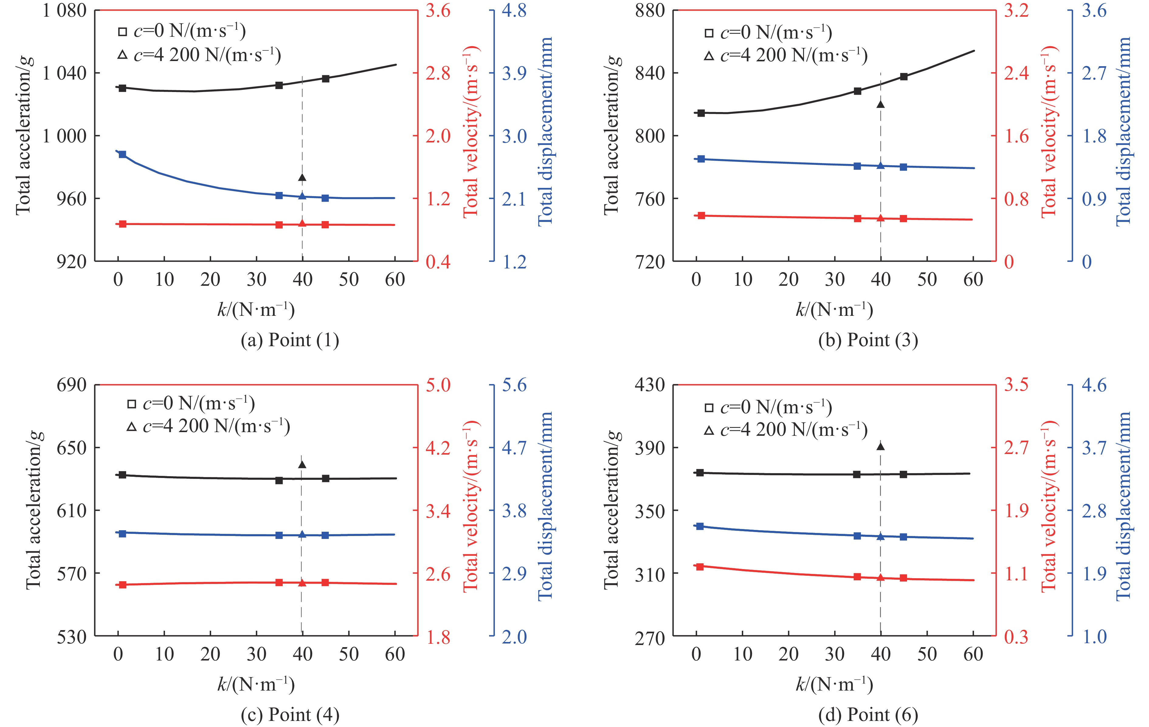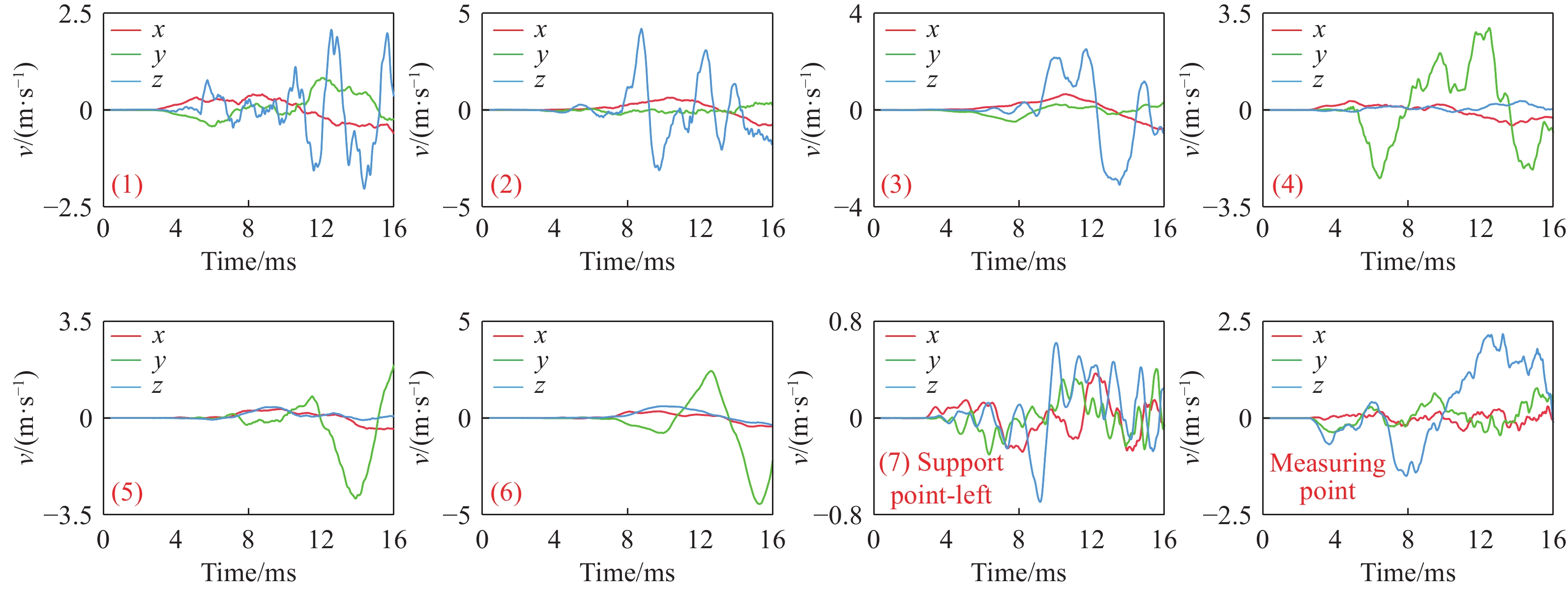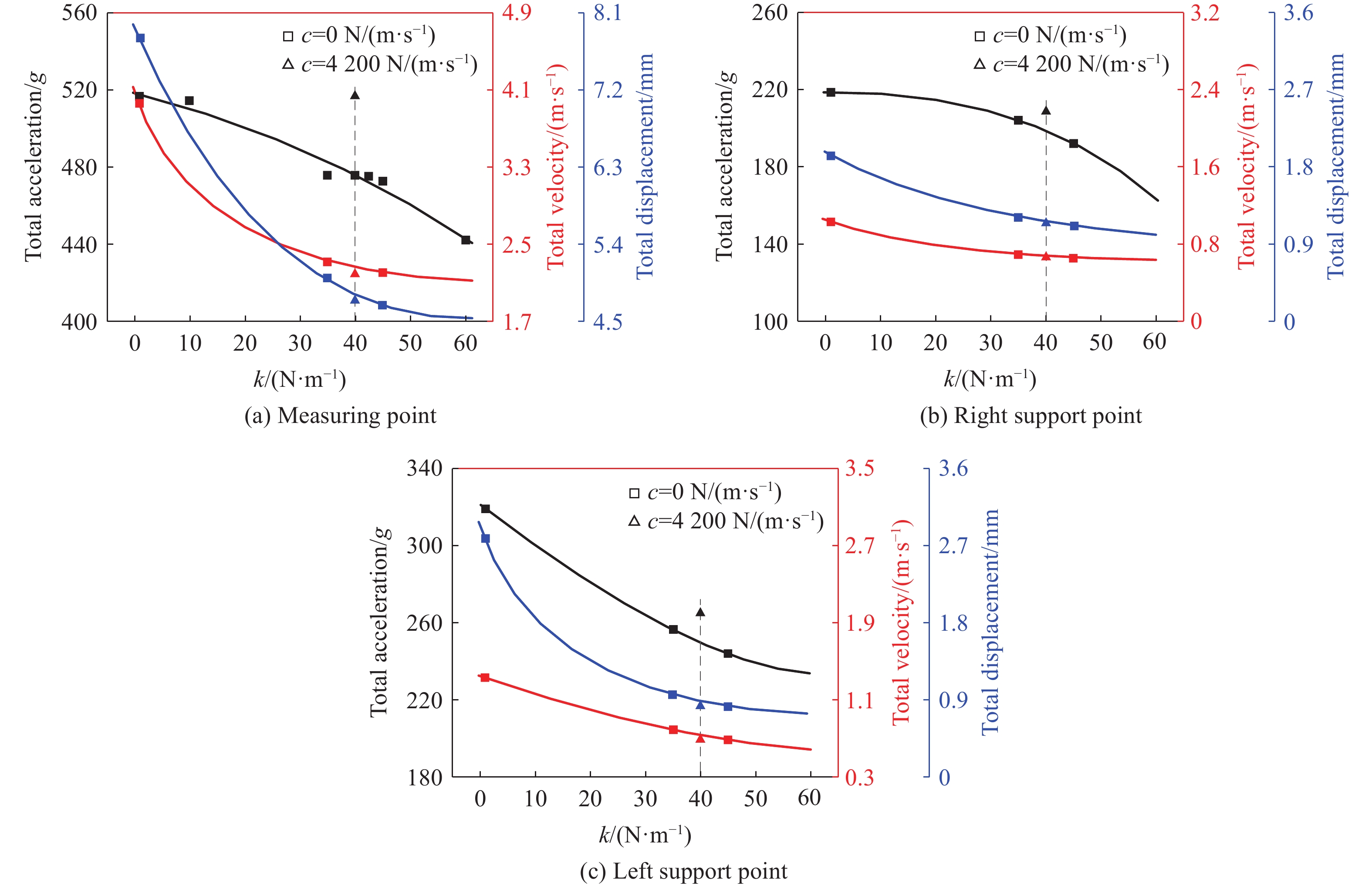 During firing of a truck-mounted howitzer, the crew compartment structure deforms elastically due to the muzzle blast load, creating pressure disturbances in the internal flow field of cabin. The resulting overpressure causes a significant threat to personnel and equipment safety. To meet driving requirements, the crew compartment of the truck-mounted howitzer is suspended on the chassis frame via an elastic support structure. At the same time, the stiffness and damping of the support structure are important factors affecting the deformation response of the cabin structure under the impact of the muzzle blast load. Therefore, adjusting the support parameters to optimize the flow field environment inside the crew compartment demonstrates high practical utility. To investigate the effects of different cabin support conditions on the flow field overpressure inside the crew compartment of a truck-mounted howitzer, a foreign trade type of equipment was taken as the object. An entire path numerical model simulating the shock wave propagation from the cannon's muzzle to the interior of the cabin under extreme firing conditions was established. Systematic validation tests were conducted, capturing overpressure data in both the external and internal flow fields of the crew compartment, as well as the acceleration of the cabin structure. Based on the validated numerical model, simulations were performed to calculate the structural responses and internal flow field overpressures under eight different support conditions. The results indicate that while different areas within the cabin exhibit varying sensitivity to changes in support conditions, increasing the support stiffness leads to significant reductions in the peak acceleration and velocity of the cabin structure, as well as a decrease in the peak overpressure within the internal flow field. However, the presence of damping in the support structure significantly enhances the acceleration response of the cabin structure, yet it further diminishes its velocity response and lower the peak overpressure in the internal flow field of the crew compartment.