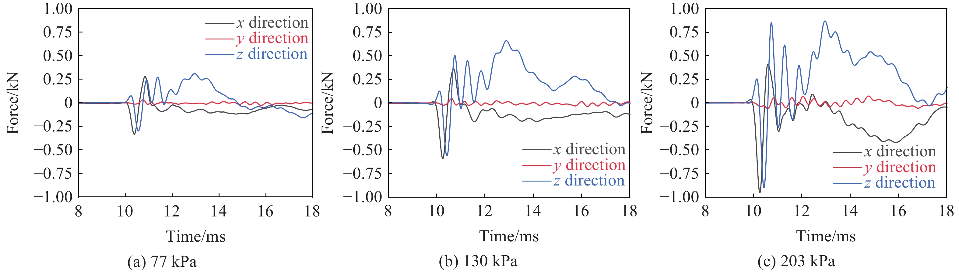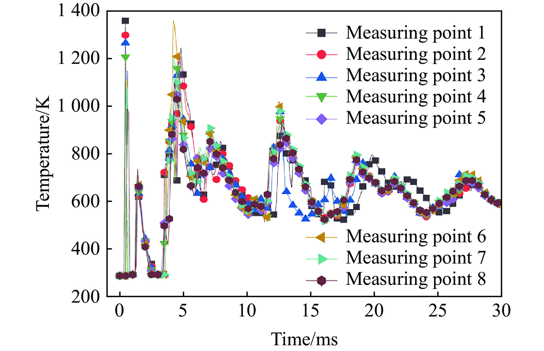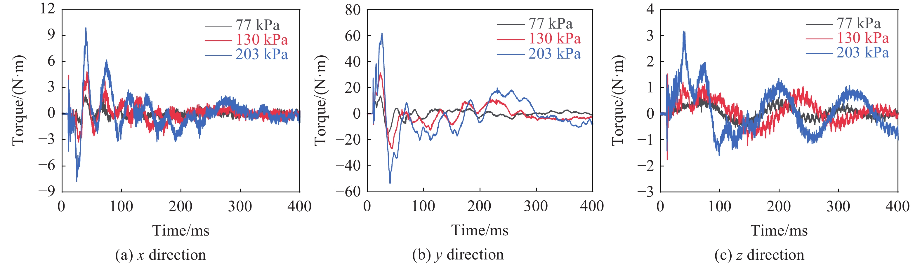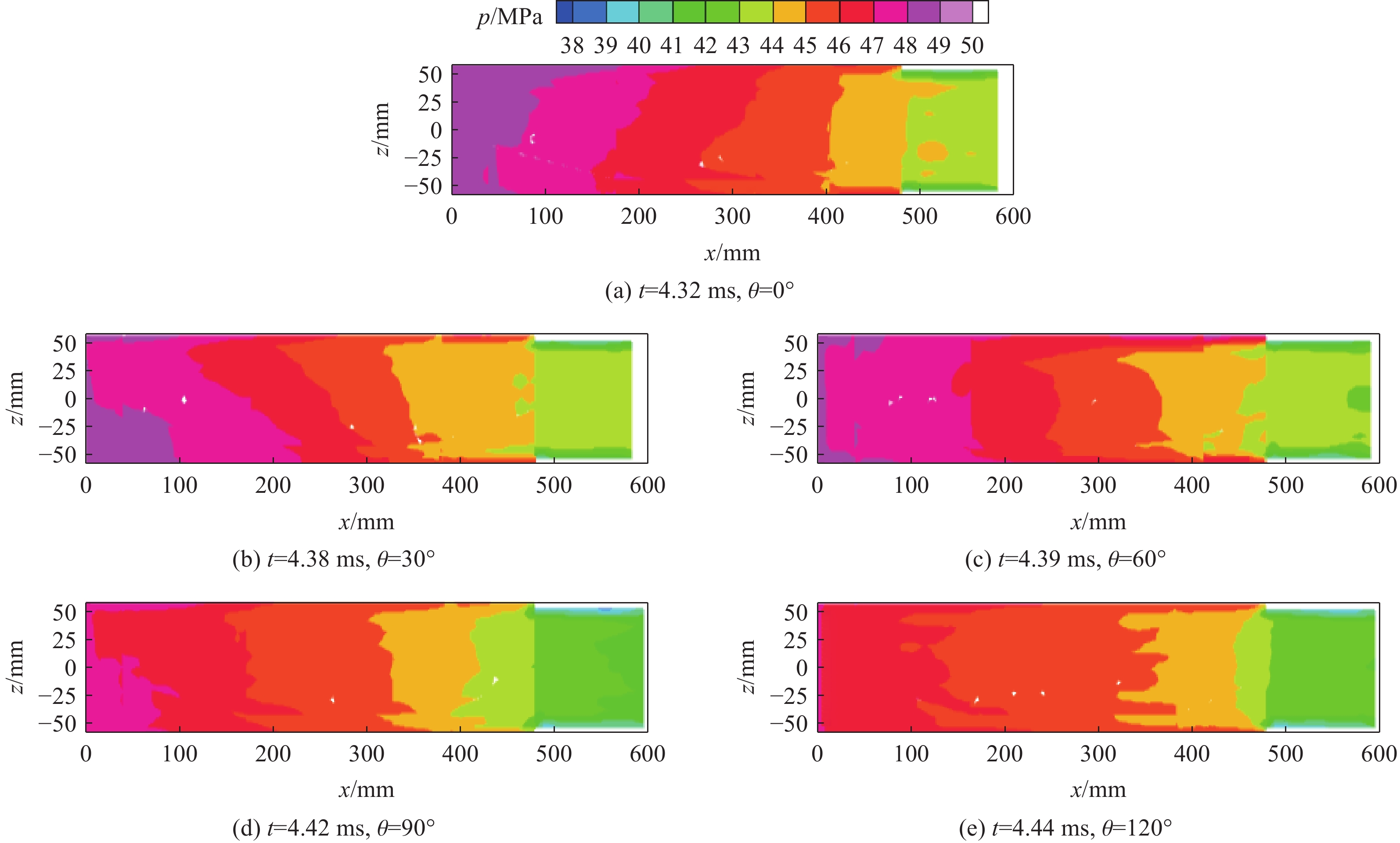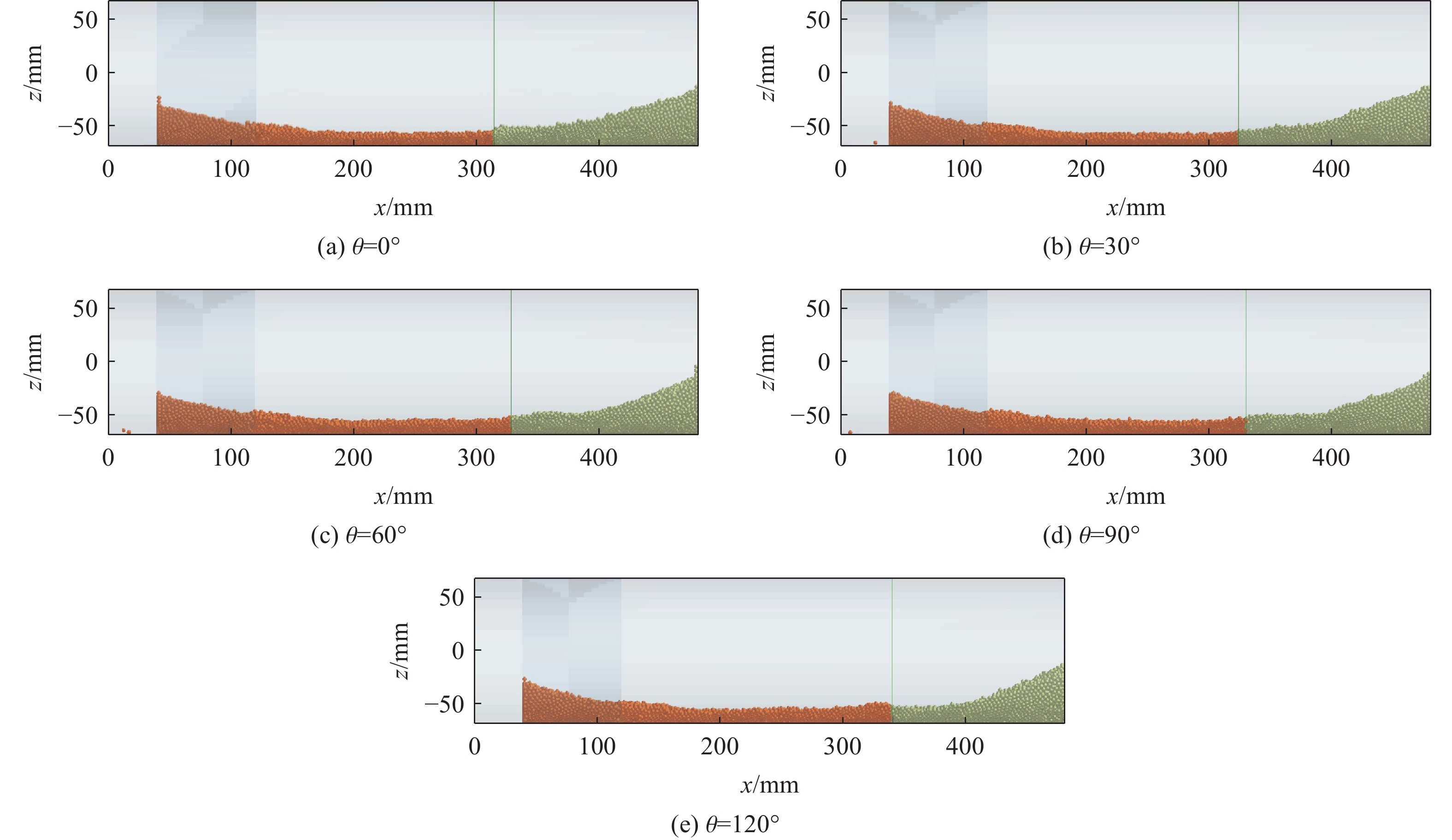 To explore the influence of the propellant bed accumulation distribution on the three-dimensional characteristics of initial pressure wave in the chamber during the internal ballistic process of a large-caliber modular charge gun, a three-dimensional gas-solid two-phase combustion dynamic model of the modular charge was established. Firstly, solid powder particles were treated as discrete phase. Based on Euler-Lagrange method, the motion law and accumulation distribution of propellant particles under different initial broken sizes of cartridge end caps were simulated. Then, the propellant particles were treated as continuous phase and the evolution of pressure distribution in the chamber after combustion of the powder bed with different accumulation distribution was numerically simulated using the Euler-Euler method. The results show that the characteristics of the three-dimensional flow field in the bore are affected by the difference of the initial fracture size of the cartridge end cap. When the initial breaking angle of the cartridge end cap increases from 0° to 120°, the difference of the propellant particles in the area near breech and the area near forcing cone decreases from 12.2% to 0.6% after the dispersion and settlement of the propellant particles. Additionally, the absolute value of the initial negative pressure difference between the breech and the forcing cone decreases from 1.62 MPa to 0.76 MPa. The start-up time of the bullet is extended from 2.82 ms to 2.94 ms, and the time required for the forcing cone pressure to reach its peak is increases from 4.04 ms to 4.20 ms. At the same time, complex three-dimensional pressure fluctuations were observed in the chamber. Before the bullet movement, the chamber pressure can be divided into four pressure evolution characteristics along the X-axis direction, presenting the pressure with no changing, gradually decreasing, first decreasing and then increasing, as well as gradually increasing. After the bullet movement, the chamber pressure consistently decreases along the X-axis direction. However, along the Y-axis direction, the pressure in the chamber remains essentially unchanged before and after the bullet movement. The pressure in the chamber can be also divided into four pressure evolution characteristics along the Z-axis direction, presenting basically maintaining a constant level, gradually decreasing, first decreasing and then increasing, first decreasing and then increasing and then decreasing. The research results have some reference value for the interior ballistic safety analysis of modular charge guns.