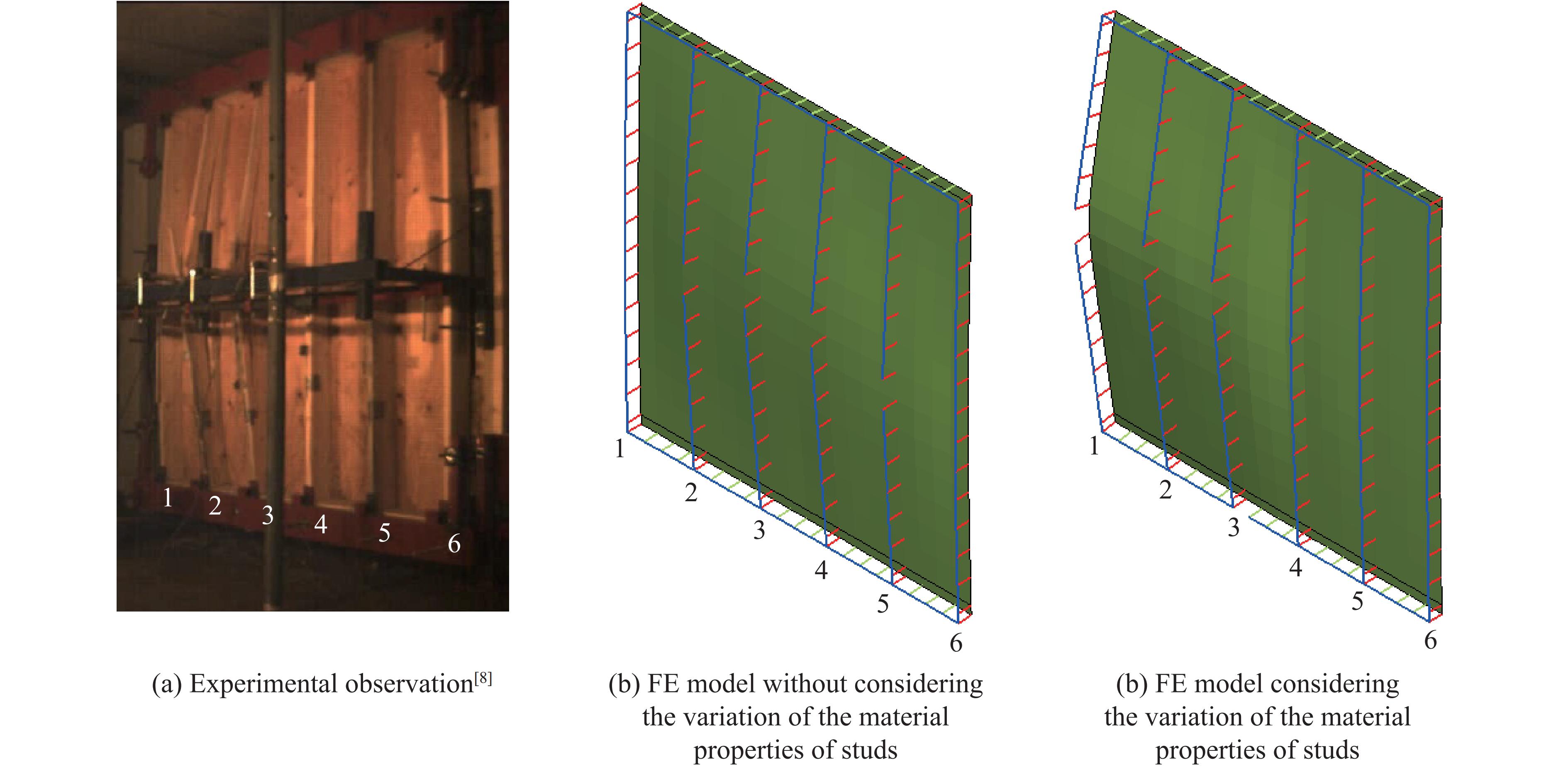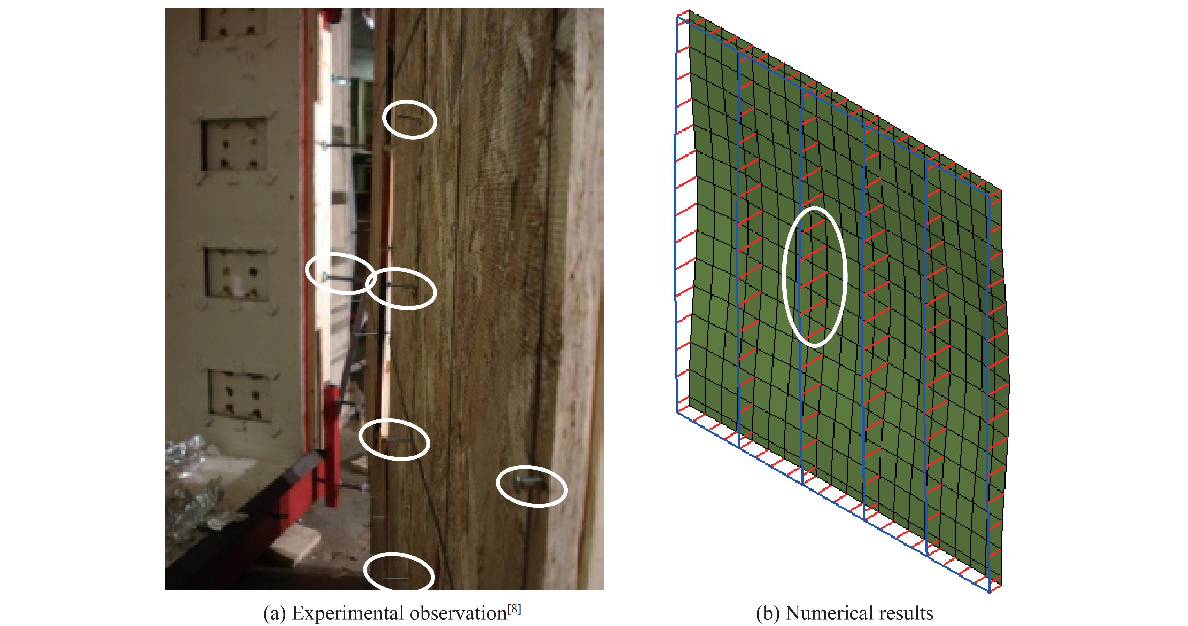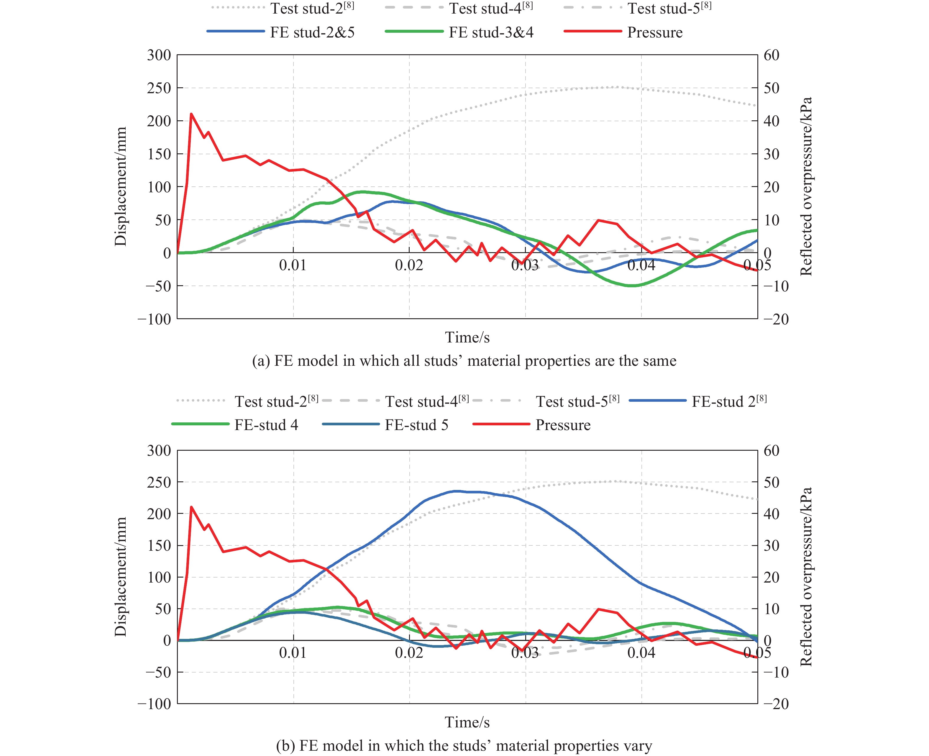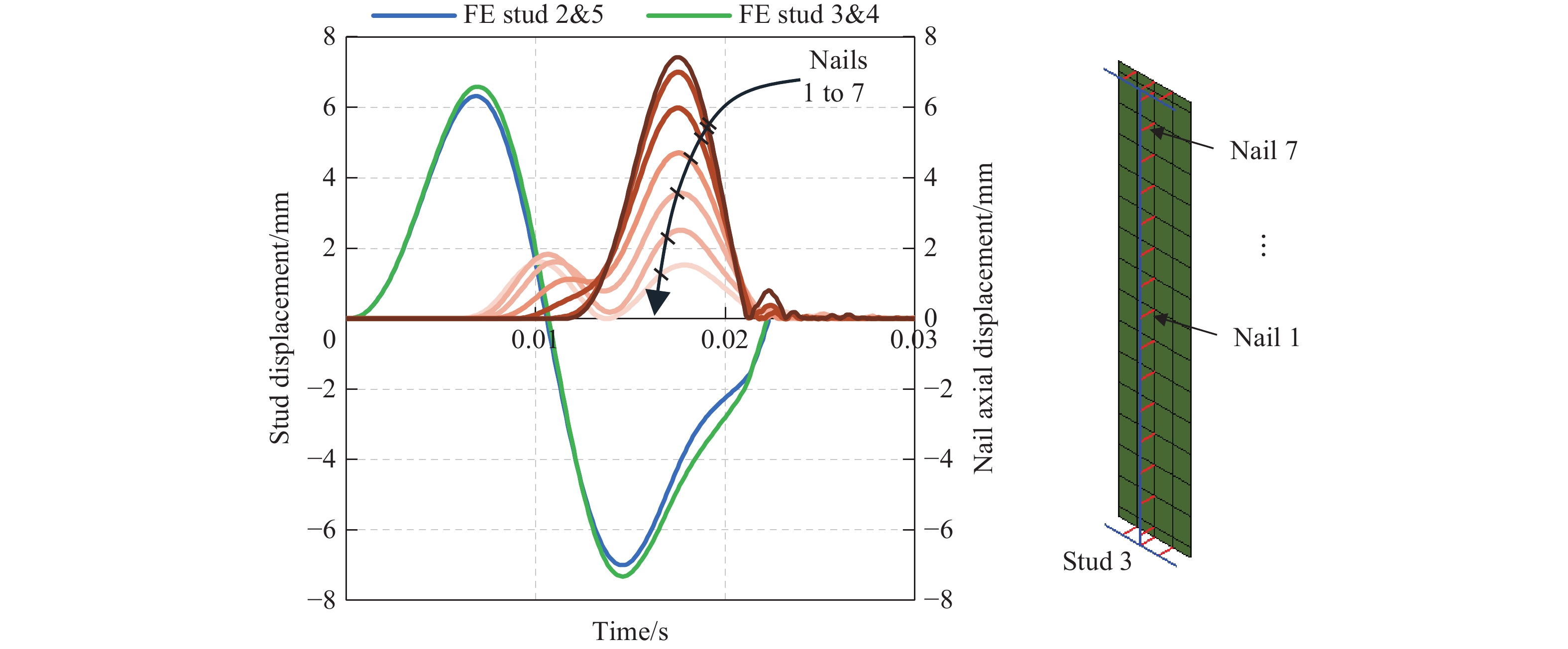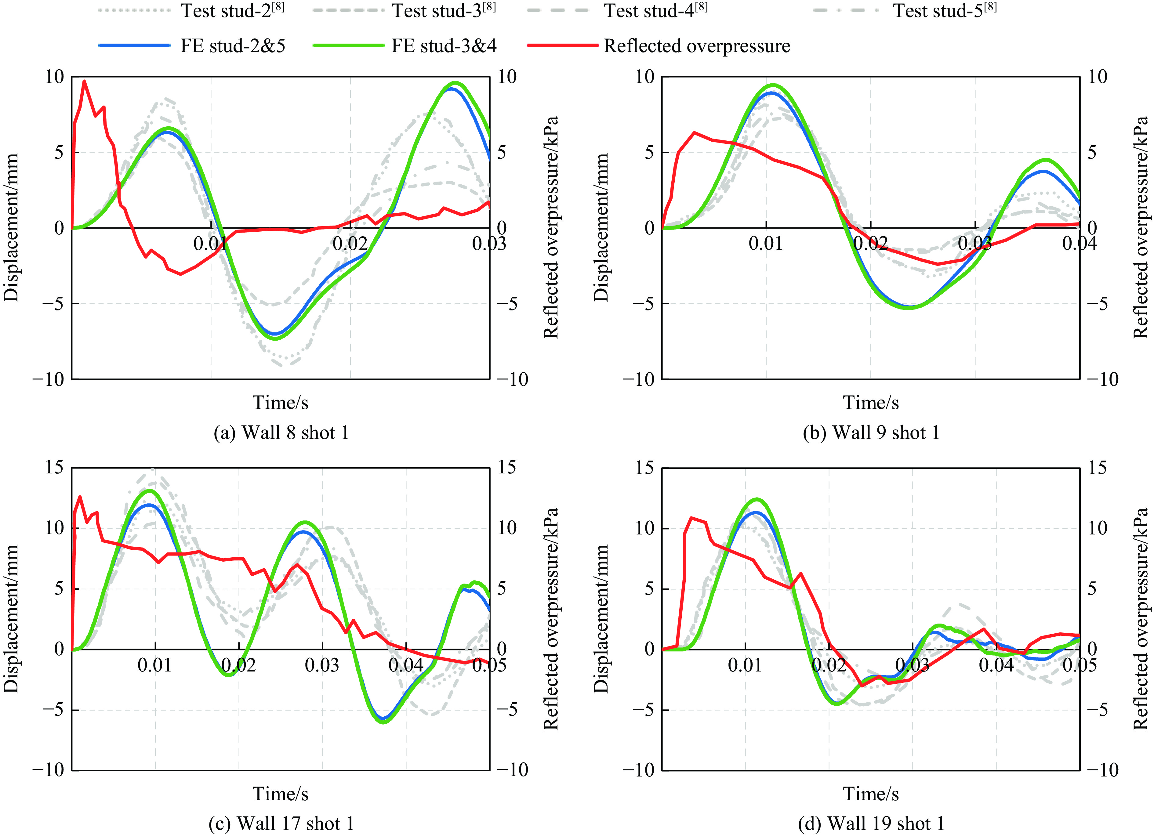 Compared to concrete and steel structures, research on the blast resistance of timber structures is relatively scarce. Although experimental studies on the blast performance of light-frame wood walls have been conducted, relevant numerical studies remain limited. This study addresses the numerical modeling of light-frame wood walls under blast loads, with a focus on the determination of the dynamic increase factor (DIF) for nail connections and the failure criteria for wood studs. Based on the partial composite action theory, an analytical expression was derived to describe the relationship between the DIF for nail connections and other mechanical properties of light-frame wood walls, including the stiffness of studs, the stiffness of sheathing panels, and the stiffness of nail connections. A reasonable value for the DIF of nail connections was provided by introducing experimentally measured DIFs for wood studs and wood-frame walls. On this basis, a finite element (FE) model for blast resistance analysis of light-frame wood walls was developed. In this model, the wood studs, sheathing panels, and nail connections were represented using beam elements, shell elements, and discrete beam elements, respectively. The orthotropic characteristics of wood-based structural panels, the nonlinear dynamic behavior of nail connections, and the dynamic elastic-plastic features of wood studs were also appropriately modeled. Verification of the developed model against experimental data indicates that it can accurately predict the dynamic response of light-frame wood walls under blast loads, as well as the time and corresponding peak displacement when wood studs fracture. FE analyses also show that if the variation of the studs’ material properties is reasonably accounted for, the predictions of the dynamic response and failure mode after the fracture of studs are in good agreement with the experimental results. The developed model paves the way for assessing the blast vulnerability of light-frame wood structures in future research.