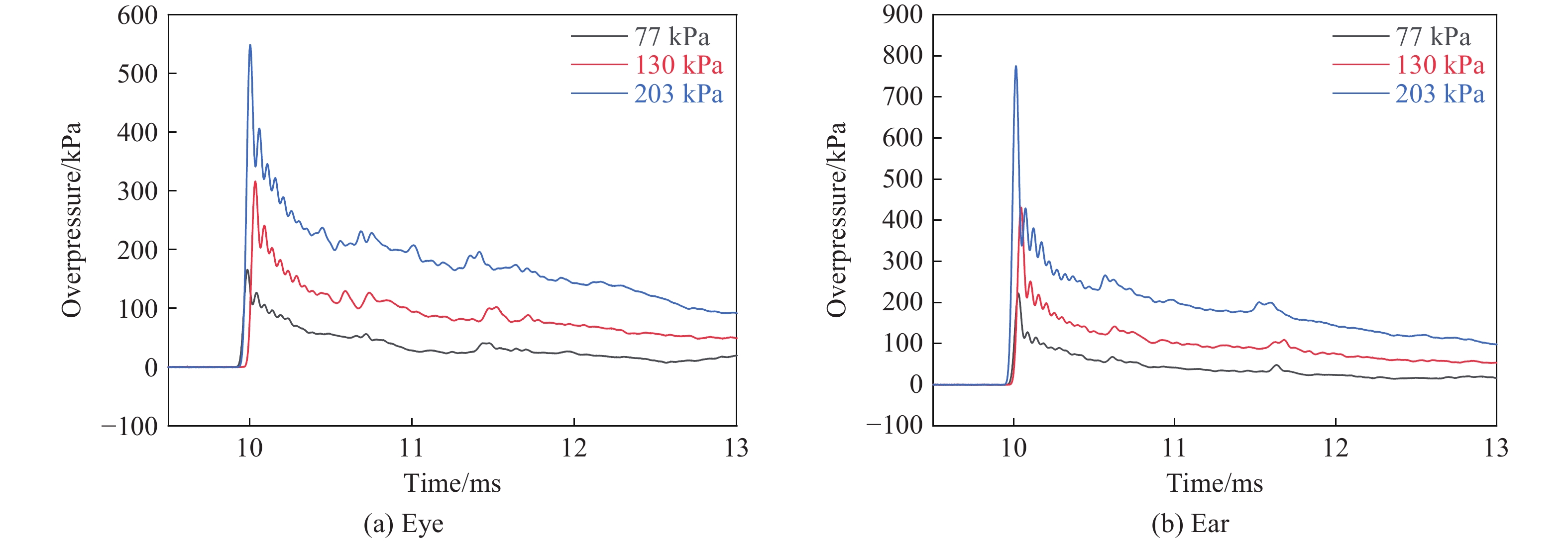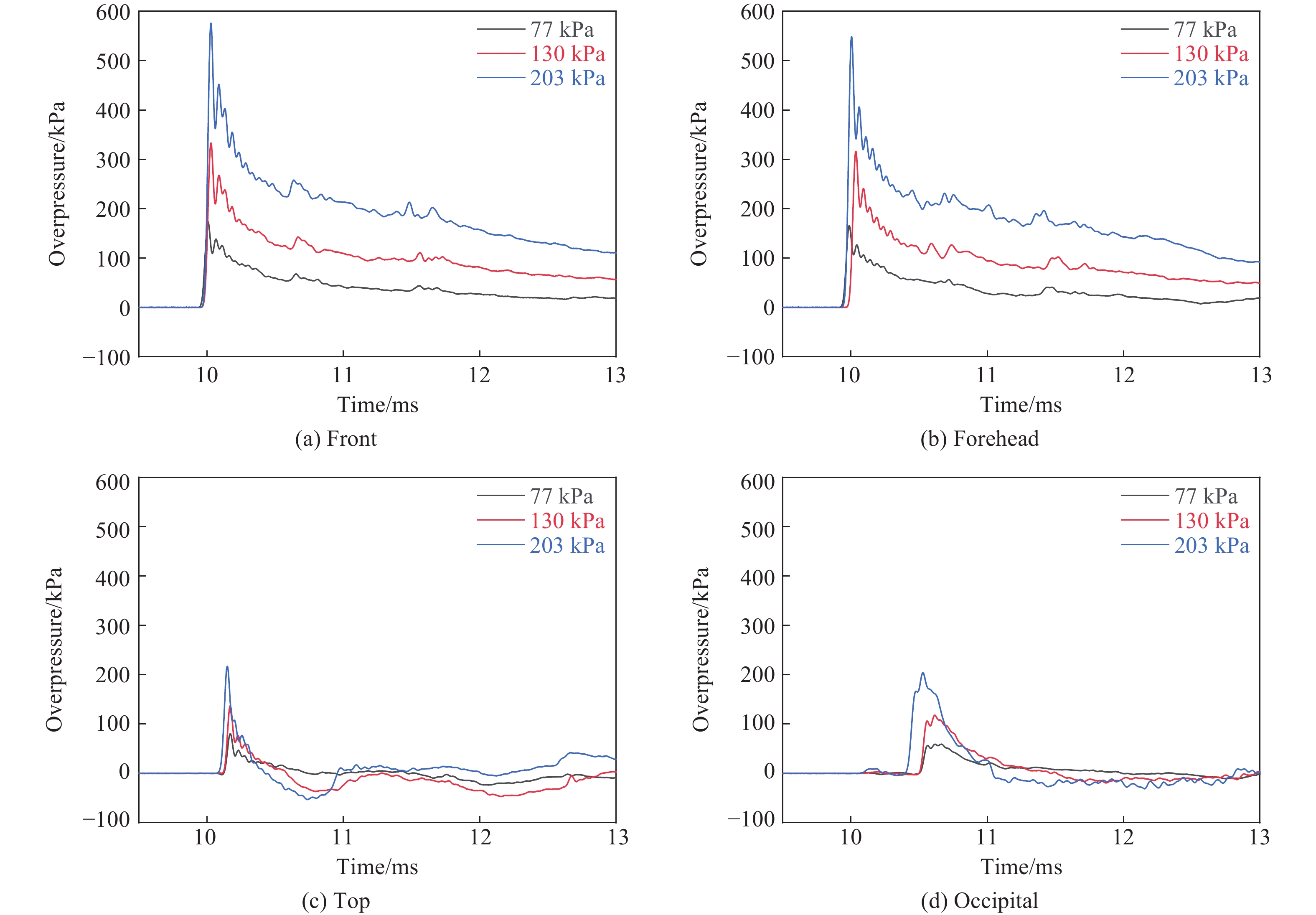 Due to the rapid development of military technology, there are more deployments of new arms, high-tech weapons and large-caliber shells in regional and local warfare, contributing to a sharp surge in the incidences of craniocerebral trauma among military personnel due to blast shockwaves. Thus, blast-induced traumatic brain injury at present is considered as one of the most prominent forms of injury on the battlefield. In order to assess the craniocerebral injury of personnel under the effect of the blast shock wave, it is urgent to establish a set of scientific, rational and comprehensive evaluation methods. Using a realistic physical manikin model with Chinese human body size characteristics and a sensing system to carry out three kinds of shock wave intensity shock tube experiments, this study systematically obtained the change process of head surface overpressure, head centroid acceleration and angular velocity as well as neck force and torque of the realistic physical manikin model with time. Based on the short-term and long-term injury effects of the explosion on the human cranium and brain, based on the 3 ms criterion, head injury criterion (HIC), brain injury criteria (BrIC) and neck injury indicators to determine the damage and the degree of damage to the human body to carry out a comprehensive research and judgment. The results showed that under three different strong shockwave environments, the shock wave overpressure duration was less than 5 ms, acceleration and neck force lasted 5–6 ms, and angular velocity and neck torque lasted 50–244 ms; the peak centroid resultant acceleration in the head of the realistic physical manikin model was (54.60±3.69)g, (102.00±1.72)g and (161.50±6.36)g, and the calculated HIC15 showed that the head injury threshold was not reached; according to the combined determination of head surface pressure load and BrIC, the probability of craniocerebral injury increased significantly, and protective measures should be taken to reduce the risk of injury.
