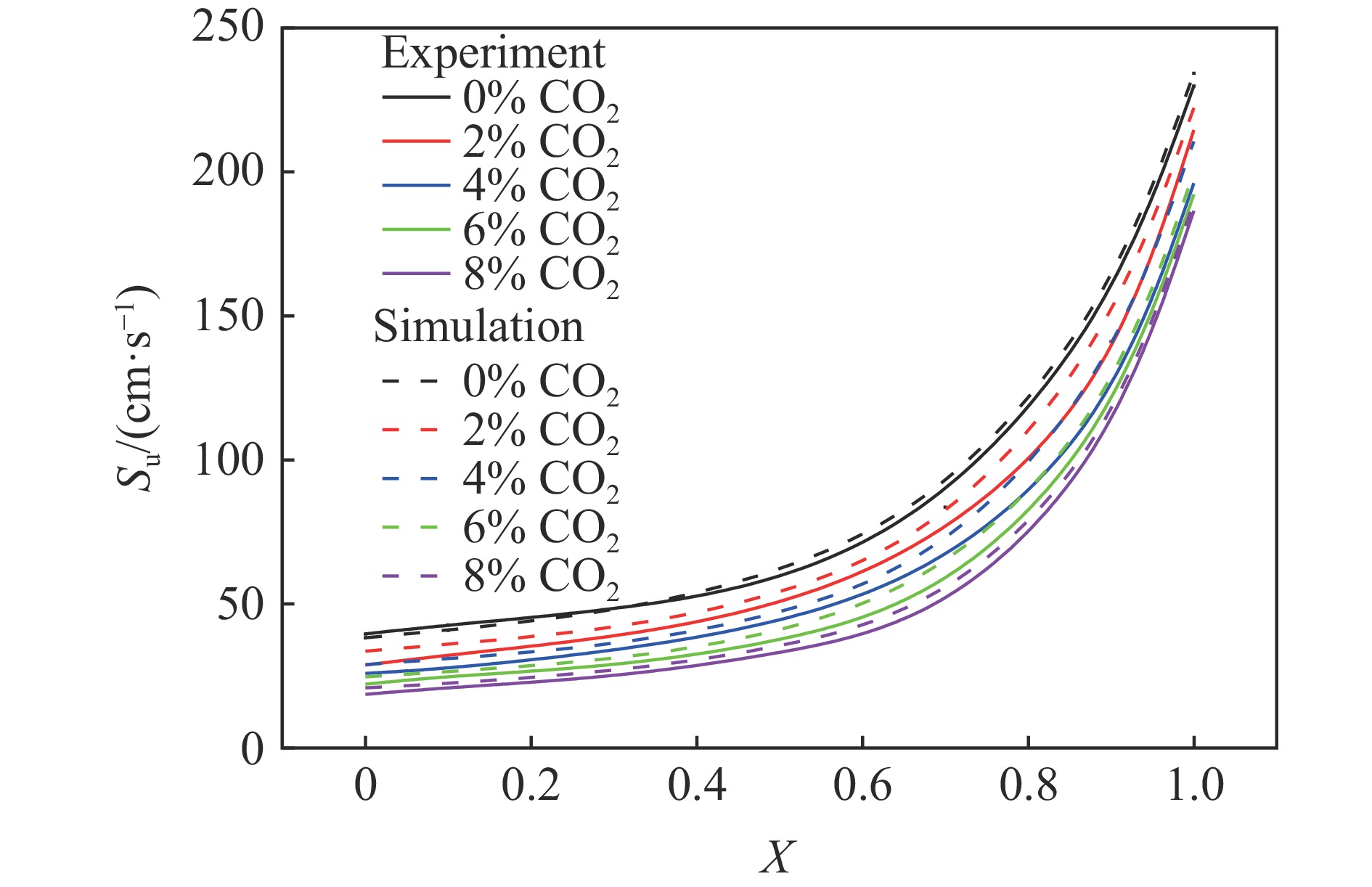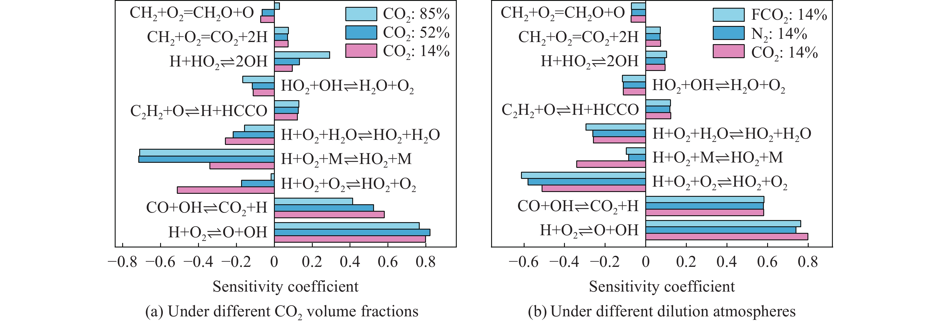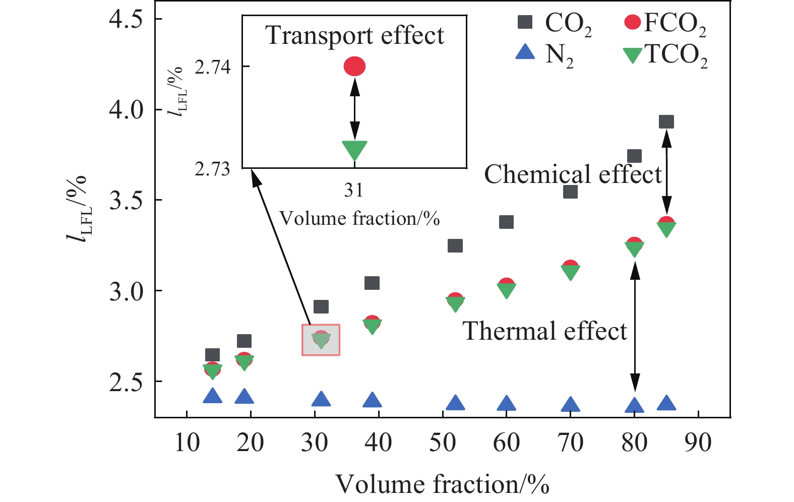 Oxy-fuel combustion is one of the effective means to reduce greenhouse gases. To grasp the combustion characteristics of the clean fuel acetylene in O2/CO2 atmosphere and to investigate the effect of different CO2 volume fraction on the lower flammable limit of acetylene, the lower flammable limit of acetylene was experimentally measured in a 5 L cylindrical explosive reaction device. With the increase of CO2 volume fraction from 14% to 85%, the experimental value of the lower flammable limit of acetylene increased from 2.64% to 3.93%, which was linearly increased in a small range. Compared with hydrocarbon fuels such as ethylene, ethane, and propylene, the lower flammability limit of alkanes, olefins, alkynes decrease sequentially, indicating that alkynes have a larger combustion range and a higher hazard factor. Based on the calculation model of limiting laminar burning velocity method, a prediction model applicable to the lower flammability limit of acetylene was established. Through the verification of experimental data, the average absolute error of this prediction model using the USC Ⅱ combustion reaction mechanism is at 0.52%, and the model is accurate and reliable. To explain the reason for the existence of the lower flammability limit from the perspective of the competition between the temperature rise of the heat generation from fuel consumption and the temperature drop of the heat dissipation from the expansion of the fuel body, this study examines the thermodynamic, chemical, and transport effects of CO2 on the lower flammability limit. The combustion reaction mechanism of USC Ⅱ is modified to incorporate the virtual substances FCO2, TCO2, and MCO2, and comparing the flammability limits of the three virtual substances as well as those of the five atmospheres of N2 and CO2. The thermodynamic, chemical and transport effects of CO2 on the lower flammability limit were discussed. The results show that the average proportion of thermodynamic effect is 64%, chemical effect is 35% and transportation effect is 1%.