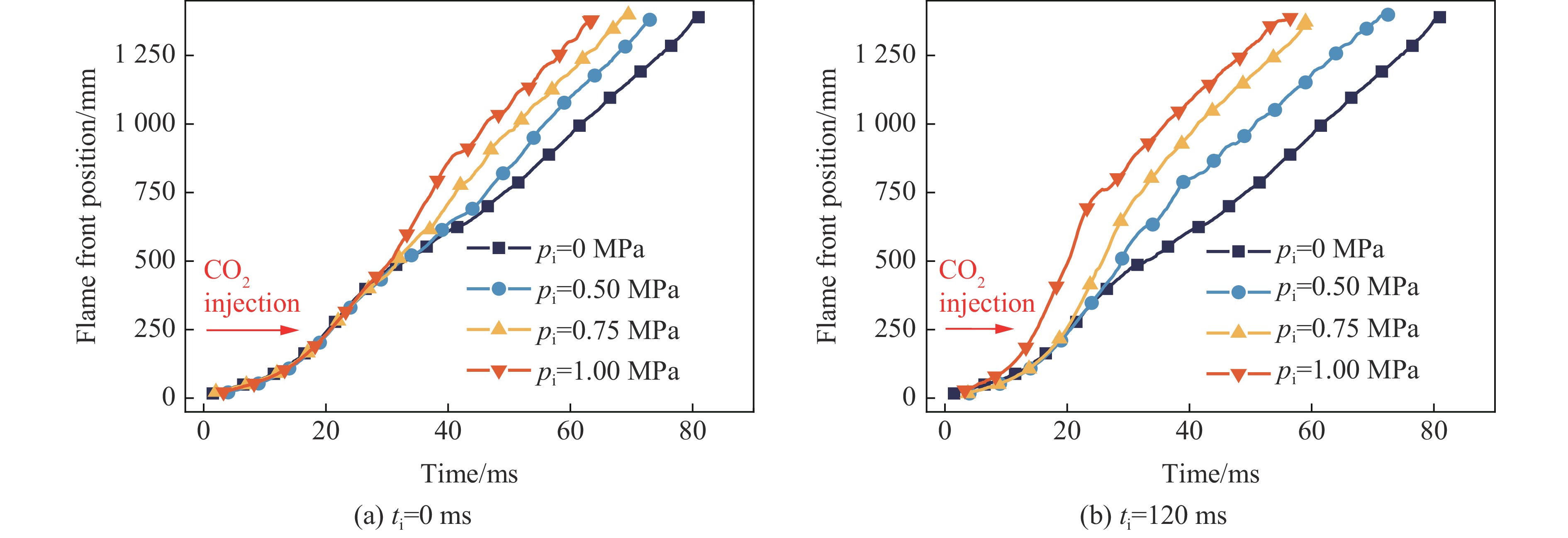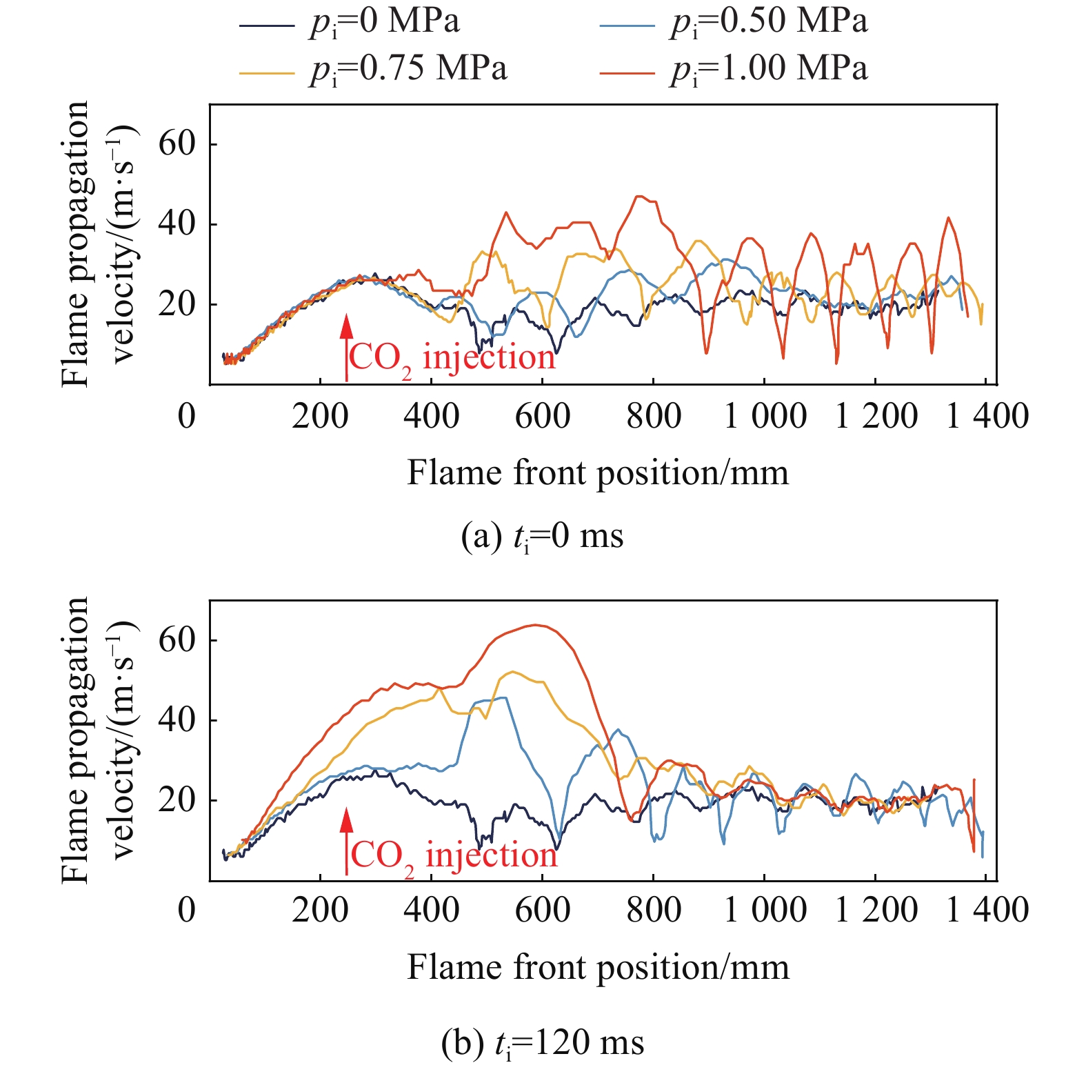 Coal-to-hydrogen is an effective solution for the low-carbon transformation of coal energy. However, transporting hydrogen via the natural gas pipeline network poses significant explosion safety challenges. To address these concerns, the effect of non-premixed CO2 injection on the explosion characteristics of hydrogen-doped natural gas was investigated. An experimental explosion platform was independently designed and constructed to actively release CO2 into the hydrogen-doped methane explosion via a high-pressure gas injection device. The CO2 injection was initiated prior to ignition, creating a non-premixed turbulent atmosphere. The volume of CO2 injection was controlled by injection pressure (0, 0.5, 0.75, and 1.00 MPa) and injection time (0, 60, 120, and 180 ms). The dynamics of explosion flame propagation and pressure behavior under non-premixed CO2 injection were analyzed. Results showed that injection pressure and injection time significantly influence the premixed explosion process. The injection of non-premixed CO2 into the premixed explosion induces turbulence, causing flame wrinkling. Structural changes in wrinkled flames increase the flame surface area, leading to accelerate flame propagation and enhance explosion intensity. For a given injected time (e.g., 0 or 120 ms), increasing the injection pressure introduces more CO2, which enhances localized turbulence and disturbance in the flame, leading to further flame acceleration and more severe explosion consequences. As the injection time increases, the maximum explosion pressure of different injection pressures increases and then decreases. CO2 injection in the explosion plays a competitive relationship between turbulence promotion and dilution effect, with a critical injection time. Excessive CO2 injection can enhance its dilution effect, weakening the CO2 injection on the explosion of turbulence perturbation ability, which reduces the explosion intensity. Moreover, a higher injection pressures correspond to shorter injection time. Meanwhile, the maximum explosion pressure at larger injection pressures is more sensitive to changes in injection time. Injection pressure and injection time are the key parameters governing the impact of CO2 injection on the explosion hazard of hydrogen-doped natural gas. The findings provide fundamental guidelines for the safety prevention and control strategy of hydrogen transportation in the natural gas pipeline network.