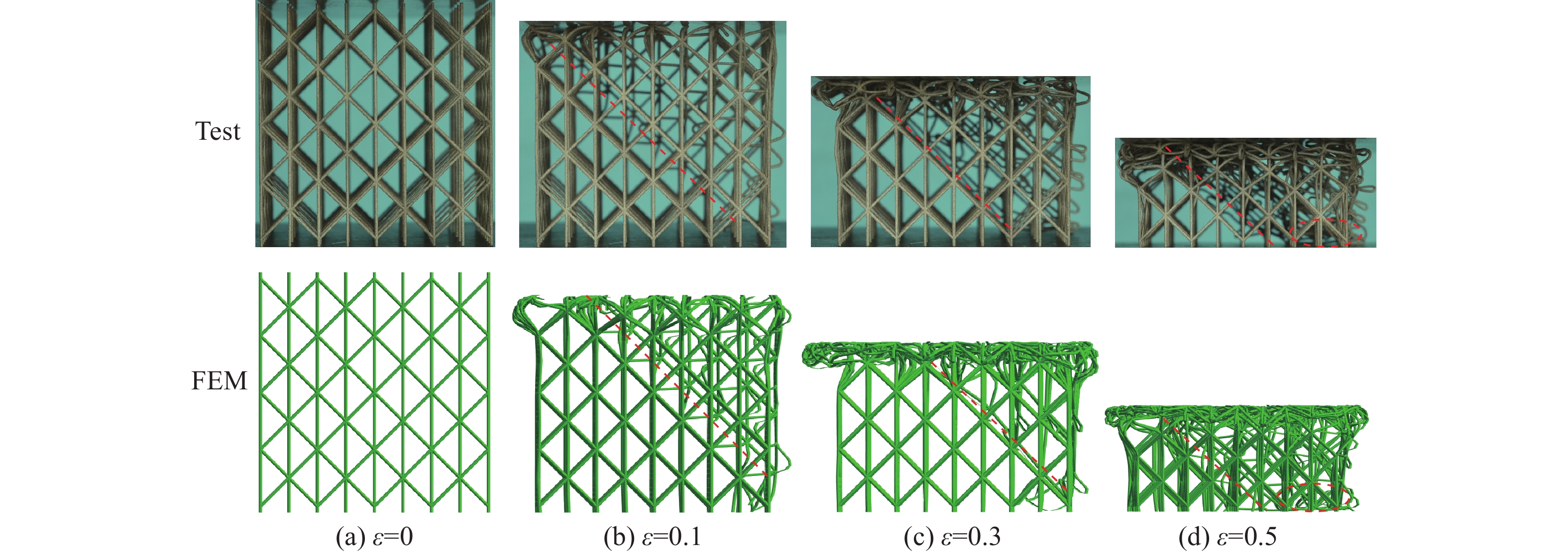 Lattice mechanical metamaterials have been widely used in various fields due to the lightweight, flexible designability and excellent impact resistance. In this paper, an enhanced X-shaped lattice mechanical metamaterial was designed and fabricated by selective laser melting. The dynamic crushing behavior and energy absorption mechanism of this metamaterials subjected to low-velocity impact were explored experimentally and numerically. The influence of impact velocity on the deformation mode and energy absorption capability of the enhanced X-shaped lattice mechanical metamaterials was analyzed. It is shown that the impact velocity has significant effects on the deformation modes of the mechanical metamaterials. At the lower impact velocities, the deformation mode of lattice mechanical metamaterials resembles that observed under quasi-static compression, characterized by the layer-by-layer crushing mode of the cells around the shear band. At the higher impact velocities, the deformation mode of lattice mechanical metamaterials transitions from X-shaped shear band to V-shaped shear band, and finally evolves into an arc-shaped shear band. The further study suggests that enhanced X-shaped lattice mechanical metamaterial exhibits a certain degree of velocity sensitivity. With the increase of the impact velocity, the initial peak stress, plateau stress, and specific energy absorption all increase correspondingly.