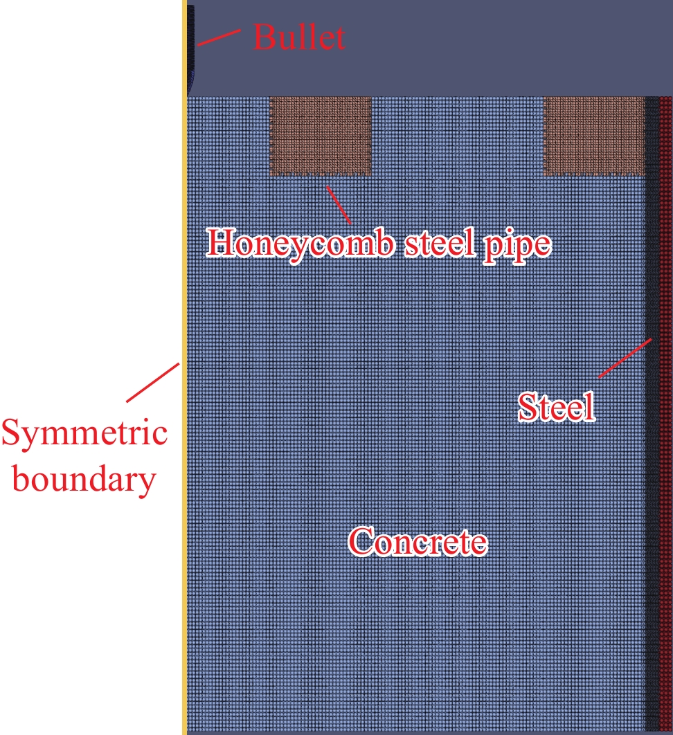 To investigate the penetration resistance of metal honeycomb tube-confined concrete structures under hypervelocity impact, penetration experiments were conducted using a two-stage light gas gun with projectile velocities near