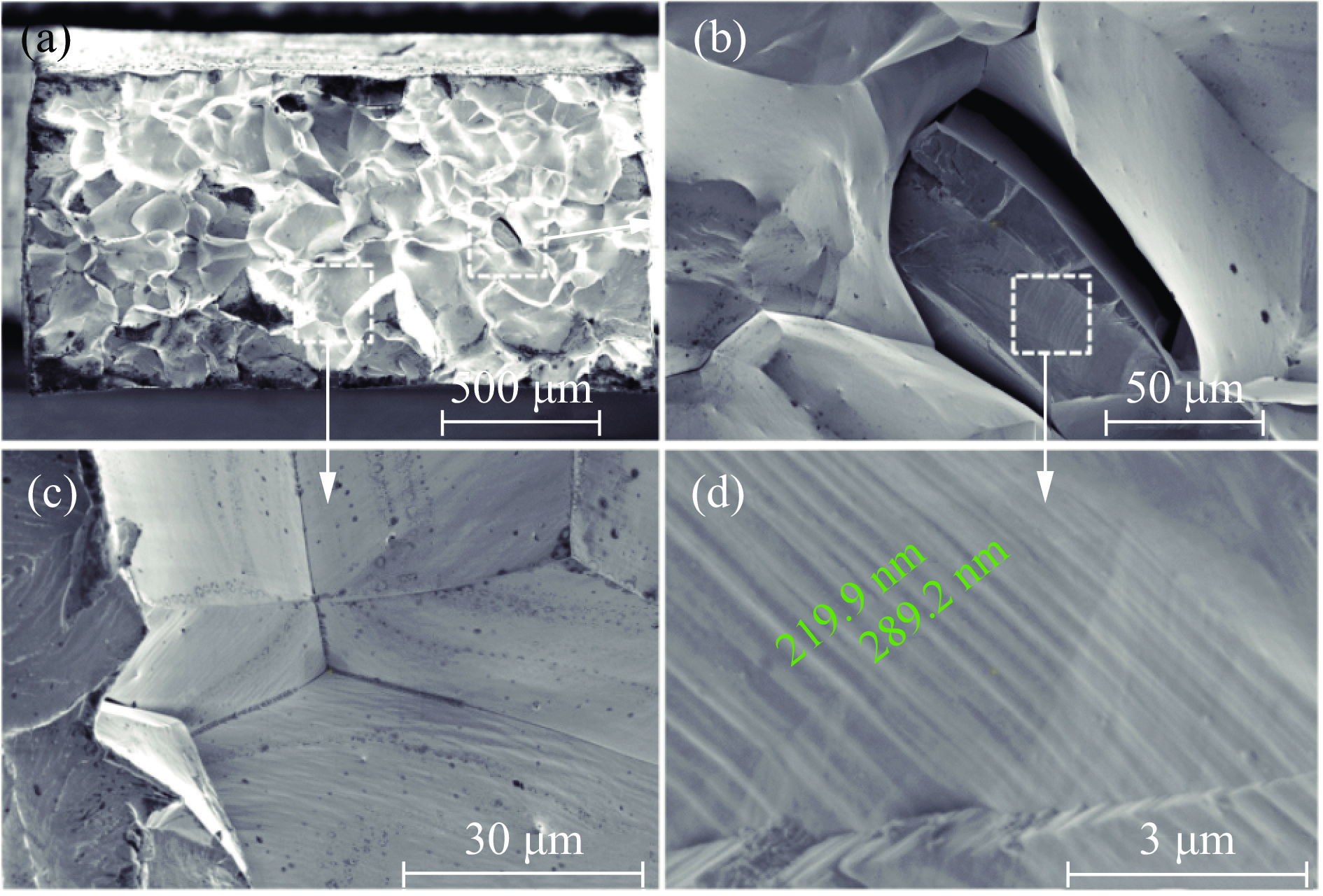 Iridium alloys have been extensively utilized as structural materials in specific high-temperature applications, attributed to their superior strength and ductility at elevated temperatures. To enhance the understanding of high-speed impacts at elevated temperatures, it is imperative to characterize the mechanical properties of iridium alloys, including their failure response under high strain rates and elevated temperatures. In this study, the conventional split Hopkinson tension bar technique was modified to evaluate the tensile behavior of an iridium alloy at high strain rates and elevated temperatures. A dynamic high-temperature tensile testing technique for thin and flat specimens was established based on the high current heating method. A fixture with a slot was employed, enabling the specimen shoulder to bear the load and transmit it to the gauge section of the specimen. An integrated high current heater equipped with a self-controlled system was utilized to heat the iridium alloy specimen and maintain the desired high-temperature conditions. To prevent unintended heating of the bars, a pair of hollow water-cooled pillow blocks were installed. Moreover, to mitigate rapid cooling of the specimen, the cold contact time was meticulously controlled to be less than 1 ms. To elucidate the dynamic high-temperature properties of the iridium alloy, tensile tests were conducted using this technique at a strain rate of 103 s−1 and at temperatures of room temperature, 600, 900, and1100 ℃. Experimental results revealed that as the temperature increased from room temperature to 900 ℃, the tensile strength of the iridium alloy decreased by 12%, while its ductility doubled. However, when the temperature was further elevated to 1100 ℃, the tensile strength decreased by 43%, and the ductility increased by a factor of 7.3. Macroscopic and microscopic analyses of the fracture morphologies were conducted to reveal the deformation mechanisms of the iridium alloy. It was found that with increasing temperature, the failure mode of the iridium alloy transitioned from predominantly intergranular fracture to plastic deformation and granular fracture. The dynamic fracture behavior of iridium alloy at high temperatures is governed by the competition between grain-boundary failure and granular softening.