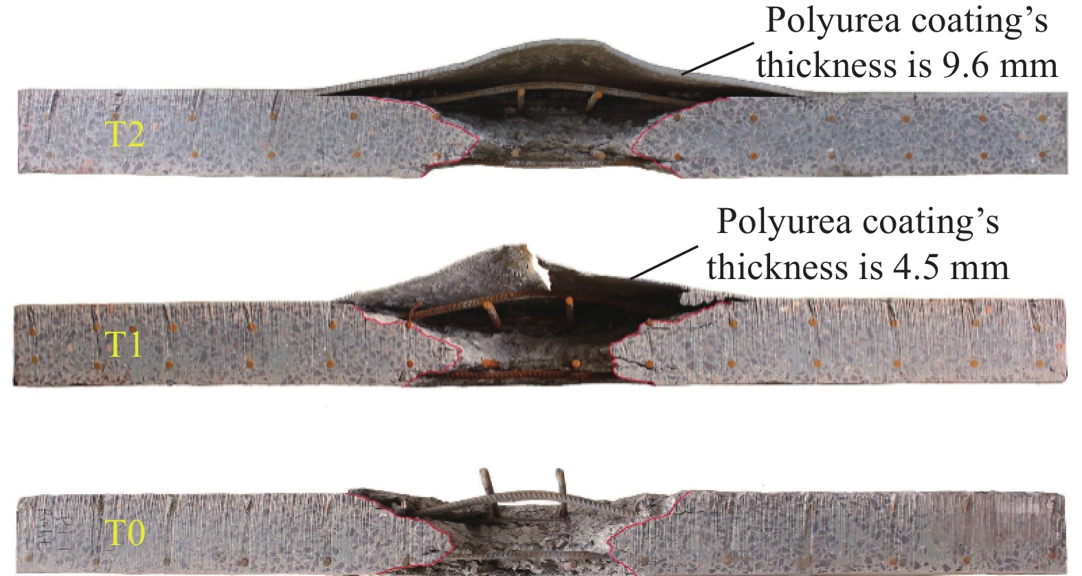 In recent years, polyurea-coated reinforced concrete (RC) slabs have been extensively studied both experimentally and numerically for structural strengthening against contact explosions. However, theoretical investigations remain limited, particularly concerning the impact of polyurea on the local damages of the RC substrates. In this paper, an analytical model based on stress wave propagation theory was proposed to investigate the reflection of compression waves at the backside of the RC substrate slab and predict the spalling depth. Utilizing this analytical model, a quantitative and detailed discussion was presented regarding the effect of the polyurea on the critical spalling and breach of the RC substrate slab. Furthermore, the applicability of the empirical breach prediction, originally developed for uncoated RC slabs, was validated through existing experiments to predict the breach of polyurea-coated RC substrate slabs. The results indicate that polyurea affects the spalling process of the RC substrate slabs. Specifically, the net stress wave adjacent to the concrete-polyurea interface is a compression wave, while it transitions to a tensile wave in the deeper concrete. Polyurea primarily impacts the first spall of the RC substrate slab; subsequent spalling processes after the first spall align with those observed in uncoated RC slabs. Upon the occurrence of critical spalling, polyurea enhances the critical spalling resistance of RC slabs, although it significantly increases the spalling depth. Conversely, when a breach occurs, polyurea reduces the number of spalls but minimally affects on the total spalling depth. Based on these findings, the empirical method for predicting breaches of uncoated RC slabs can effectively be applied to predict the breach of RC substrate slabs coated with polyurea. The test results from more than twenty contact explosion experiments are consistent with the predicted outcomes, thereby validating the effectiveness of the analytical model and providing a method for estimating the breach of polyurea-coated RC substrate slabs.