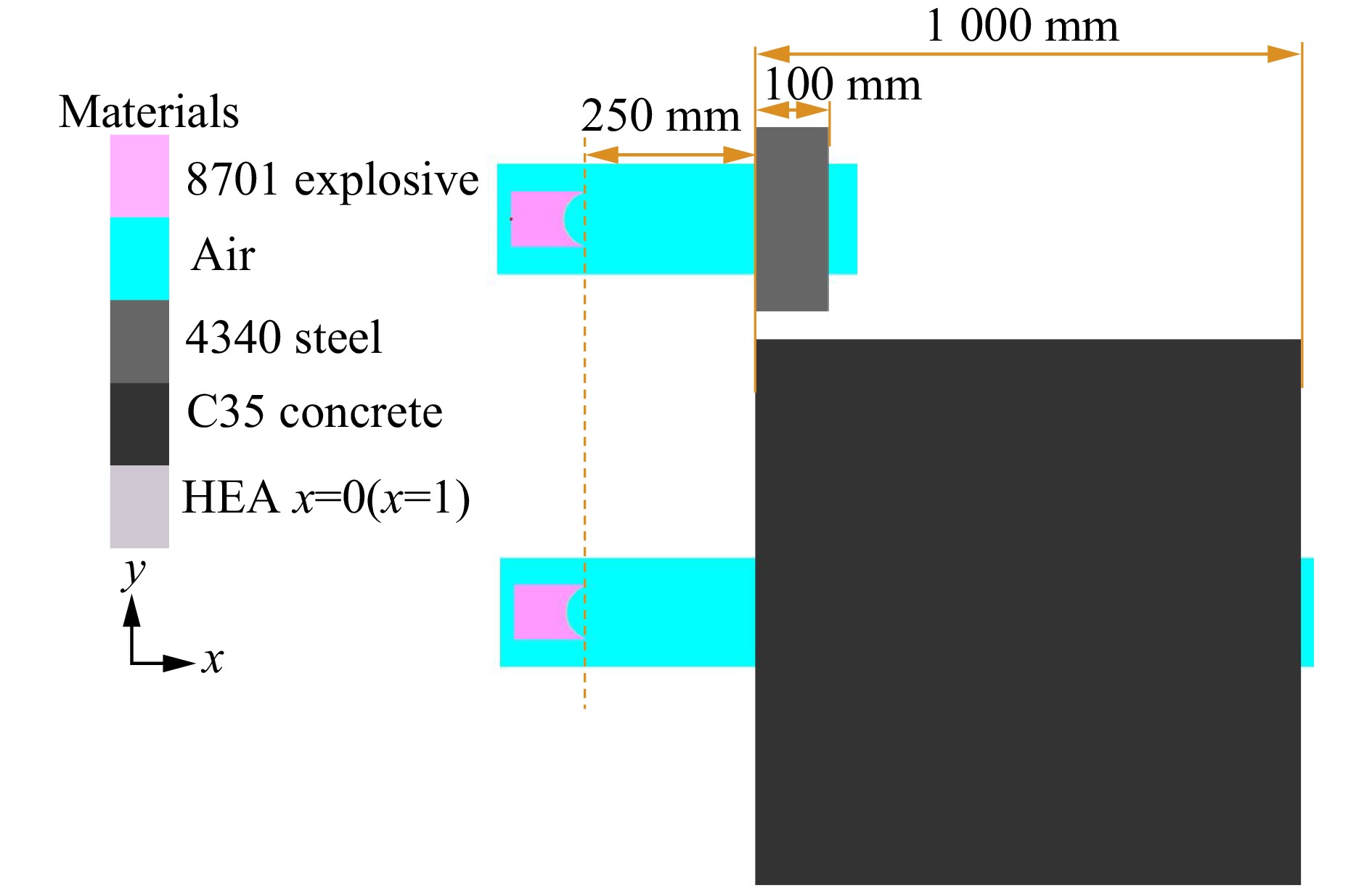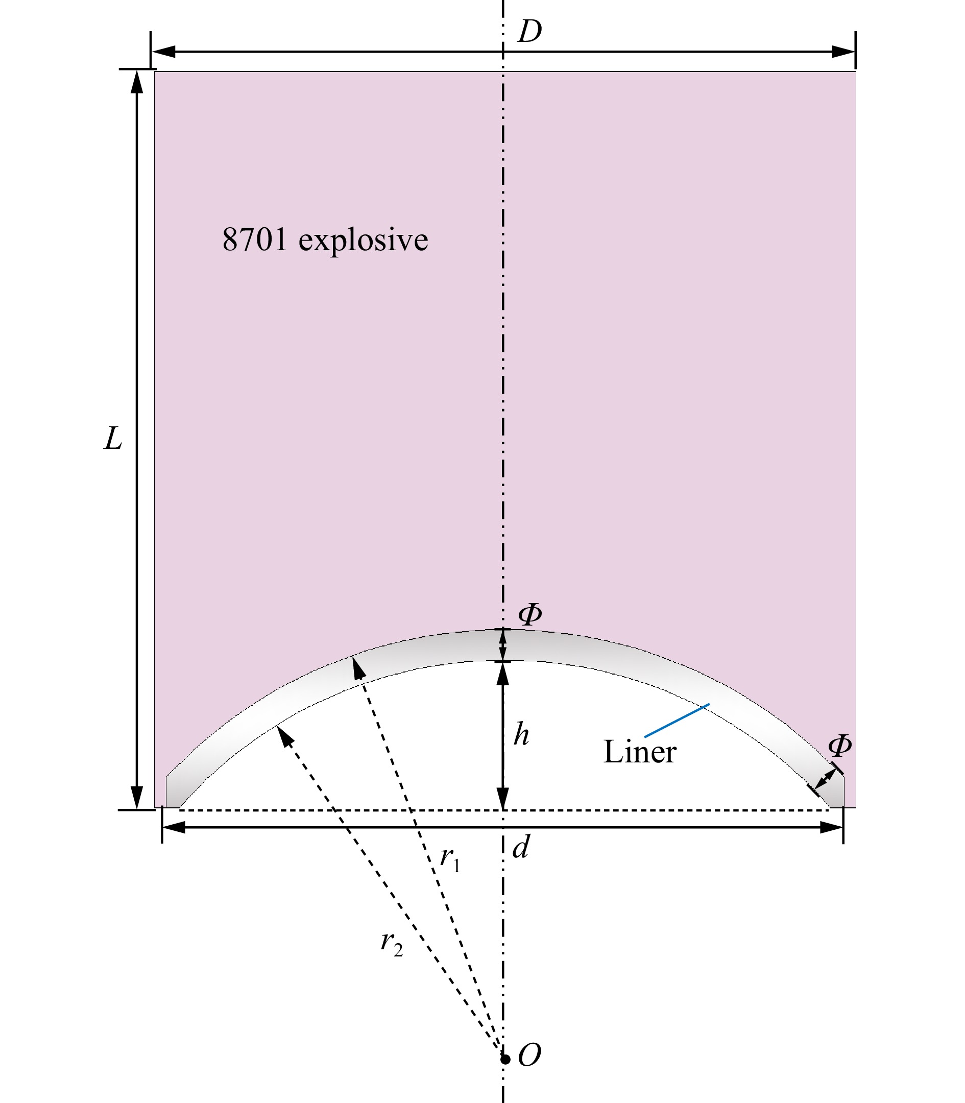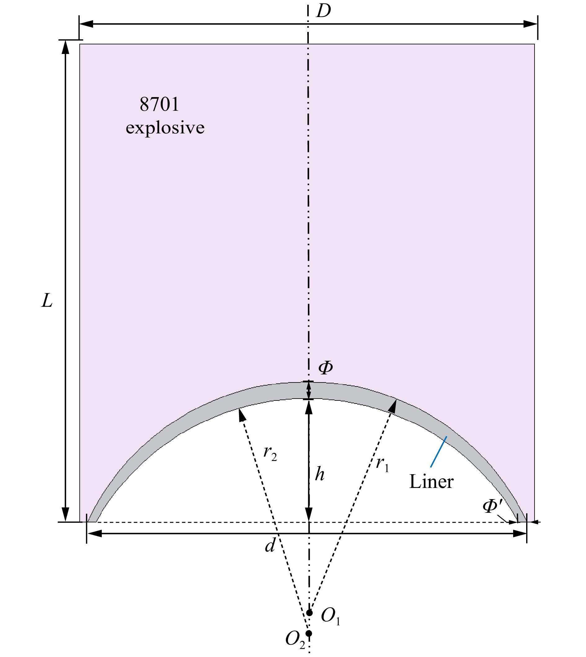 Aiming at the limitations of traditional metal jets in penetrating concrete targets, such as limited damage range and insufficient dynamic response, a novel double-layer energetic composite liner structure with a truncated inner layer made of high-entropy alloys/aluminum/polytetrafluoroethylene (HEA/Al/PTFE) was proposed for the first time. The hemispherical composite liner’s HEA layer was prepared using vacuum arc melting, while the Al/PTFE inner layer was formed through powder compaction and sintering. To thoroughly verify the performance advantages of the composite liner, two types of shaped charge structures were fabricated during the experimental phase for comparison: one with the composite liner and the other with a single-layer HEA liner. C35 plain concrete cylinders were used as targets, with single-point initiation at the center of the charge top. Additionally, numerical simulations of the jet formation process were conducted using the commercial finite element software ANSYS-LS-DYNA. The explosive and liner were modeled with the Smoothed Particle Hydrodynamics (SPH) algorithm to accurately capture the dispersal behavior during jet formation, while the casing was simulated with the Lagrangian algorithm to describe the expansion and fragmentation process of the outer shell. In the simulation, the high-temperature and high-strain-rate mechanical behaviors of HEA, Al/PTFE, and 45 steel were described using the Johnson-Cook constitutive model. The explosive was modeled with the classical JWL equation of state, and air was treated as an ideal gas. All relevant parameters were sourced from published literature. Based on the axisymmetric curvature characteristics of the hemispherical liner and the material discontinuity introduced by truncation, a partitioned formation theoretical model was further established. An energy loss coefficient η (η=0.2) was introduced to modify the detonation energy transfer process. According to the truncation angle, the composite liner was divided into two regions with different physical mechanisms. The jet radius and slug radius for each region were derived using mass and momentum conservation. Experimental results show that both the composite liner and the single-layer HEA liner can form stable penetrating jets, achieving complete penetration of the concrete targets. Compared to the single-layer HEA liner, the composite structure significantly enhances the fragmentation and crack propagation capabilities inside the concrete. Numerical simulation results indicate that the Al/PTFE inner layer exhibits a “coating and cohesive” effect on the HEA jet, effectively suppressing radial dispersion and improving the continuity of the mid-section of the jet. However, multiple collision-following-separation behaviors between the inner layer and the main jet delay the system from reaching dynamic equilibrium. The established partitioned formation theoretical model demonstrates good predictive accuracy, with relative errors of less than 15% between the predicted jet and slug radii and the numerical simulation results. Further parametric analysis reveals that the thickness and height of the inner layer significantly influence jet formation. The optimal parameter combination is a thickness of 3.5 mm and a height of 12 mm, which achieves the best balance between suppressing radial dispersion, maintaining jet length, and enhancing mid-section cohesion. This composite liner effectively integrates the excellent mechanical properties of HEA with the high energy release characteristics of Al/PTFE. The established partitioned formation theoretical model provides a reliable theoretical basis for the design of hemispherical composite liners. The research findings offer important theoretical and experimental support for the optimized design and engineering application of novel energetic composite liners.