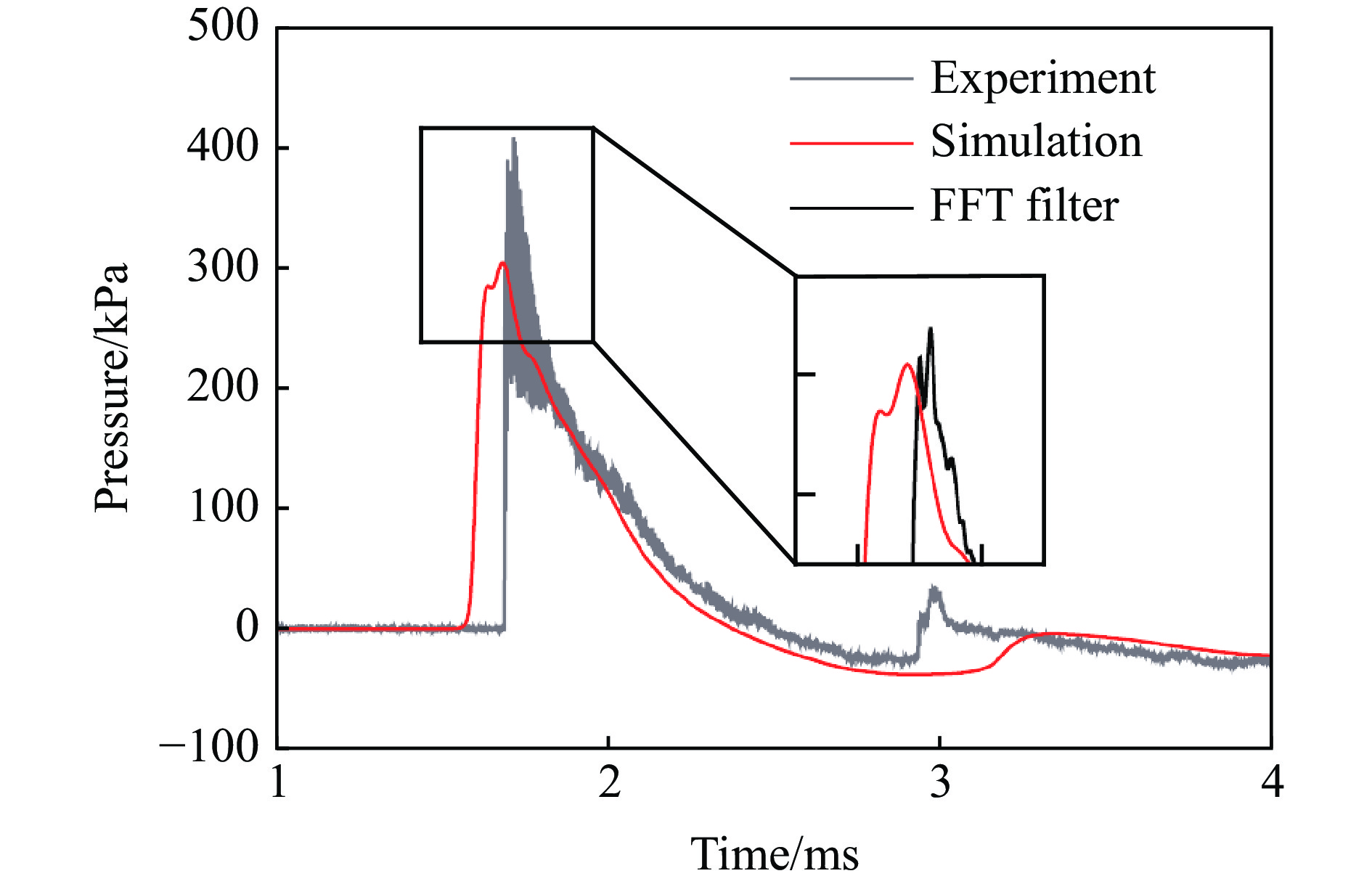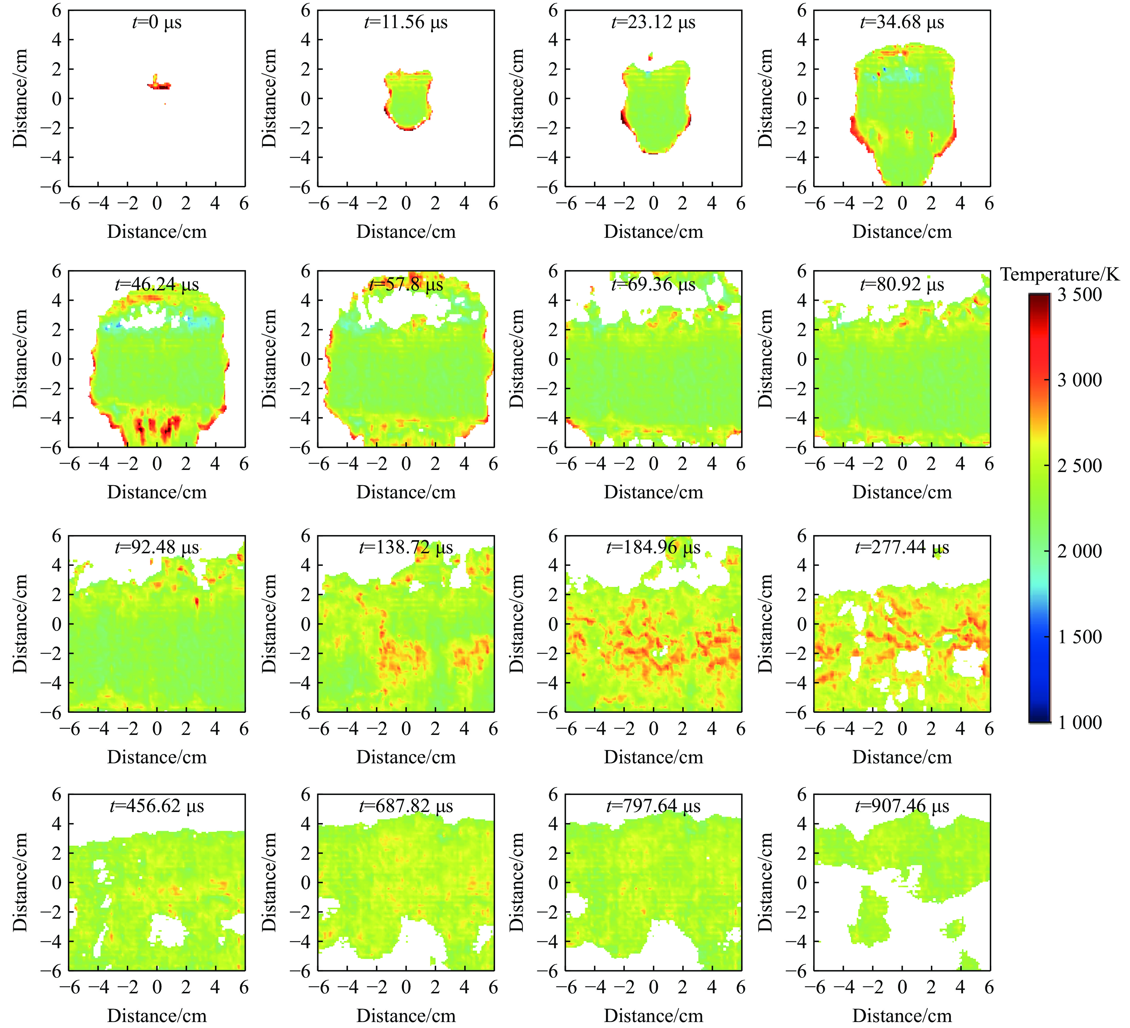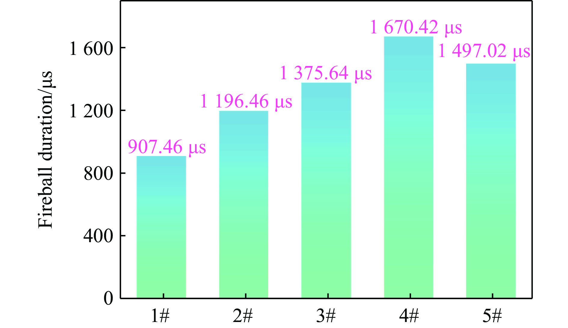 To improve the mechanical behaviors and explosion performance of the Al/PTFE reactive materials, short-cut titanium fibers were added to Al/PTFE annular reactive materials, and subsequently assembled with RDX explosive column to form a composite charge. The effects of different titanium fiber contents on the mechanical behaviors of the annular reactive materials were investigated using a universal material testing machine and a split Hopkinson pressure bar. The influence of short-cut titanium fiber contents on the quasi-static pressure, shock wave parameters and thermal damage effects of the composite charge was studied in depth by the free-field explosion test system and spherical explosion container test system combined with the colorimetric temperature measurement technology. The temperature field of explosion flame was reconstructed by the colorimetric temperature measurement method with a high-speed camera, which was based on the gray-body radiation theory. A tungsten lamp calibrated the measurement accuracy of the temperature mapping system, and the fitting relationship between the temperatures and the gray values of the high-speed images was derived to obtain the conversion coefficient. The test results of mechanical properties showed that with the increase of titanium fiber content, the elastic modulus, yield strength and compressive strength of Al/PTFE annular reactive materials under quasi-static compression, as well as the yield strength and compressive strength under high-speed impact, all exhibited an initial increase, which were followed by a decrease, reaching the maximum values at 3% content. The experimental results of explosion performance showed that short-cut titanium fibers could significantly enhance the explosion performance of Al/PTFE-RDX composite charges. When the content of short-cut titanium fibers was 3%, the peak overpressure of the explosion shock wave, its positive phase duration and positive impulse were 37.68 kPa, 695.34 µs and 12.34 Pa·s, respectively. With 5% content of short-cut titanium fibers, the afterburning effect was the most significant. The maximum values of the explosion quasi-static pressure, average fireball temperature and fireball duration reached 70.50 kPa,