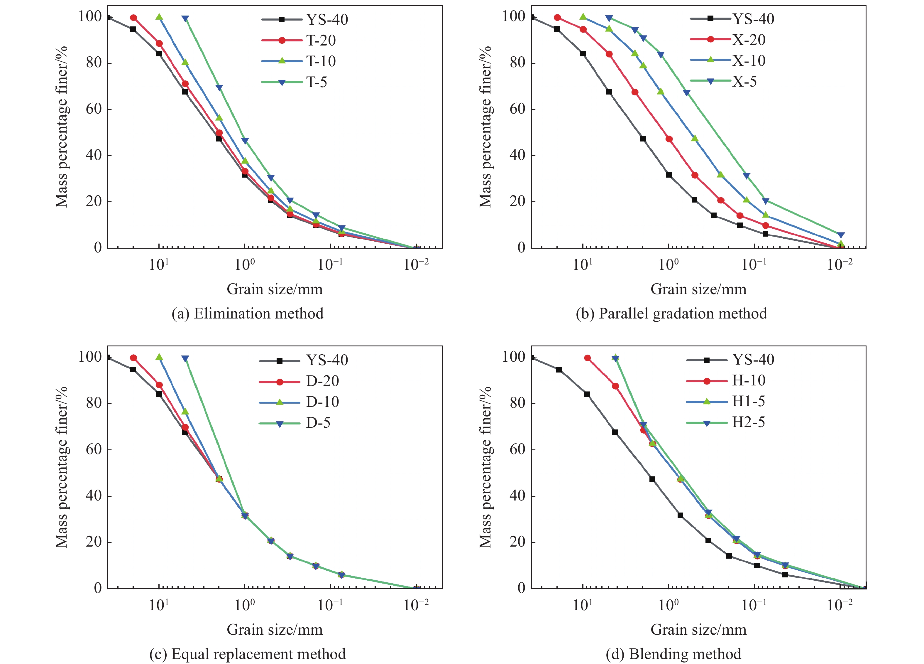 Hypergravity centrifuge model testing serves as an effective method for simulating prototype explosion effects, whose successful application relies on soil simulants capable of replicating the dynamic response of in-situ soil. To address the challenges of particle size effects and material similarity in centrifuge modeling of explosions in sandy gravel, this study aims to establish a systematic methodology for the preparation and validation of such simulants. Through theoretical analysis, the soil key parameters governing ground shock effects under explosions were identified as density and wave velocity (wave impedance), which are fundamentally controlled by the soil’s gradation characteristics. Based on this premise, twelve types of simulants with varying maximum particle sizes were systematically prepared using four scaling methods: the removal method, equal quantity replacement method, similar gradation method, and hybrid method. Through void ratio tests and bender element testing under effective confining pressure, quantitative relationships were revealed between the extreme void ratios of sandy gravel and its fines content and mean particle size. Based on this, an empirical predictive model for the small strain elastic modulus was established. Comparison of the model-predicted wave velocities with in-situ measured data indicates that the coefficient of uniformity, fines content, and mean particle size are the key controlling indices for achieving dynamic similarity in sandy gravel under explosion loading. Among these, the simulant prepared by the equal quantity replacement method, with a maximum particle size of 10 mm, demonstrated the closest equivalence to the in-situ soil in terms of the aforementioned indices. Hypergravity centrifuge explosion tests using this equivalent simulant further verified that the attenuation law of normalized peak accelerations within the source plane corresponds highly consistently with the in-situ data. This research confirms that by controlling key gradation indices and employing the equal quantity replacement method, it is possible to successfully prepare simulants that are equivalent to in-situ sandy gravel in their dynamic response to explosions. This provides a practical and effective technical pathway for centrifuge model testing in related fields.