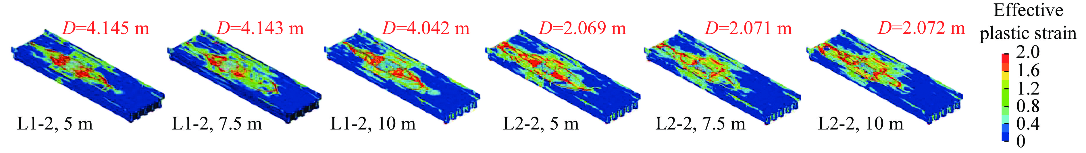 To address the fracture problem of dynamic submarine cables and their protective sheaths caused by friction and collision with wind turbine platforms under harsh sea conditions, a multi-impact resistant composite protective layer was designed using EVA foam and rubber as the main materials, which possess high elasticity and excellent cushioning properties.Mechanical property tests were conducted on EVA foam materials with various relative densities under different loading conditions using a universal testing machine and drop hammer. Energy absorption efficiency, densification strain, plateau stress and maximum specific energy absorption were introduced to characterize the mechanical properties of EVA foam. The effects of relative density, strain rate and repeated loading on the energy absorption characteristics of EVA foam were revealed.Based on the matching relationship between the energy absorption per unit volume of EVA foam and the kinetic energy of dynamic submarine cables to be absorbed, the optimal thickness of the protective layer was determined, and composite protective layer specimens were fabricated. Subsequently, drop hammer impact tests were performed to compare the cushioning and energy absorption characteristics of the composite protective layer with other materials, preliminarily verifying its high energy absorption efficiency. Further drop hammer impact tests were conducted to investigate the effects of impact energy and loading cycles on the cushioning and energy absorption characteristics of the composite protective layer. The experimental results showed that: (1) Under single impact, the peak force and maximum displacement of the composite protective layer showed a linear positive correlation with the drop hammer mass and impact velocity, with energy absorption efficiency reaching 85 %; (2) Under multiple impacts, the mechanical properties of the composite protective layer exhibited remarkable stability - the maximum displacement in the fourth impact increased by only 5.5 % compared to the first impact, with fluctuations in energy absorption value and instantaneous rebound rate remaining below 5 %. The composite protective layer demonstrates unique mechanical properties that provide effective long-term protection for dynamic submarine cables under harsh marine conditions.