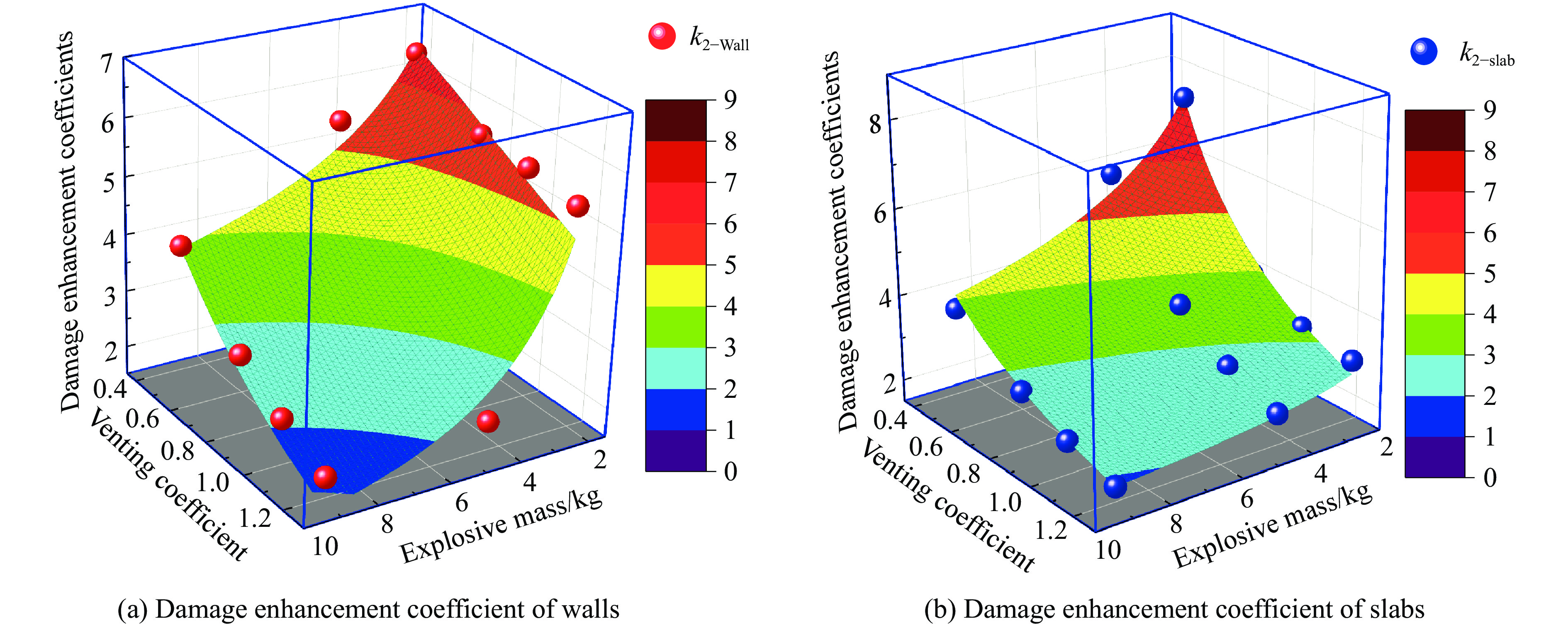 A Closed-Space Model was constructed using steel plates to examine the influence of afterburning energy load generated by explosive detonation products on the damage characteristics of confined space. Additionally, the quasi-static pressure in the confined space was simplified by applying the energy conservation law. Relying on the adiabatic index of the mixture of detonation products and air, as well as the complete afterburning degree of detonation products, a simulation method for the afterburning effect was proposed. This method was used to calculate the afterburning energy of detonation products and determine the beginning and ending times of the afterburning effect. The numerical simulation of implosion damage in a confined space was carried out by this method. The implosion simulation considering the afterburning energy load was performed by employing two simulation methods: constant reaction rate and linearly increasing reaction rate. The results were compared with the implosion simulation results without considering the afterburning effect. The influence and degree of change of the afterburning effect on the implosion damage characteristics were analyzed. It is found that the afterburning effect with different reaction rates has a significant influence on the detonation damage characteristics, except for the temperature, in confined spaces. Moreover, the enhancement effect of the constant reaction rate is the most significant. It increased the velocity and acceleration loads under implosion in the confined space by 42.67% and 71.21%, respectively. The overpressure and quasi-static pressure were increased by 74.42% and 74.95%, respectively, and the kinetic energy was increased by approximately 212%. The proposed simulation method for the afterburning effect can better simulate the dynamic response of implosion ruin in confined spaces and provides a more accurate simulation method of the afterburning effect for the design and evaluation of explosion-proof structures.