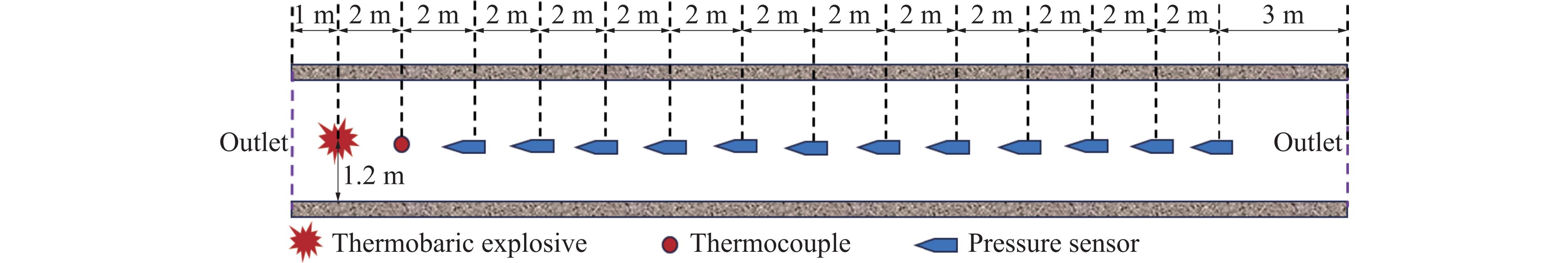 To investigate the propagation characteristics of blast shock waves and the thermal effects of fireballs in tunnel explosions involving thermobaric explosives, numerical simulations were conducted using OpenFOAM. The simulation accuracy was validated through comparative analysis with experimental data from tunnel explosion tests. The effects of axial distance along the tunnel and explosive mass on shock wave propagation characteristics and fireball thermal effects were systematically studied. The results demonstrated that under identical charge mass conditions when the axial distance exceeds 1/3 times the equivalent tunnel diameter, the attenuation law of shock wave overpressure peak and planar wave formation distance remain independent of axial position. After planar wave formation, the impulse increases with axial distance before stabilizing. At the same axial explosion distances, the planar wave formation distance increases with explosive mass. Post planar wave formation, the attenuation pattern of the shock wave overpressure peak remains unaffected by charge mass. In contrast, the impulse exhibits a growth trend proportional to the increase in charge mass. Under the influence of the tunnel portal energy dissipation effect (tunnel effect), explosion-induced fireballs exhibit a consistent propagation tendency toward the proximal tunnel portal. The confinement imposed by tunnel walls restricts the lateral expansion of the fireball perpendicular to the tunnel axis while facilitating the formation of a high-temperature tip along the longitudinal axis. Especially, the temperature distribution along the tunnel axis maintains axial symmetry despite directional propagation biases. A fitting formula was established to characterize the relationship between the maximum axial propagation distance of explosion fireballs at different temperatures and the explosive mass, enabling the prediction of axial spread limits for fireballs at specific temperatures in typical thermobaric explosive detonations within tunnel-confined environments.