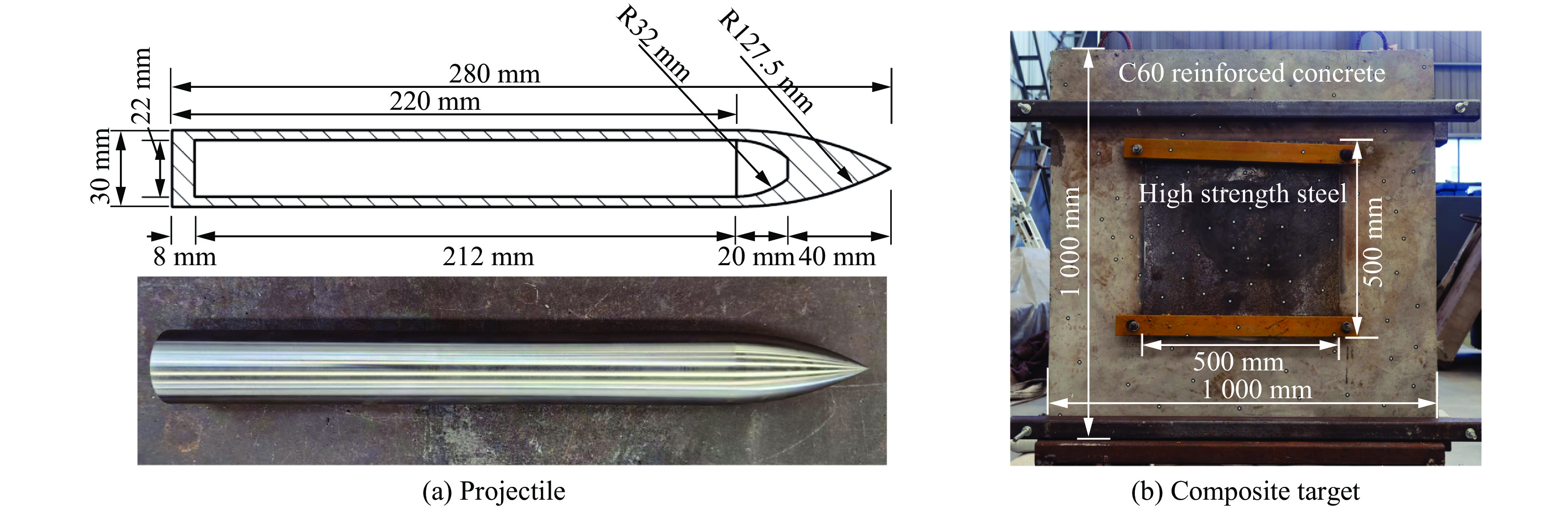 To explore the anti-penetration abilities of irregular structures made of high-strength alloy steel, a target enhanced with ultra-high-strength spherical structures (UHS-SS) was manufactured in this work. The UHS-SS is fabricated from ultra-high-strength steel (UHSS) and mechanically anchored to the target via threaded high-tensile rods, ensuring structural integrity under projectile penetration loading. A series of penetration tests at an impact velocity of 400 m/s was performed using a 125 mm diameter cannon. The yaw-induced projectile deflection was recorded at5000 s−1, and the failure mode and penetration depth of the projectile were obtained. Through a comparative analysis of anti-penetration experimental results between semi-infinite concrete targets and UHS-SS-reinforced targets, the influences of ultra-high mechanical performances and the spherical yaw-inducing structure on the deflection and fragmentation of the projectile were disclosed. The test results reveal that at a penetration velocity of 400 m/s, the dimensionless penetration depth of the UHS-SS target is 0.11, and the penetration resistance of the UHS-SS target is about 9 times that of C40 concrete. The anti-penetration performance of UHS-SS is significantly enhanced in comparison to that of the ordinary concrete target. Furthermore, as the projectile penetrates the UHS-SS target, the resultant force on the projectile is in a different direction from that of the projectile velocity, which can deflect and shatter the projectile. The behavior of ricocheting off the surface, deflection-induced secondary impact, and fragmentation of the projectile occurred during the anti-penetration test of the UHS-SS target, and the maximal deflection angle was 83º during the experiment, preventing the projectile from penetrating the interior of the protective structure. The UHS-SS target has a severe erosion effect on the projectile at a lower speed of 400m/s, which resulted in a mass loss rate of 23.66% in the experiment. Therefore, the risk of a ground-penetrating weapon penetrating the protective works and detonating is significantly reduced.