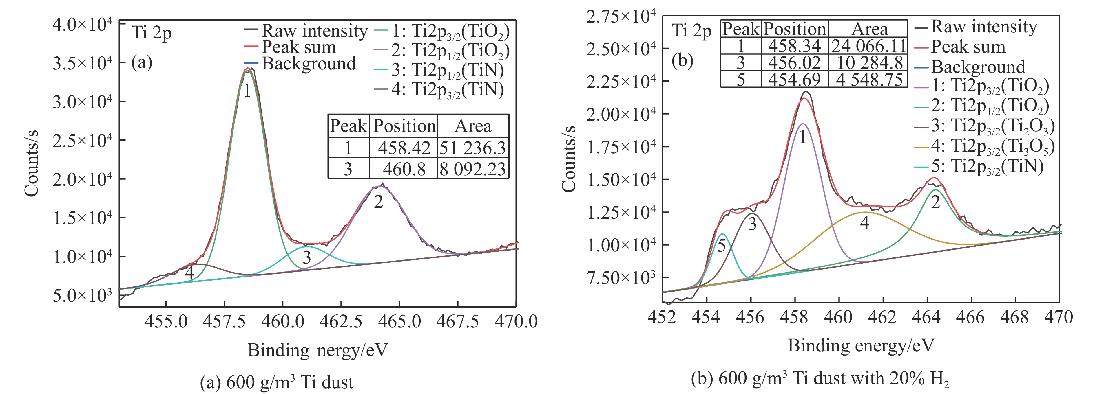 The advancement of titanium-based solid-state hydrogen storage technologies and titanium manufacturing processes inherently involves the formation of hydrogen/titanium dust hybrid mixtures, which present substantial explosion hazards. To investigate the explosion behavior of such two-phase systems, this study systematically examined the variation patterns of explosion intensity parameters in hydrogen/titanium dust hybrid systems using a standardized 20 L spherical explosion vessel. The experimental matrix covers hydrogen volume fraction ranging from 0% to 30% and titanium dust mass concentrations from 100 to 700 g/m3. Specifically, titanium dust concentrations were tested at seven discrete levels (100, 200, 300, 400, 500, 600, and 700 g/m3), while hydrogen concentrations were selected at eight critical values (4%, 5%, 10%, 15%, 20%, 25%, 29%, and 30%). Dynamic parameters, including explosion pressure and rate of explosion pressure rise, were synchronously recorded. Furthermore, the phase composition and surface chemical states of explosion residues were characterized using X-ray diffraction (XRD) and X-ray photoelectron spectroscopy (XPS). This integrated approach provides in-depth insights into the macroscopic evolution of explosion intensity with varying gas-solid ratios and elucidates the underlying microscopic reaction mechanisms. Experimental results demonstrate that hydrogen concentration critically modulates explosion severity. The explosion pressure exhibits a characteristic three-stage dependence on hydrogen concentration: it initially decreases, reaching a minimum at 4% H2, subsequently increases to a maximum at 29% H2, and finally declines at higher concentrations. Correspondingly, the maximum rate of pressure rise rate decreases to its lowest value at 4% H2 before increasing continuously up to 30% H2. The maximum explosion pressure shows an analogous trend, peaking at 29% H2 after an initial reduction, while the maximum rate of pressure rise reaches its minimum at 4% H2 and peaks at 30% H2. Residue analysis indicates that at low hydrogen concentrations (<4%), incomplete oxidation of titanium predominates, thereby reducing explosion intensity. Beyond the critical threshold of 4% H2, hydrogen self-combustion promotes titanium-nitrogen reactions and facilitates the transition from heterogeneous to homogeneous combustion, significantly enhancing explosion severity. This investigation provides fundamental insights into the explosion dynamics of hydrogen/titanium dust mixtures and delivers essential parameters for risk assessment and safety mitigation in related industrial applications.