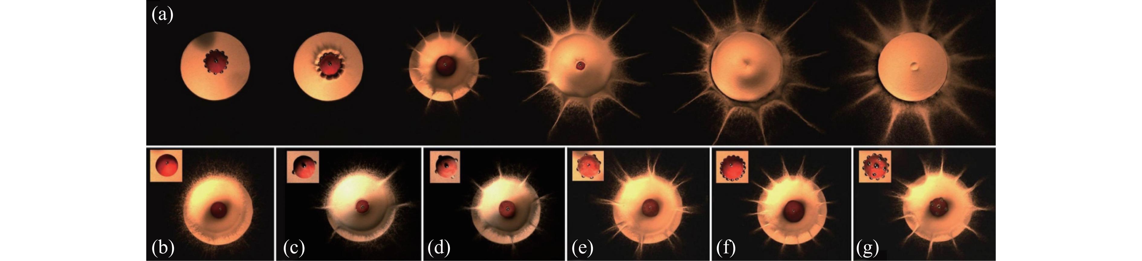 金属桥箔电爆炸驱动绝缘飞片的冲击起爆与点火技术在武器装备的起爆与点火系统中被广泛应用。为弥补现有研究对飞片运动过程中流场演化规律描述不足的缺陷,促进该技术向能量高效利用以及小型化等方面发展,搭建了双脉冲激光纹影瞬态观测实验系统,获得了不同时刻下流场的密度分布以及飞片的运动距离,同时,建立了金属桥箔电爆炸驱动飞片运动过程的二维轴对称流体动力学计算模型与计算方法,计算充分考虑了加速膛内外流场在飞片运动、冲击波压缩以及高温高压等离子体膨胀等作用下的演化规律,采用相变体积分数法描述桥箔在电能作用下由固相到等离子体相的转变,建立了等离子体状态方程以准确描述等离子体的状态,采用动网格模型描述了飞片在流场驱动下的运动。计算与实验得到的流场密度分布具有较好的贴合性,且飞片运动距离和飞片运动速度的最大误差分别为6.1%与8.1%,验证了计算模型与计算方法的准确性。研究结果表明:电容为0.33 μF、起爆电压为2800 V时,研究范围内,流场压强最大值基本维持在1×107 Pa左右;流场温度逐渐从516 ns时刻的9950 K降低到2310 ns时的3100 K;流场等离子体相分布逐渐由扁平状发展为长条状,等离子体相与飞片运动垂直方向的最大扩散距离为0.8 mm。1360 ns后,由于飞片突破冲击波波阵面,流场压强分布与温度分布的前端突起。