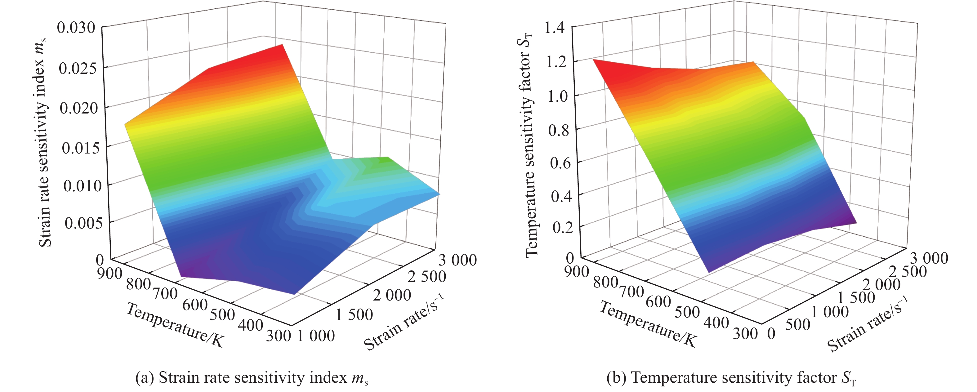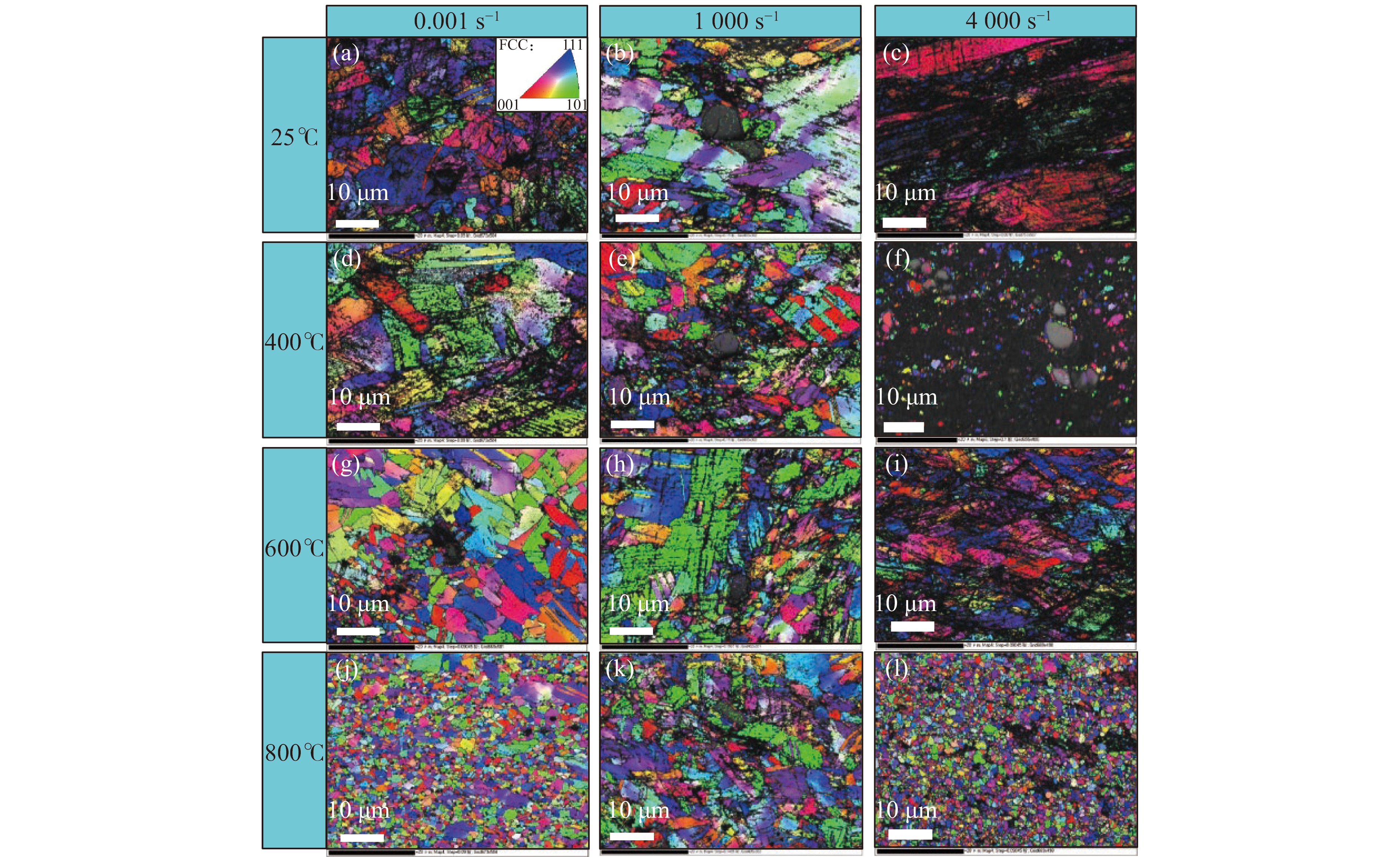 为研究高速铁路弓网系统在动态冲击和摩擦温升等服役条件下的力学性能,采用DF14.205D电子万能试验机和分离式霍普金森压杆,测试了应变率0.001~3000 s−1和温度293~873 K范围内高速铁路接触网铜镁合金材料的单轴压缩力学性能,分析了其应力-应变响应的应变率效应和温度敏感性,揭示了率温耦合作用下铜镁合金材料的压缩变形机制和微观组织演化规律,并构建了能准确描述其塑性流动行为的动态本构模型。研究表明,接触网铜镁合金材料在压缩过程中表现出显著的应变率强化和温度软化效应,并且这些效应受到加工硬化、应变率、温度软化等因素的共同作用;当温度大于473 K时,材料的变形主要以温度软化为主导,且温度能促进材料动态回复与动态再结晶过程;修正后的Johnson-Cook模型能够较好地预测该材料的塑性流动应力-应变响应。研究结果可为高速列车弓网系统服役安全设计和评估提供参考。
