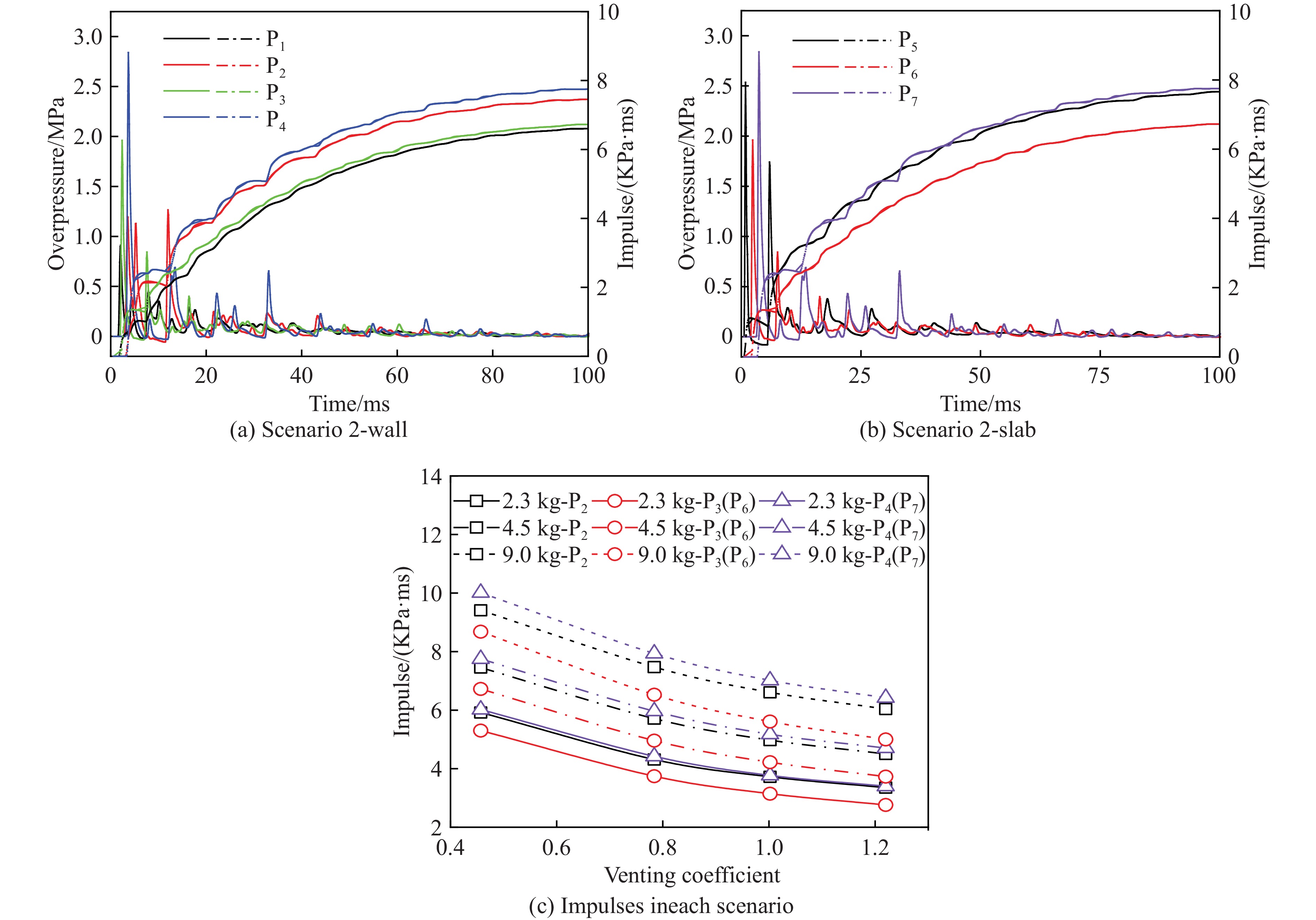 The calculation method of explosion relief area for lithium-ion battery thermal runaway (LIBTR) environmental structures is still unclear. Using an 8L cylindrical explosion test device, five discharge diameters of 10.5mm, 15mm, 21.2mm, 30mm and 60mm were set to simulate the explosion relief law of LIBTR environmental structures. The results show that the explosion relief pressure Pred of the gas (BVG) released by thermal runaway of lithium-ion batteries is higher than the Pred of the BVG-graphite powder mixture, and the influence of solid particles ejected by thermal runaway can be ignored; Pred decays exponentially with the increase of the discharge diameter and grows logarithmically with the opening pressure Pstat of the explosion relief device; combined with the specifications, the calculation formula for the explosion relief area of lithium-ion battery structures is obtained, and the commonly used pressure relief ratio C is given as 0.11. The research results provide a reference for the explosion relief of lithium battery environmental constructure.