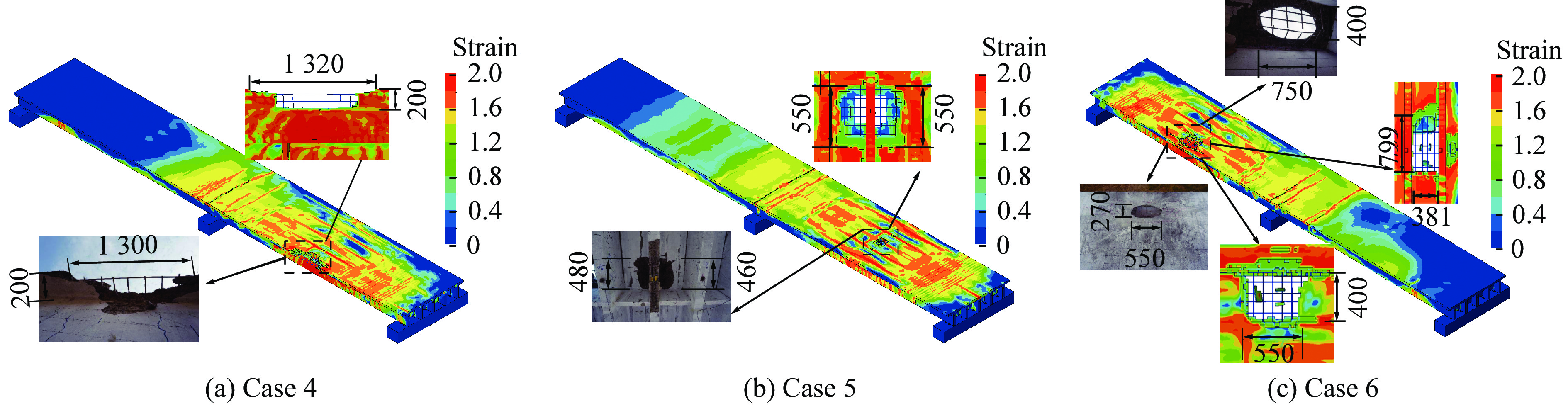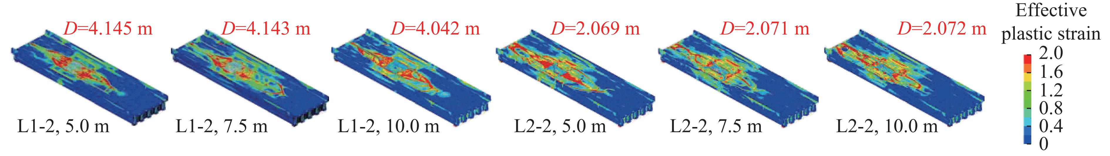 以预应力钢筋混凝土(reinforced concrete, RC) T型梁桥桥面板经爆炸荷载作用后的破口尺寸为损伤指标,结合数值模拟与多元非线性回归分析,开展桥面损伤快速评估研究。结果表明:通过比较爆炸作用下桥面板破口的横向尺寸,发现混凝土强度的影响相对较小,而爆炸位置、桥面厚度、横隔板间距、TNT当量及比例爆距等参数的影响较显著;由于腹板和横隔板对桥面板具有较强的增强和约束作用,在其他条件相同的情况下,腹板与横隔板之间的桥面板上方爆炸产生的破口横向尺寸显著小于腹板正上方爆炸,且桥上爆炸的损伤程度显著小于桥下爆炸。基于上述影响较大的参数,提出以破口横向尺寸为损伤指标构建预测桥梁炸后通行能力的爆炸快速损伤评估公式。