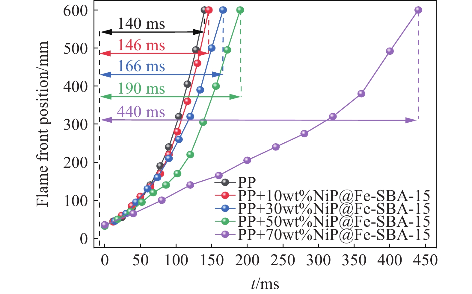 抑爆剂在防止粉尘爆炸事故中起着至关重要的作用。通过原位合成方法制备了一种新型的NiP@Fe-SBA-15抑爆剂,采用哈特曼管道爆炸测试系统,对爆燃火焰的传播行为进行了实验研究,测定了NiP@Fe-SBA-15抑爆剂对聚丙烯(polypropylene,PP)爆炸火焰的抑制作用,以及添加不同比例的NiP@Fe-SBA-15抑爆剂对PP爆炸火焰的抑制效果。实验结果表明:NiP@Fe-SBA-15抑爆剂能够显著降低PP粉尘爆燃火焰的温度和燃烧速度,当添加质量分数为70%的NiP@Fe-SBA-15时,基本实现了对PP爆燃火焰的高效抑制。此外,结合爆炸产物的实验分析结果,提出了NiP@Fe-SBA-15对PP粉尘爆燃的物理和化学抑制机制。
