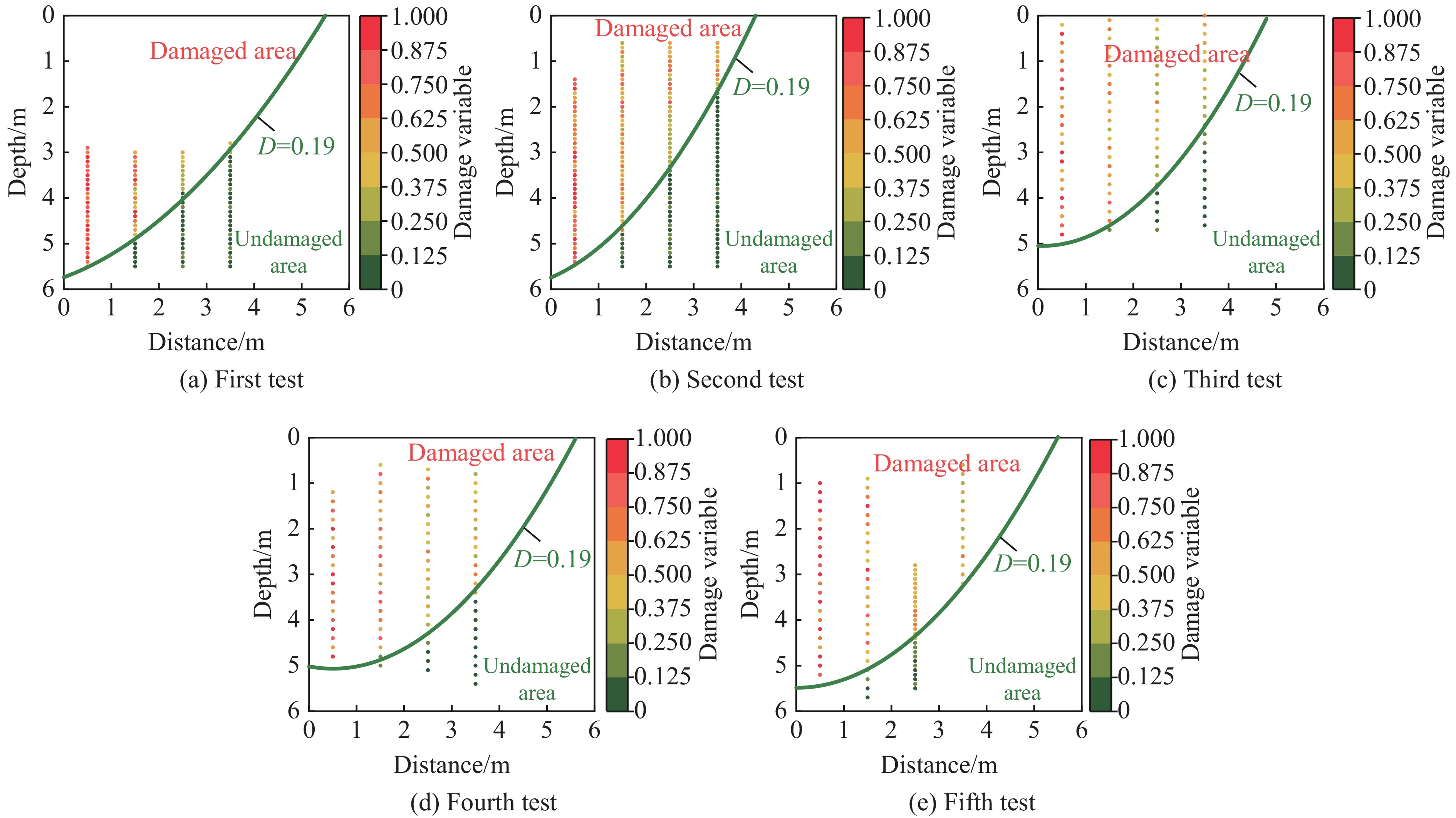 为有效控制跨海工程中爆破开挖对基岩的损伤,系统研究了水下钻孔爆破中孔底复合垫层装药结构的损伤控制效果。结合某跨海大桥嵌入式沉井爆破开挖工程实例,采用现场取样与水下爆炸模型试验,利用压电陶瓷检测系统定量分析了孔底复合垫层中不同波阻抗铁砂混凝土对岩样损伤的影响;基于分形维数与损伤理论,对不同工况下岩样顶部裂纹的扩展行为进行了量化评估。结果表明:孔底复合垫层可有效抑制岩样宏观裂纹扩展,减少顶部裂纹数量,并降低裂纹的轴向扩展深度。对岩样轴向损伤的分析,随着波阻抗的提高,炮孔区(0 ~ 12 cm)轴向损伤因子最大可降低9.95%,基岩区(12 ~ 28 cm)轴向损伤因子最大降幅达40.23% ~ 92.1%。研究表明,水下钻孔爆破中采用孔底复合垫层装药结构可显著减轻基岩的爆破损伤,并通过调节铁砂混凝土波阻抗实现对岩样轴向损伤的有效控制。