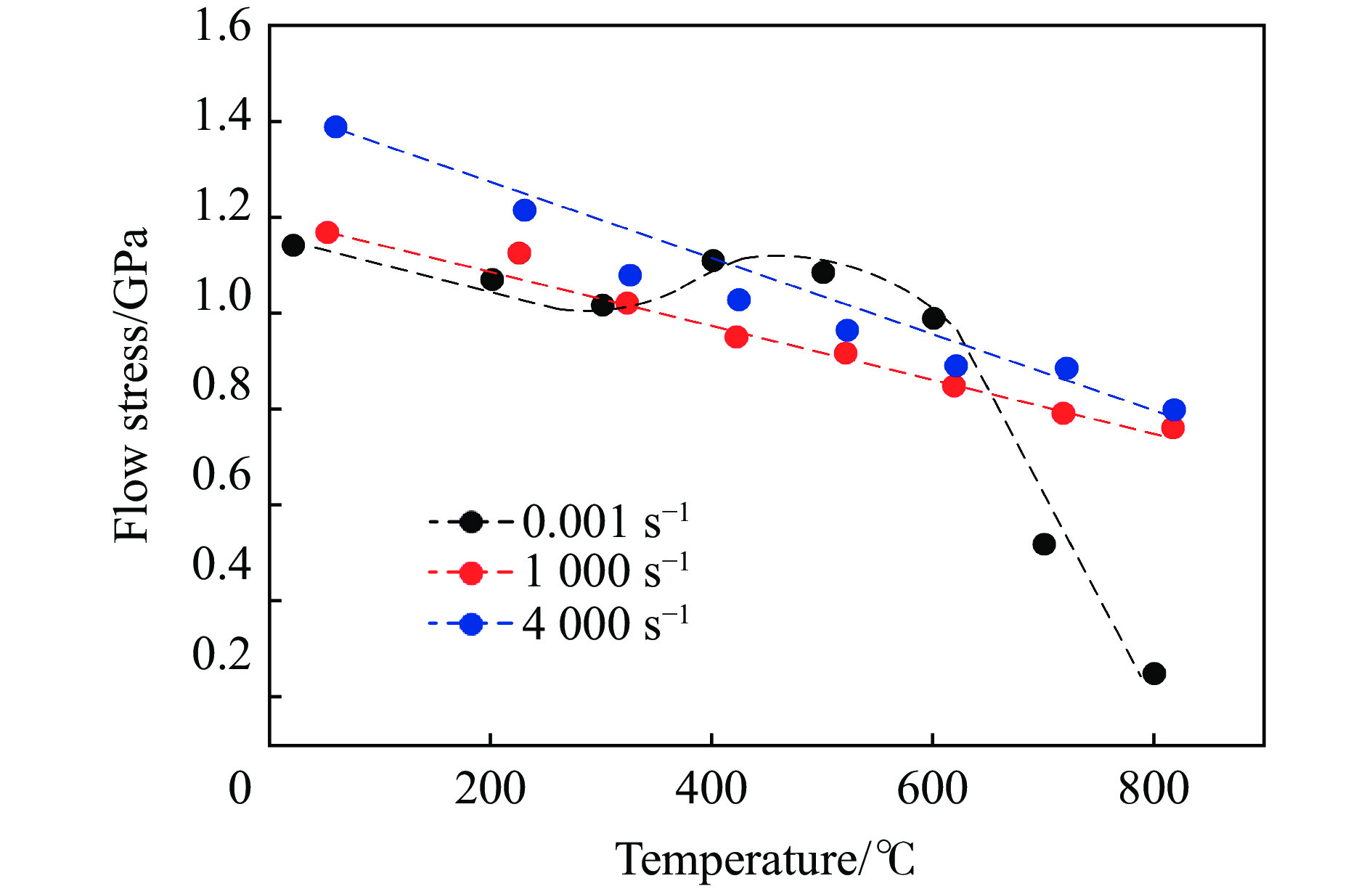 为了进一步探索间隙C原子对CoCrNi基中熵合金的应变率效应和温度效应的影响,系统地研究了由面心立方(face-centered cubic,FCC)基体和三级层级沉淀微观结构组成的CoCrNiSi0.3C0.048中熵合金在宽温域、宽应变率范围内的压缩力学行为、微结构演化过程以及变形机理。结果表明,该合金在400 ℃下变形时,其真应力-真应变曲线呈现出明显的“锯齿流变”现象,而且随着应变的增大,锯齿的振幅逐渐减小,直至消失。此外,其准静态下流动应力随温度的变化曲线上出现了反常应力峰(第三型应变时效现象),在高应变率下,第三型应变时效引起的反常应力峰消失。通过微观结构的表征分析,推测其准静态下出现第三型应变时效现象主要是由于间隙C原子的存在,在塑性变形的不断进行和发展过程中,产生了一系列由致密位错胞、微带、层错、位错簇和变形孪晶等组成的类似于非均质结构的混合结构。这些混合结构加剧了间隙原子与移动位错之间的相互作用,进而钉扎位错,出现动态应变时效现象。在动态情况下并未出现第三型应变时效的原因可能是溶质原子的运动相较于位错的运动速度较慢,无法及时钉扎位错。另外,大量的纳米级SiC沉淀的析出弱化了动态加载下间隙原子的“钉扎”作用。