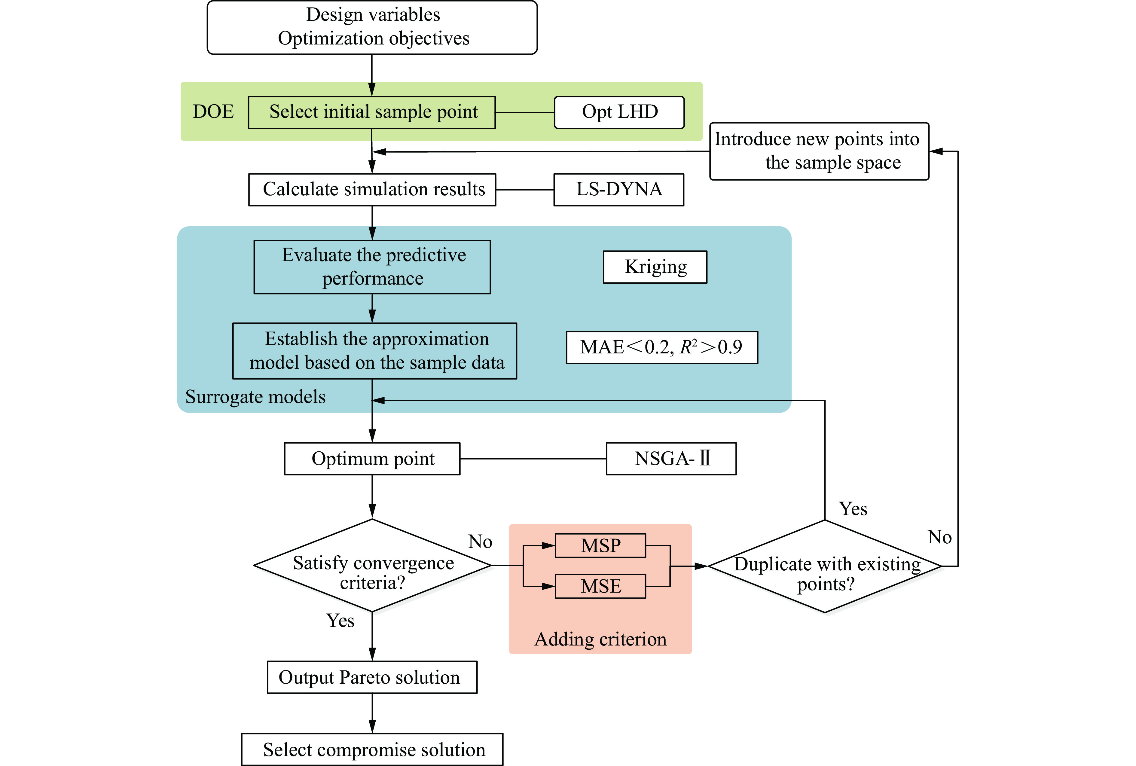 桁架类点阵超材料是一类超轻质承载吸能材料,在冲击防护领域具有广阔的应用前景。然而,由于点阵超材料细观构型参数空间庞大,且构型参数与力学响应之间存在复杂的非线性关系,其性能优化面临巨大挑战。针对上述问题,基于桁架类点阵超材料的细观结构特征,提出了一种高效的快速数字化建模方法,并利用 Python 脚本驱动 Abaqus 仿真软件,实现了材料的批量化建模与仿真分析。在此基础上,通过有限元数值模拟建立了不同构型点阵超材料的准静态压缩性能数据集,并利用实验验证了数据集的可靠性。随后,训练了一个人工神经网络(artificial neural network,ANN)模型作为代理函数,并将其嵌入非支配排序遗传算法(non-dominated sorting genetic algorithm II,NSGA-II),对点阵超材料开展多目标优化设计,获得了具有高承载能力、高吸能特性以及兼顾承载吸能性能的点阵超材料构型。研究结果表明,融合机器学习技术与有限元仿真,可有效降低优化设计的计算成本,为复杂点阵超材料的快速性能优化与定制化设计提供技术支撑。