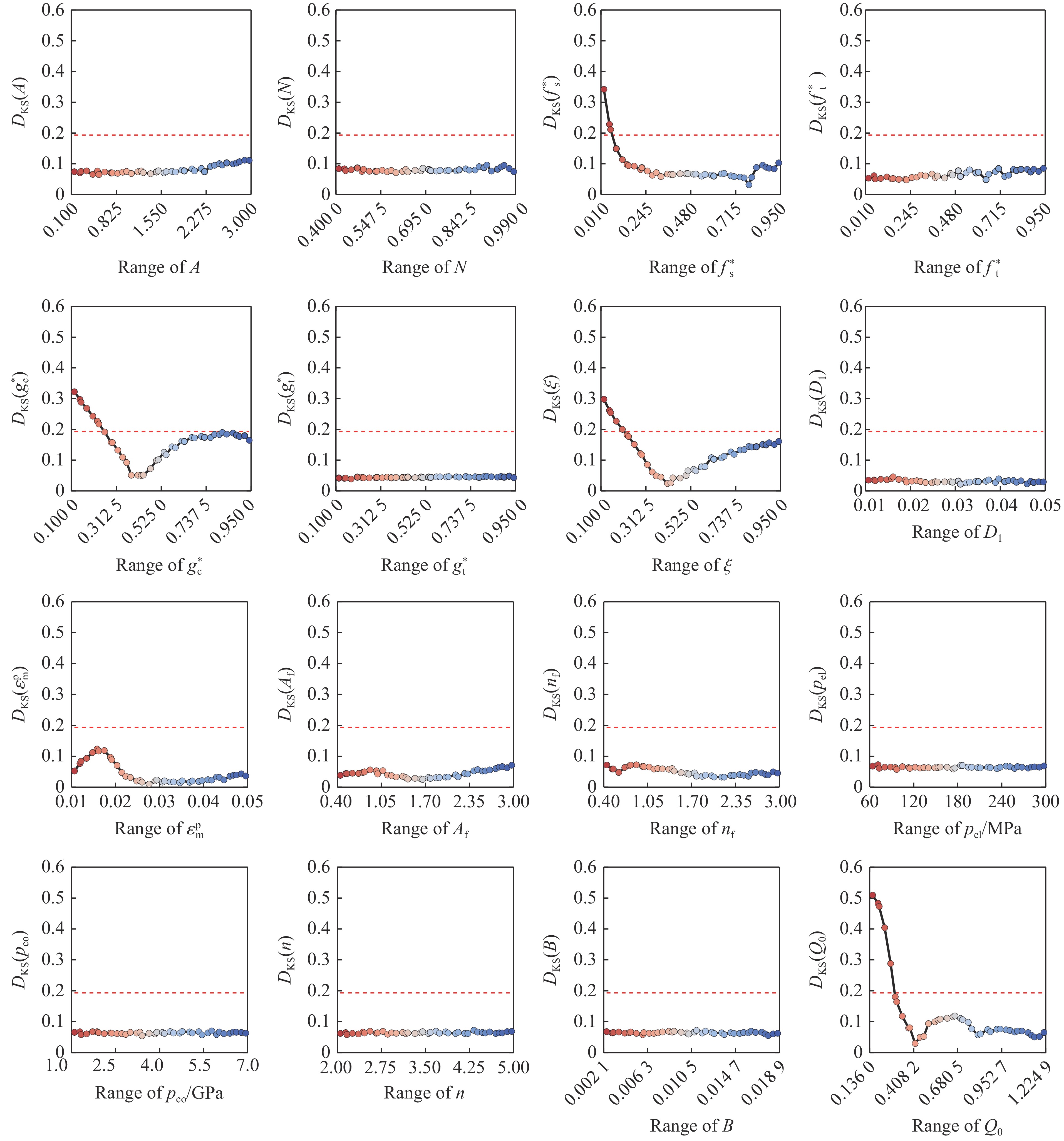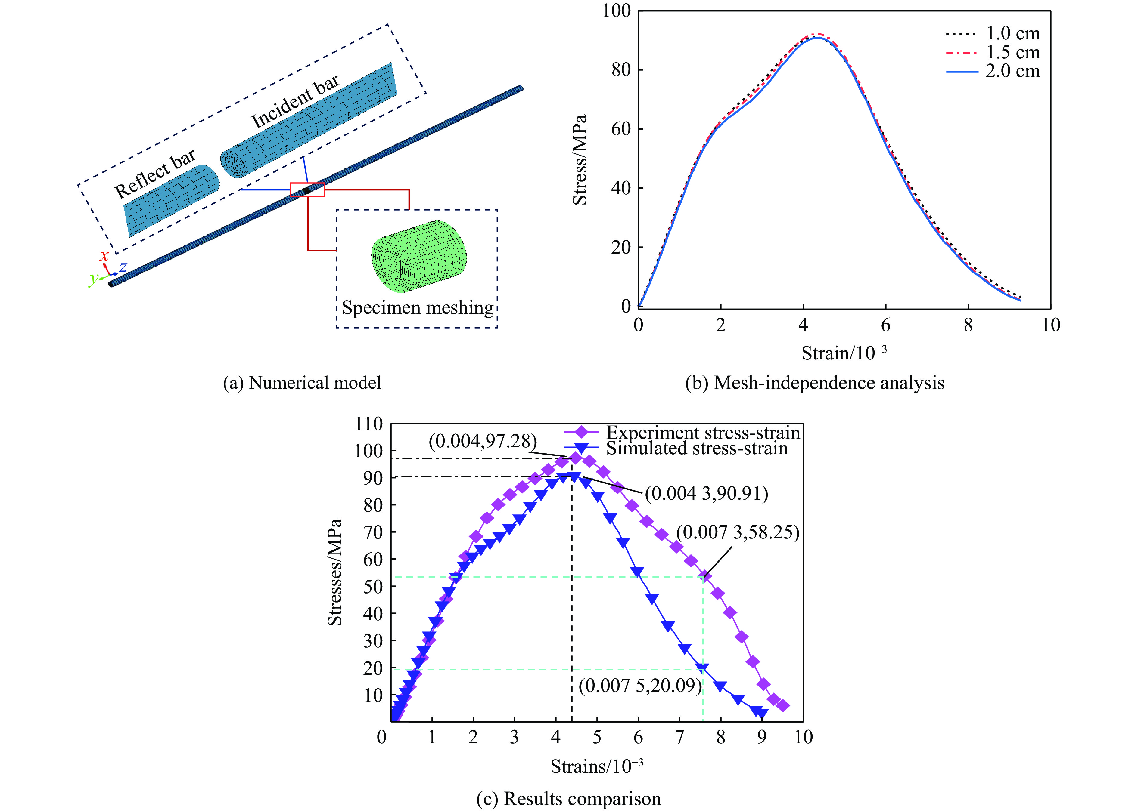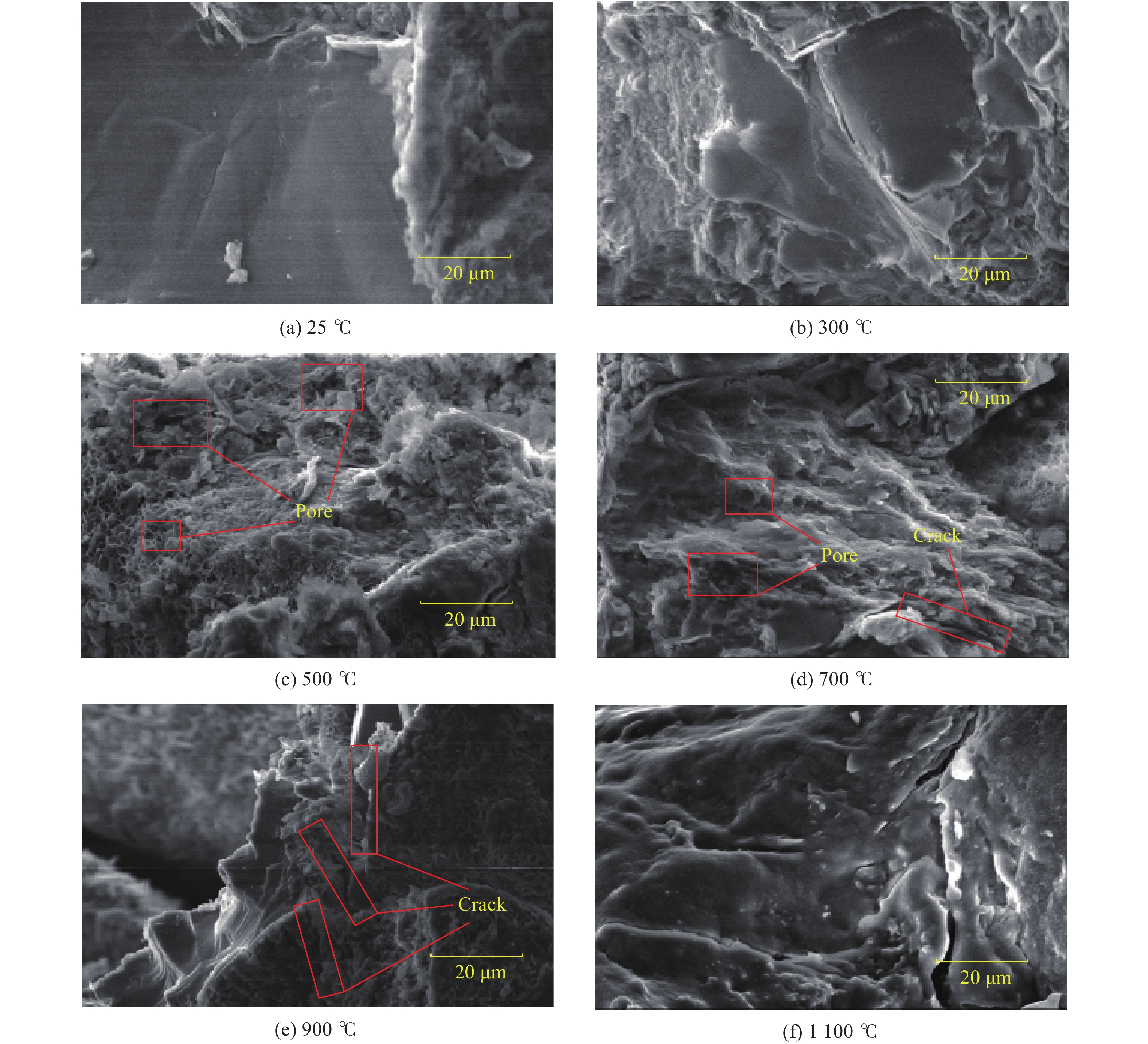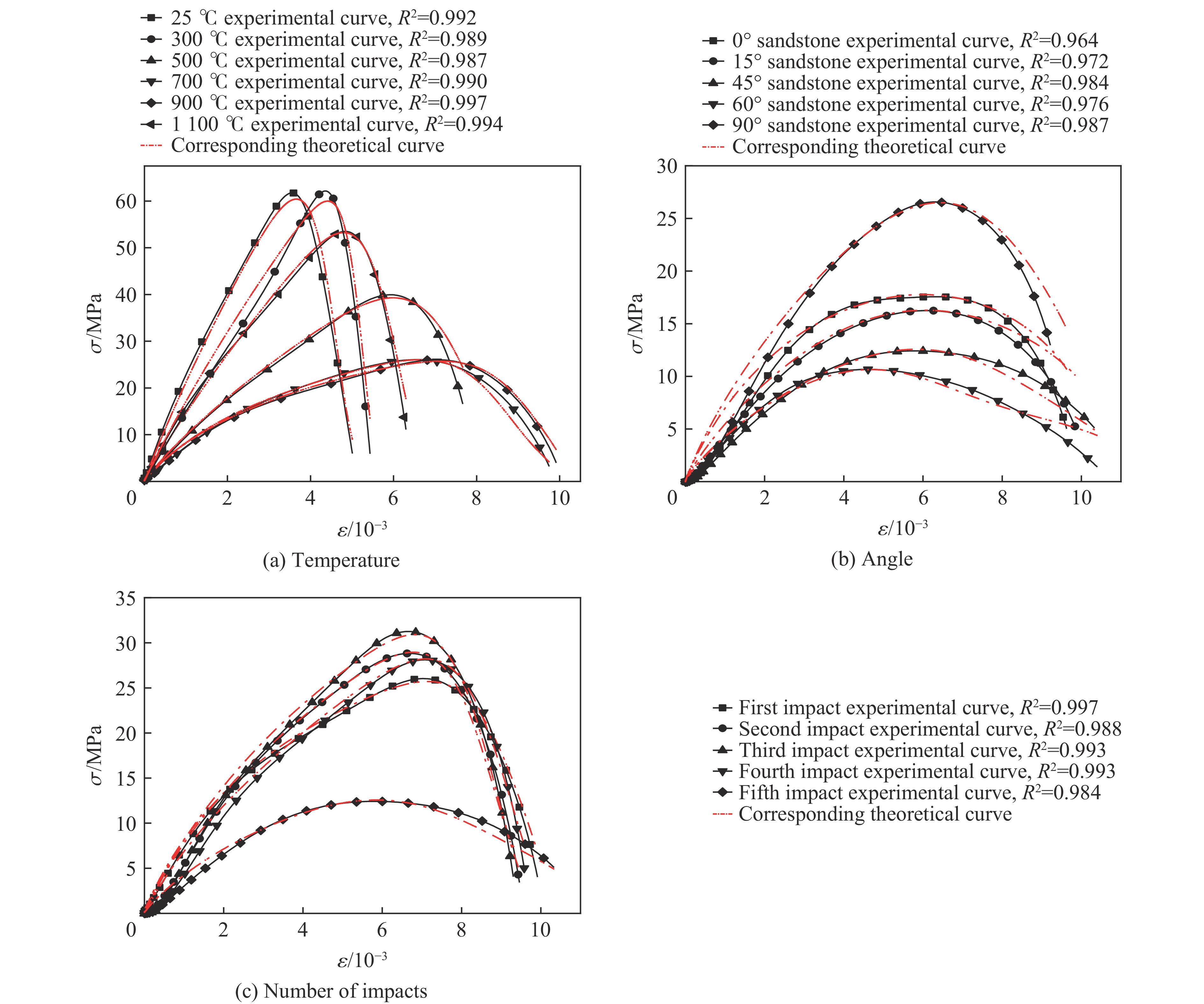 为研究循环冲击下高温层理砂岩的动力学特性及动态损伤本构模型,首先对高温(300~1100 ℃)作用后层理砂岩的物理特性进行测试;其次利用霍普金森压杆(split Hopkinson pressure bar,SHPB)装置开展了循环冲击下高温层理砂岩动力学特性研究;最后,基于层理岩石黏弹性损伤元件模型,构建了考虑高温-冲击荷载耦合损伤的层理岩石动态本构模型,并通过实验数据对模型进行了验证。结果表明:砂岩主要矿物晶体石英的变晶温度处于500~700 ℃之间。温度越高,砂岩表观颜色越深,质量越小,波速和峰值应力先减小后增大。温度对0°、45°层理砂岩造成的损伤更大,900 ℃时损伤最为显著。在1300 V冲击电压下,层理砂岩的峰值应力随冲击次数的增加呈现先升后降的趋势。冲击荷载使高温后的0°层理砂岩更容易破坏,而45°和60°层理砂岩表现出较强的抗冲击能力。模型预测曲线与试验曲线相差较小,表明该模型在描述高温层理砂岩循环冲击力学特性方面具有良好的适用性。