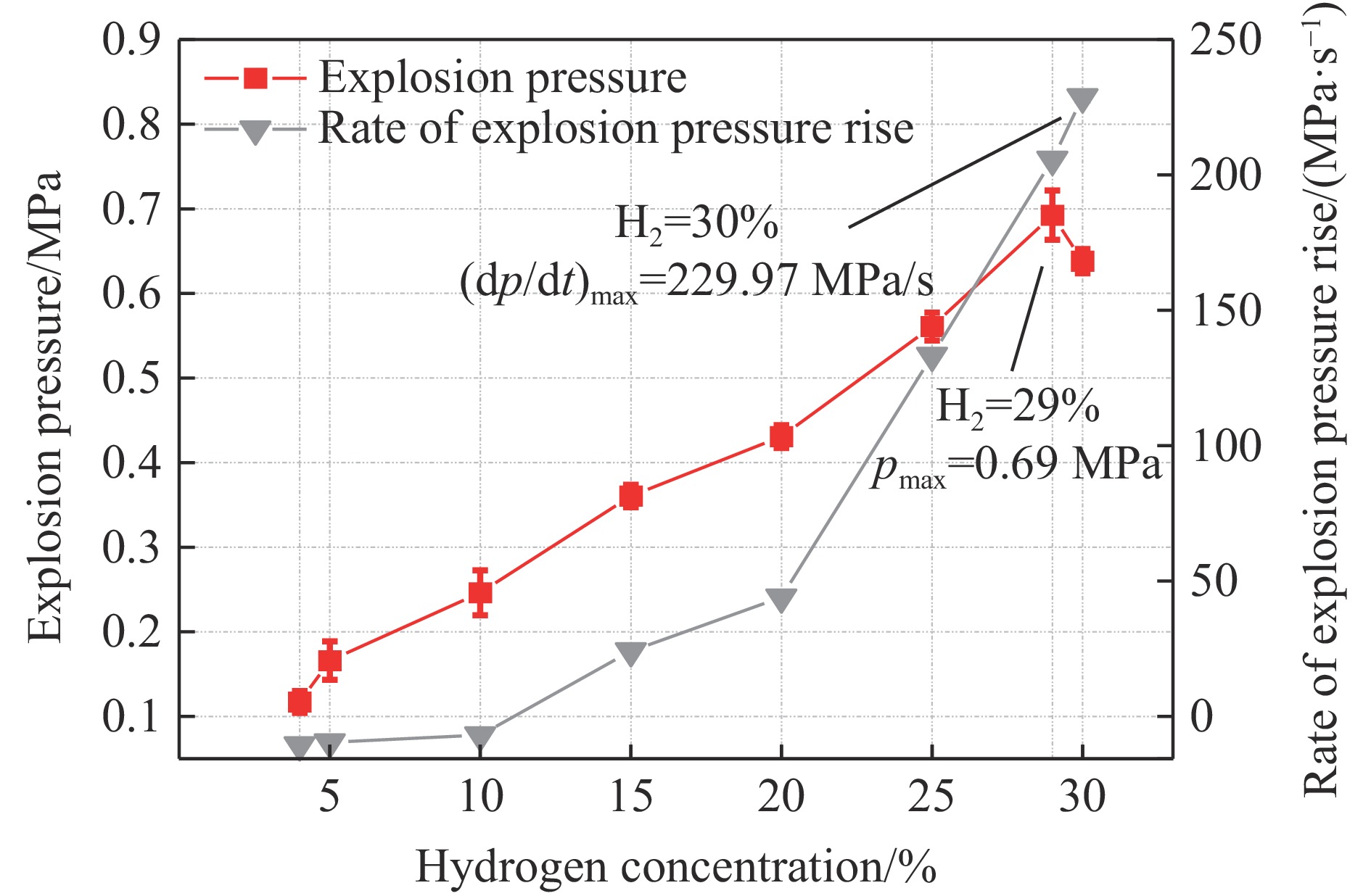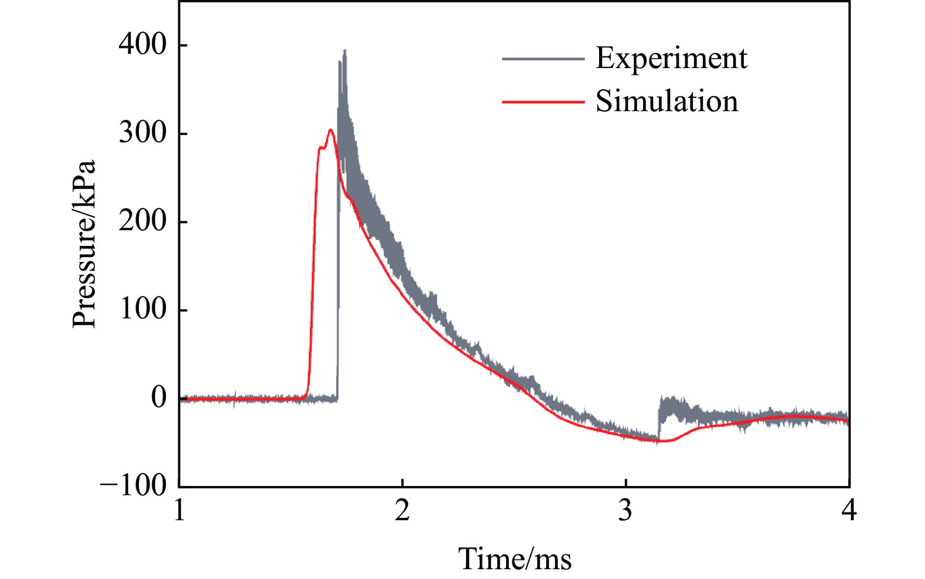 氢能作为一种零碳能源,凭借其高能量密度和零碳排放的特性,在国防关键系统中具有广阔的应用前景。为提高能源的利用效率并保障安全,采用试验与数值模拟相结合的方法,系统研究了受限空间内氢气浓度对爆炸动力学特性的影响;在圆柱形容器中进行试验,使用压力传感器和高速摄像机记录爆炸过程中的压力变化和火焰传播规律;同时,结合CFD数值模拟技术,采用包含19步反应的氢气/空气详细化学反应机理,准确捕捉了预混气体爆炸过程中气流速度的时空演化过程。结果表明:最大爆炸压力出现在氢气体积分数为30%时,峰值达到0.623 94 MPa;火焰面积峰值在氢气体积分数为30%和45%工况下最大,相比体积分数为15%和60%时分别提高了14.6%和6.3%,其中,氢气体积分数为30%时,火焰面积在8.2 ms时最快达到峰值。此外,在圆柱侧壁与端壁交界区域,由于几何约束导致未燃氢气积聚,造成局部密度和压力升高,在流场中形成4个明显的高速区。在9 ms时,流场中心线上的气流速度呈对称分布,且单侧出现双峰值结构。在氢气体积分数为45%工况下,初期气流速度因局部热释放较强而呈现瞬态速度优势;而氢气体积分数为30%时,凭借其持续稳定的燃烧过程,气流在后期实现速度反超,体现出近化学计量比条件下的高效燃烧稳定性,为高效氢气燃烧系统的设计与性能提升提供了科学依据。