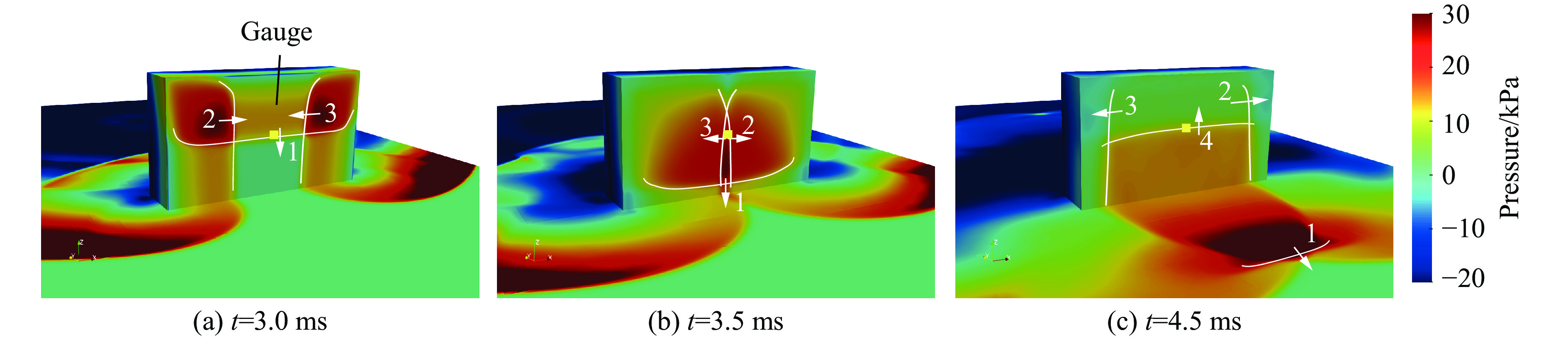 为探究极地低温环境下水下爆炸破冰效果,采用LS-DYNA对水下爆炸破冰过程进行数值分析,考虑极地低温环境下冰层温度梯度影响,分析了冰层在冲击波阶段和气泡脉动阶段下的动响应过程和破坏机理,探讨了水下爆炸破冰效果的影响因素,及其对破坏模式的改变,从应力波传播和能量释放的角度分析了各因素的影响规律和原因。研究结果表明,典型工况条件下,水下爆炸载荷下冰层的动响应过程可分为五个阶段:应力波作用阶段,初始裂纹萌生阶段,局部弯曲变形阶段,整体回落阶段和射流侵彻阶段。增大装药量带来的破冰效果提升有限,爆距能直接影响能量传递效率,存在一个使破碎区效果最佳的最佳爆距,而裂隙区的最佳爆距更大。冰层厚度的影响非线性,随着厚度增加,破碎区范围逐渐减小并趋于稳定,而气泡运动主导的裂隙区范围在一定条件下反而会增大。通过数值模拟方法,发现温度梯度冰层和等效温度冰层的破坏模式相近,在相同爆炸载荷下的破碎效果会略有差异。