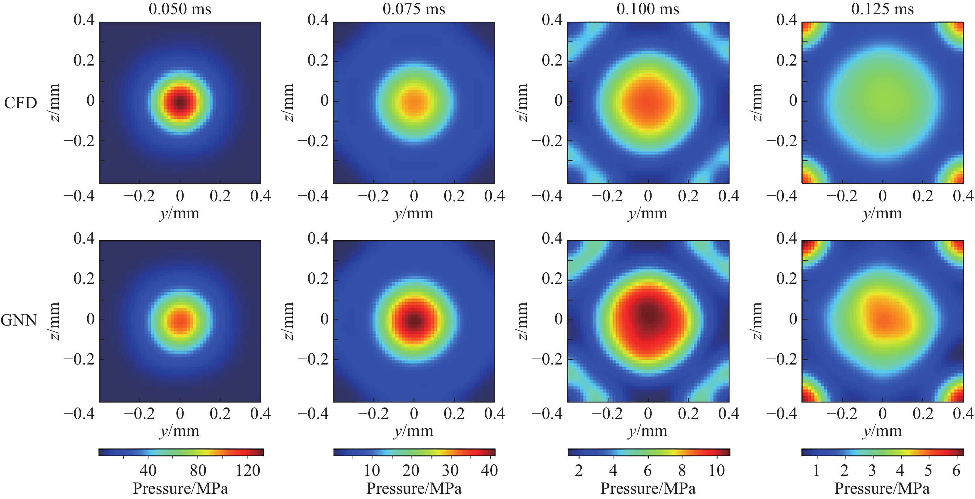 为了满足对爆炸产生的压力荷载进行准确快速预测的需求,提出了一项基于图神经网络(graph neural network, GNN)的爆炸压力时空分布预测人工智能模型。利用开源软件blastFoam进行计算流体动力学(computational fluid dynamics, CFD)仿真,并通过网格重映射技术,以空间六面体网格划分为基础,将物理状态信息编写到节点特征中,以此将计算结果转化为标准的图格式数据,并由此建立了一个TNT自由场爆炸数据集和一个TNT密闭空间内爆炸数据集。将GNN模型分别在两个数据集的训练集上进行训练,监测模型在测试集上的均方根误差(σ)和决定系数(R2),并将预测结果与CFD的计算结果进行对比。结果表明,本文提出的人工智能模型针对自由场爆炸和密闭空间爆炸工况均得到了良好的预测效果。该人工智能模型具有在小样本上提取特征能力强、预测速度快、预测效果好、应用场景多样的优势,并且能够实现在三维空间内对爆炸压力场进行时间和空间维度的预测。