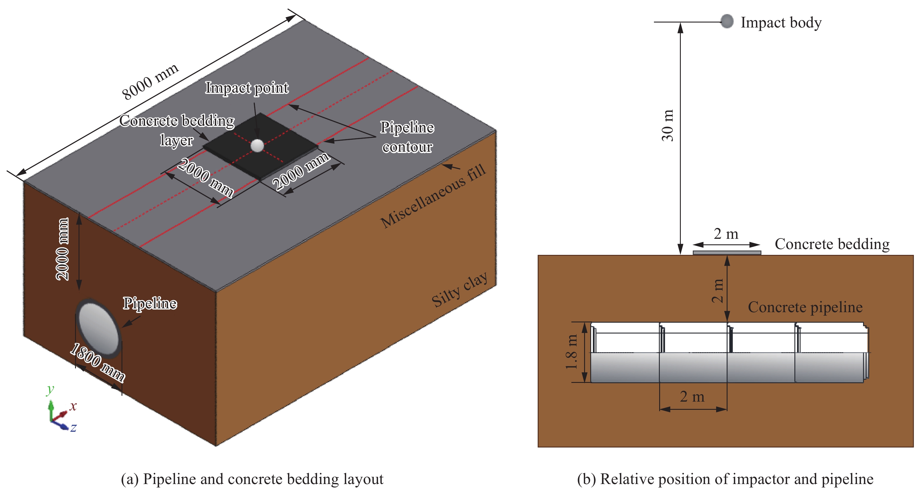 针对地质灾害高风险区段埋地管道所面临的落石冲击威胁,为深入探究其动力响应特性,本文通过缩尺模型试验与数值模拟相结合的方法,系统研究了埋地管道的动力响应特性。建立的试验模型缩尺比例为1:10,采用落锤冲击试验装置,结合LS-DYNA有限元分析,探讨了管道埋深、壁厚、冲击参数、管道参数和土体特性(土体弹性模量和管土摩擦系数)对埋地管道的影响规律。试验结果表明:同一冲击高度下,管道埋深和壁厚越大,应变峰值越小;落锤偏心冲击时,冲击点偏离管道中心后,对管道上下截面影响降低;冲击高度越高,管道中部应变峰值越大。数值模拟表明:管道最大应力和应变与管道直径、内压、冲击速度正相关,与冲击偏距、土体弹性模量、管道埋深负相关;管土摩擦系数增大对管道应力应变影响有限,超过0.3后影响甚微。基于Pearson相关性分析,各参数影响程度为:冲击偏距>管道内压>管道直径>土体弹性模量>管土摩擦系数,其中管道内压、管道直径、管土摩擦系数与应变正相关,土体弹性模量、冲击偏距与应变负相关,落石冲击偏距和管道内压对埋地管道影响中等偏强相关。研究成果可为高风险区域埋地管道的安全设计提供依据。
