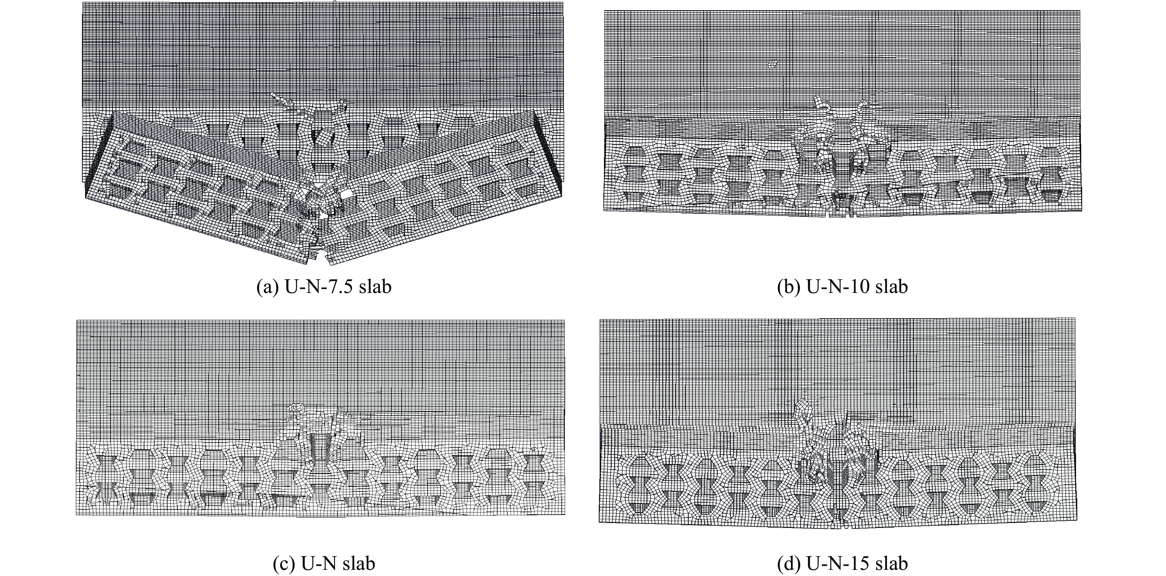 为提升防爆墙的抗爆性能,将负泊松比结构与超高韧性水泥基复合材料(ultra-high toughness cementitious composites, UHTCC)结合,并通过爆炸试验与数值模拟相结合的方法,研究分析负泊松比靶板的抗爆性能,证明UHTCC负泊松比靶板的抗爆性能优越性。首先,利用混凝土3D打印技术实现负泊松比结构建造,并通过靶板接触爆炸试验结果验证有限元模型的可靠性。在此基础上,利用该有限元模型模拟分析了靶板材料、结构、胞元内凹角及实心层厚度占比等因素对接触爆炸下结构破坏形态与能量消耗的影响。结果表明:(1)具有高韧性的UHTCC靶板抗爆性能显著优于混凝土靶板;(2)3种结构中,负泊松比结构板吸能能力最强,实心板更能保持结构的完整性;(3)当负泊松比胞元内凹角为61°时抗爆性能最优,过小或过大均降低结构抗爆性;(4)负泊松比结构厚度占靶板总厚度过大时抗爆性能弱,结构破坏严重,可上下层同时或仅背爆面增加实心层厚度,在有效削弱爆炸冲击波、吸收能量的同时,提高结构完整性。研究验证了负泊松比UHTCC板抗爆性能优越性,并为基于负泊松比结构的防爆墙设计提供了理论依据。