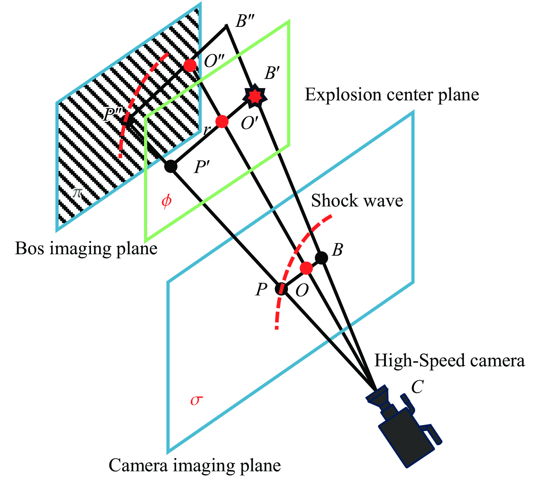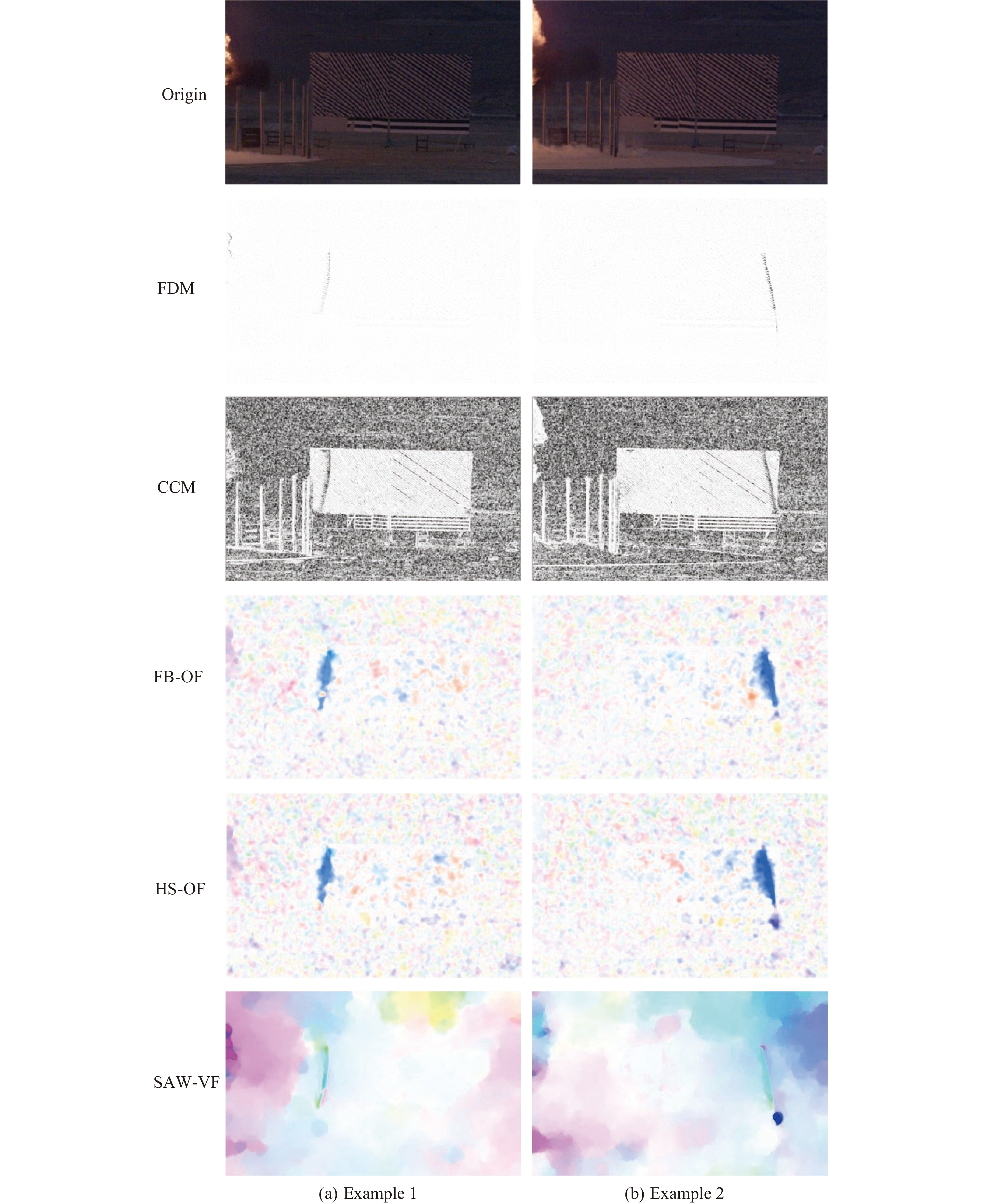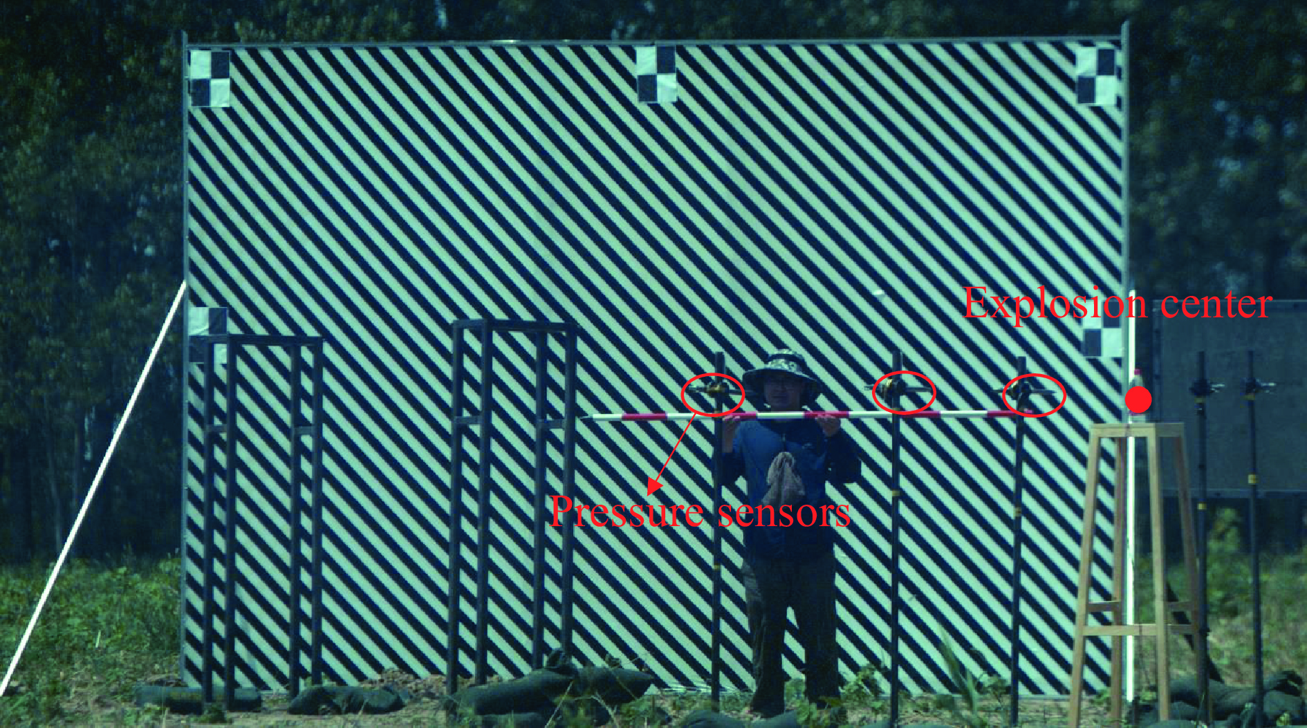 背景纹影(background-oriented schlieren,BOS)技术因其非接触与高时空分辨率的优势,已成为爆炸力学外场试验的重要测量手段,但受强光干扰、产物散射及冲击波信号微弱且形态复杂等因素影响,BOS图像中波阵面的自动精确提取十分困难。为此,提出了一种结构感知加权变分光流方法(structure-aware weighted variational optical flow,SAW-VF),用于对冲击波的高速瞬态位移场进行鲁棒量化,其核心是最小化一个针对性构建的能量泛函:首先,在数据保真项中融合一阶光度与二阶Hessian矩阵不变性约束,从而显著增强对冲击波线状局部几何特征的敏感性;其次,引入由归一化互相关(normalized cross-correlation,NCC)驱动的空间自适应加权机制,能够动态抑制严重畸变区域对估计结果的负面影响;然后,采用受佩罗娜-马利克(perona-malik)扩散启发的各向异性正则项,以有效保护冲击波锋锐的运动边界。为了以应对大位移运动,整个优化过程嵌入由粗至精的高斯金字塔框架中。在此基础上,进一步构建了物理模型驱动的波阵面拟合方法,通过最大内点集优化与冲击波动力学约束精确提取波阵面。最终,通过基于几何标定与时间序列估计冲击波半径及传播速度,结合兰金-雨贡纽(rankine-hugoniot)理论实现非接触式超压定量测量。在TNT爆炸试验中,该方法测量结果与压力传感器数据的相对误差为0.93%~9.85%,验证了其在冲击波非侵入式超压测量中的有效性与准确性。