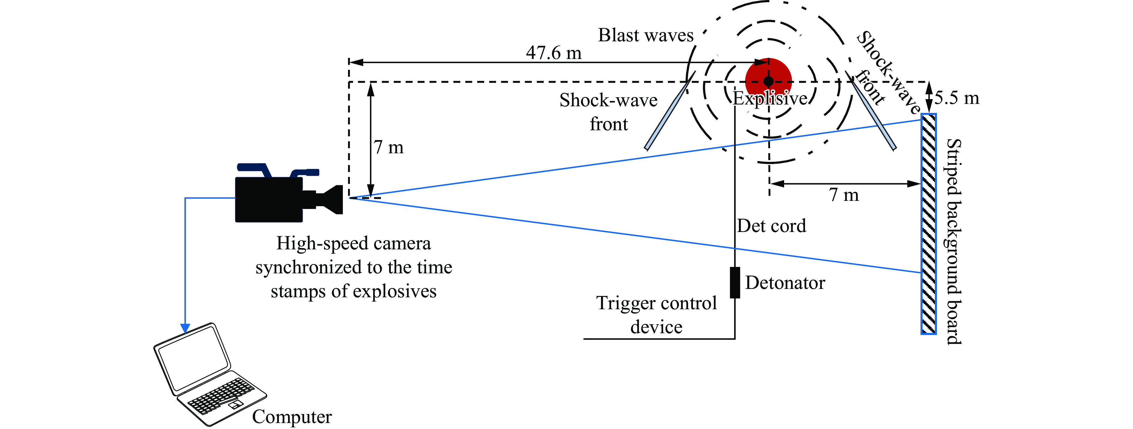 随着爆炸事故突发性和发生频率的持续上升,事故爆炸当量作为评估爆炸威力的关键参数,其快速获取对于毁伤评估与应急响应与毁伤评估具有至关重要的作用。为此本文提出了一种基于爆炸音视频信息的事故爆炸当量反演方法,通过分析爆炸出现火光至波到达的时间差实现对爆炸威力的定量评估。基于Hopkinson-Cranz比例定律、Rankine-Hugoniot方程及自由场与近地超压模型,引入冲击波衰减至声波阶段的临界比例距离参数,构建了基于双波走时的当量反演理论模型。通过开展近地与空中爆炸试验,揭示了两种工况下的波速变化规律,验证了所建模型的有效性与适用性,并分析了爆炸高度、帧率和取帧方式对于三种模型当量预测精度的影响。结果表明:近地爆炸工况下地面反射效应会显著提高爆炸波传播速度,与传统的经验公式及结合声波走时的改进公式相比,本文提出的双波理论模型充分考虑了冲击波与声波的传播特性差异及近地爆炸中的地面反射效应,在爆炸高度、帧率、取帧方式等多因素的影响下,表现出更好的稳定性和更优的预测精度。本研究提出的音视频融合反演方法为事故爆炸当量快速评估方面提供了新的技术途径,在公共安全应急响应与防护领域具有广阔应用前景。