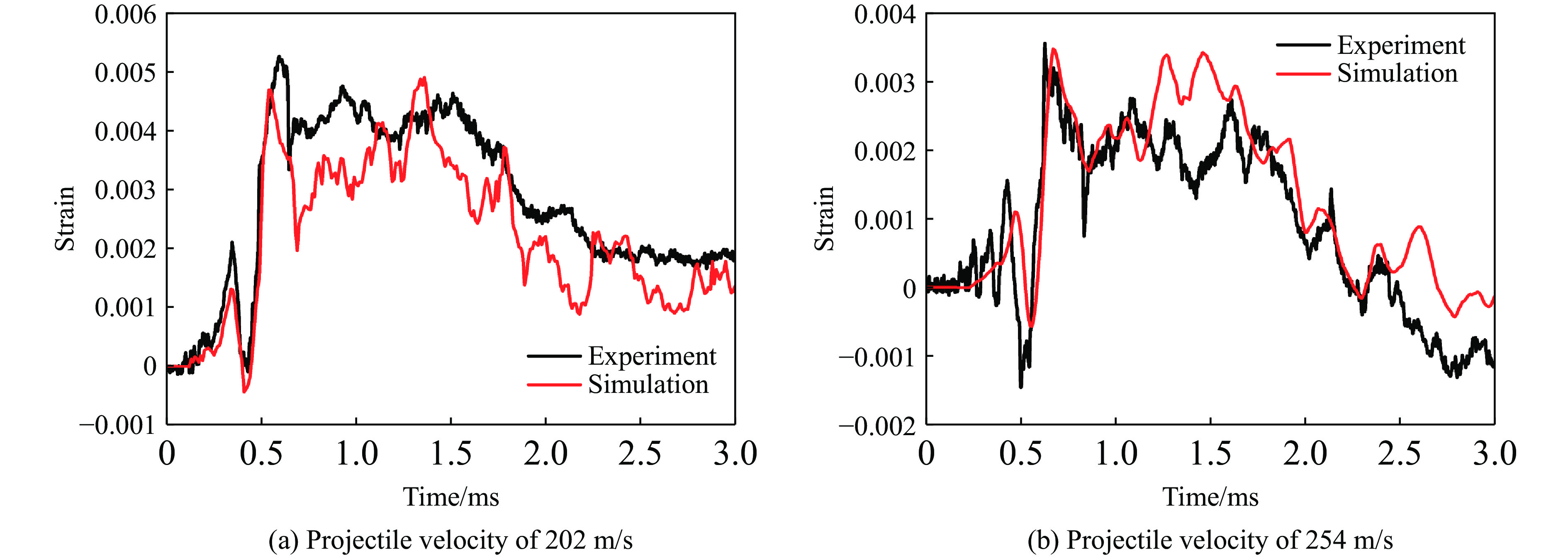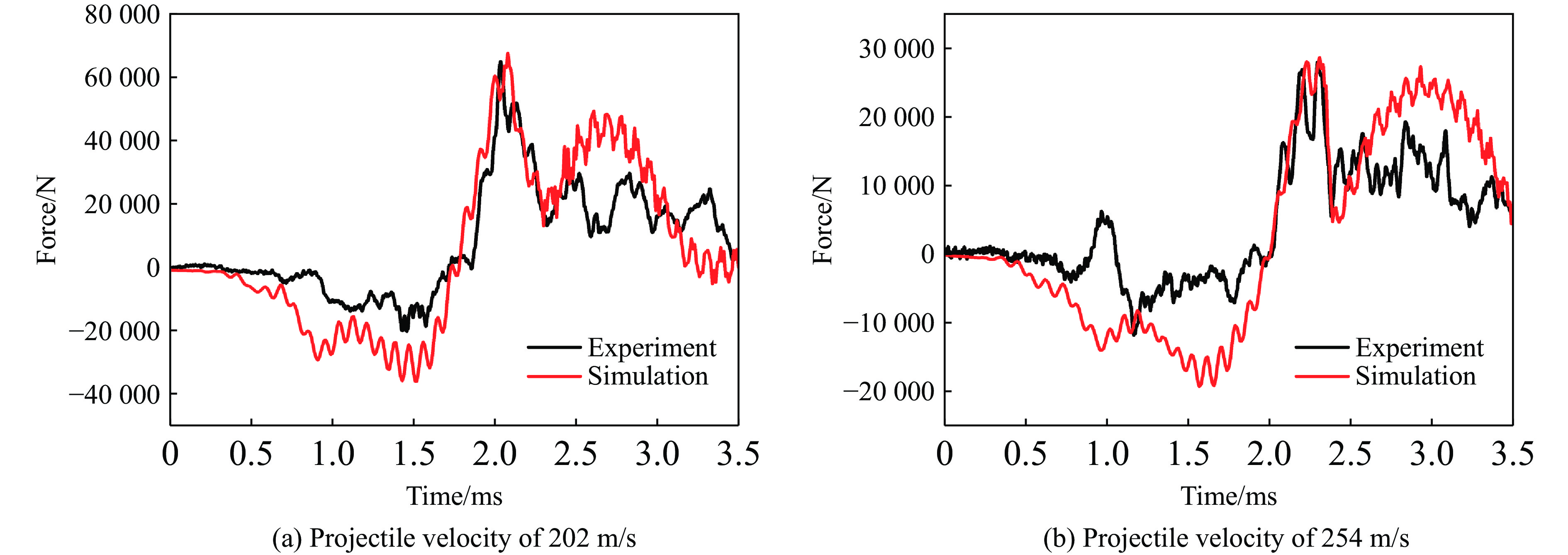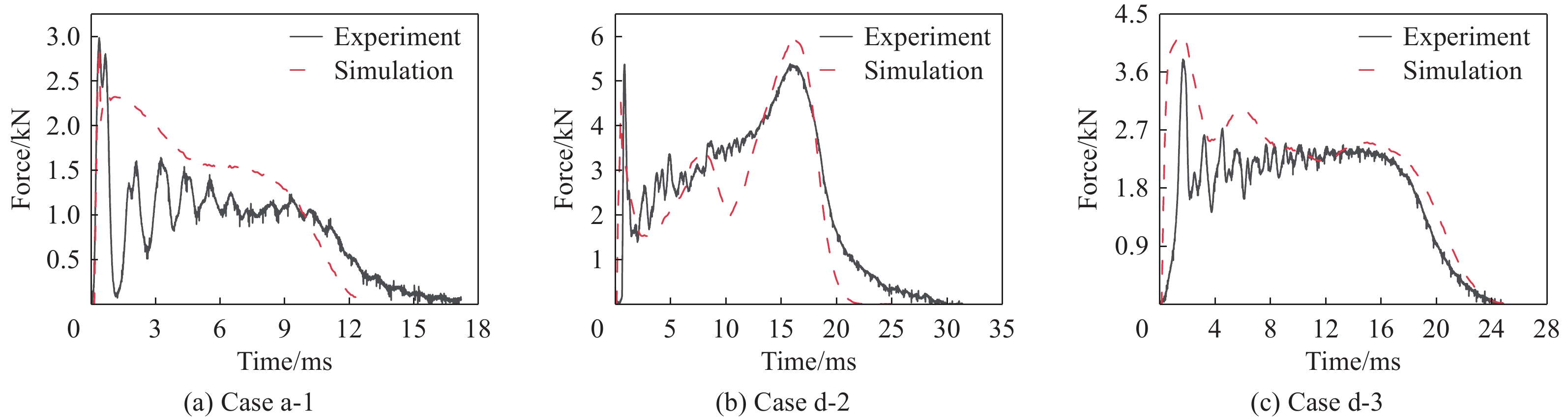 由于侵彻花岗岩试验存在原料获取难度大、费用高的问题,现开展钢筋混凝土与花岗岩靶标等效性研究。本文使用量纲分析与修正补偿法,以剩余速度作为等效前提,获得等效厚度计算方法。依据现有试验研究,使用LS-DYNA软件,结合数值模拟方法,建立弹体中速侵彻靶标的数值模型,以弹体尺寸、速度和靶标厚度为变量设计典型工况,数据拟合得到花岗岩靶体与钢筋混凝土靶体的具体等效设计公式。研究表明:建立的数值仿真模型能够较为准确地模拟出弹体侵彻花岗岩与钢筋混凝土靶体过程中弹体的剩余速度以及靶体的破坏特征;在弹体侵彻过程中,花岗岩靶体相较钢筋混凝土靶体,压实区与隧道区直径更小,裂纹更细、更长、扩展速度更快,靶面上裂纹面积更大,容易形成较大的剥落弹坑;在相同侵彻条件下,花岗岩与等效厚度钢筋混凝土靶体的破坏特征相近,破坏区域均可划分为5个部分;基于量纲分析与补偿修正法获得了弹体在侵彻钢筋混凝土与花岗岩时的无量纲剩余速度函数表达式以及钢筋混凝土与花岗岩靶体的等效厚度公式;拟合得到花岗岩与钢筋混凝土等效靶厚系数为1.69966,并使用等效靶厚系数对靶厚等效设计公式进行验证,原型靶体与模型靶体弹体剩余速度误差不超过5%。研究结果可为弹体中速侵彻岩石靶板的等效设计提供参考。