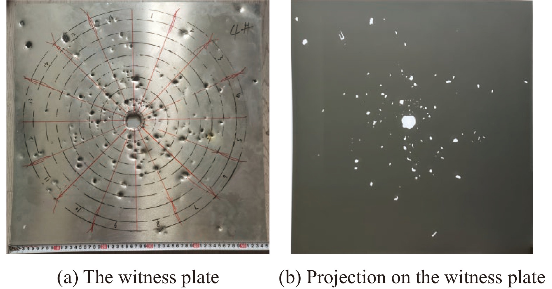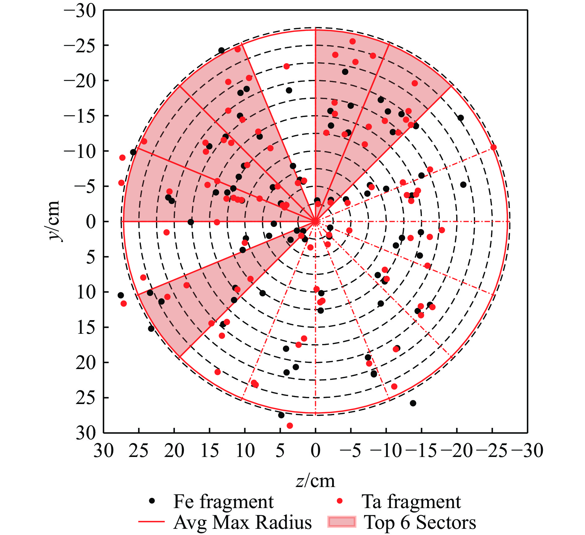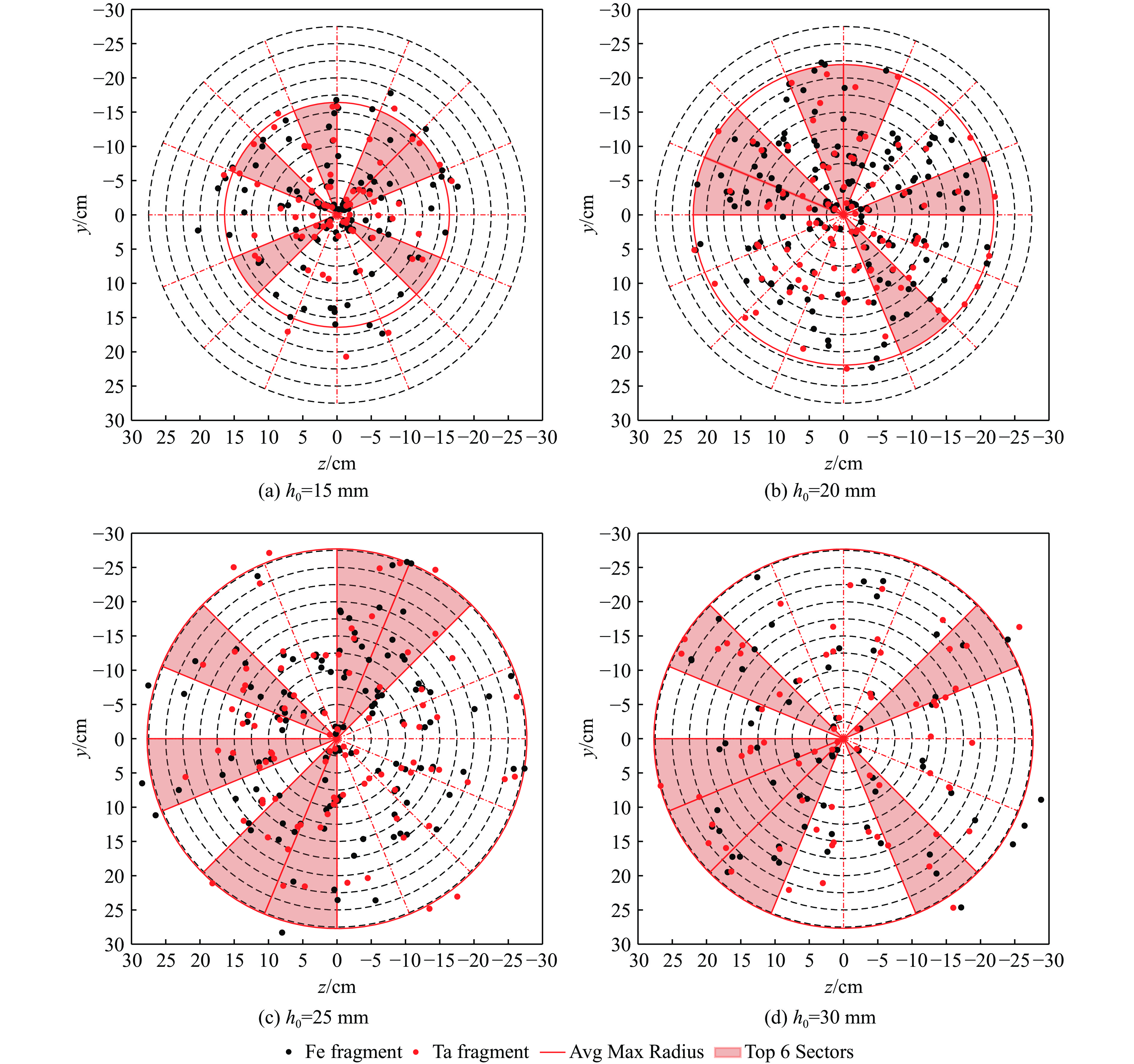 为研究钽合金爆炸成型弹丸(explosively-formed projectile,EFP)侵彻靶板产生靶后破片的空间散布,首先开展了钽合金EFP侵彻45钢的X光及破片散布试验;其次,采用经试验验证的FE-SPH(finite element-smoothed particle hydrodynamics)固定耦合方法开展了多种弹、靶条件下EFP垂直侵彻靶板的数值模拟,获得了靶后破片空间散布的数据集;最后,采用基于贝叶斯优化的支持向量回归对靶后破片密集飞散角数据进行训练,得到了基于贝叶斯优化的支持向量回归模型。研究结果表明:从试验结果来看,靶后破片云形貌为典型的截椭球状,由于钽、钢密度差异导致不同材料破片径向膨胀能力不同,钢破片分布在椭球的外表面而钽破片分布在椭球的内表面,靶后破片主要集中在验证靶上中心穿孔处周围的圆形区域;采用FE-SPH固定耦合方法模拟再现了靶后破片的形成过程,得到的靶后破片云形貌与试验结果十分接近,靶后破片平均最大飞散角与试验结果相对误差不超过10%,验证了数值模拟结果的准确性;建立的基于贝叶斯优化的支持向量回归模型能够实现对不同靶板厚度、着靶速度条件下靶后破片的密集飞散角的准确预测,数值模拟结果与模型预测结果最大相对误差均小于10%,在此基础上可以实现对靶后一定距离内验证靶毁伤面积的快速预测。