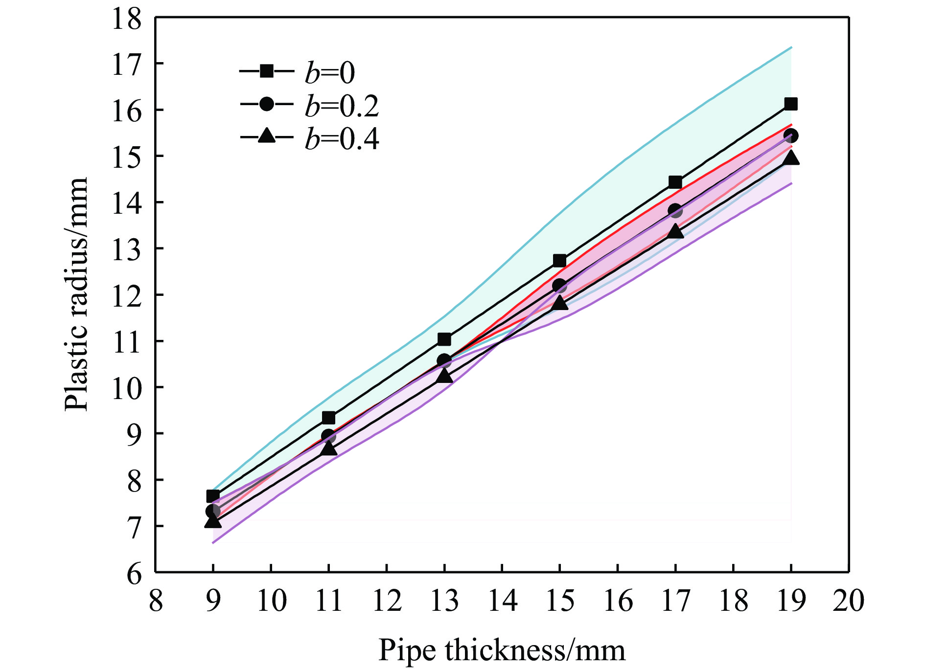 为揭示弹体高速侵彻下天然气管道的局部损伤机理,本文基于侵彻试验、数值模拟与理论推导,建立了一种基于统一强度理论的管道损伤塑性半径统一解。通过设计开展L415M管道钢的弹体侵彻试验,获取了管道着弹面撞击形态、塑性区范围及塑性半径等关键参数。基于试验结果和ANSYS/Workbench建立动力学模型,对管道的局部应力场与应变分布进行了数值模拟,并引入统一强度理论对中间主应力参数b的敏感性进行了系统分析,进而结合有限柱形空腔膨胀模型,推导建立了管道损伤塑性半径的解析表达式,并提出了弹体侵彻天然气管道局部损伤失效准则,当侵彻荷载下测量得到的塑性半径超过由材料单向拉伸断裂应变εf与模型参数A(含中间主应力参数b)所限定的临界值rmax时,可判定管道发生局部损伤失效。结果表明:当b=0.2时,理论预测与试验结果吻合最佳,相对误差小于10%,能较准确描述管道局部塑性变形及损伤规律,为长输天然气管道在高速冲击载荷下的安全评估与防护设计提供理论依据和工程参考。