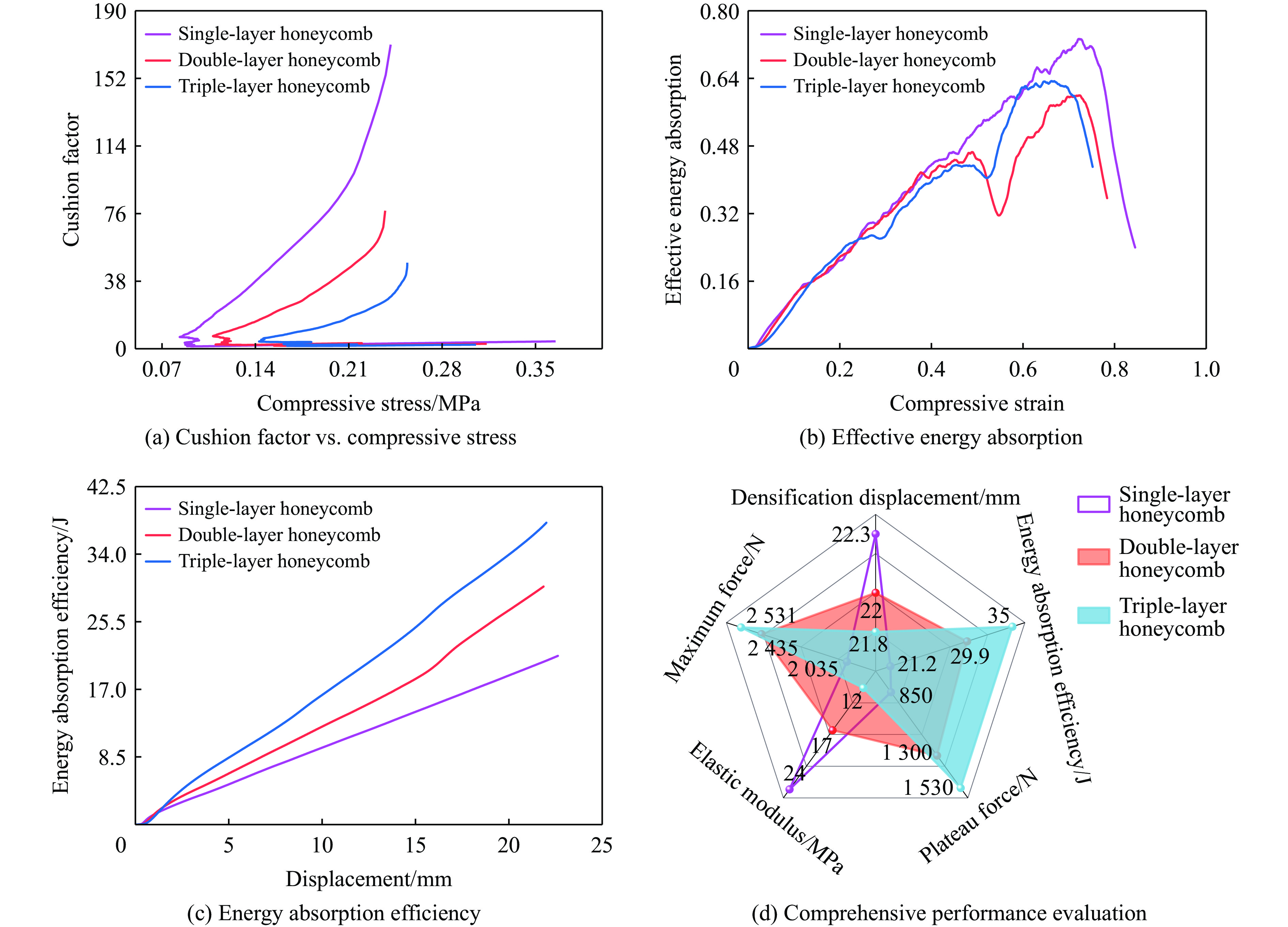 在包装领域中,用于保护产品的蜂窝纸板用量设计大多依赖于经验,易造成浪费。本研究基于多层纸蜂窝结构的缓冲特性,构建了一套等厚约束下,基于脆值理论的包装结构快速设计方法。首先通过静态压缩与动态冲击试验,获取了不同构型蜂窝材料的力-位移曲线与能量吸收特性,同时结合数值模拟方法,揭示了不同构型在加载过程中的变形模式与力学响应机制。并基于试验所得的结构缓冲特性数据,实现多层蜂窝包装结构的快速参数化设计,并通过有限元模型对设计方案的缓冲效果进行了数值验证。结果表明,在静压试验中,三层纸蜂窝有效吸能比单层纸蜂窝结构多吸收65.1%能量,其应力-应变曲线呈现明显的多次平台应力区域,在冲击荷载作用下,三层纸蜂窝在受到小于81.6J能量冲击下,未进入致密段,而单层纸蜂窝结构在受到大于53.8J能量冲击下,出现力值陡增现象,多层纸蜂窝结构在冲击下具备更优的吸能特性。基于脆值与试验所得多层蜂窝结构缓冲特性进行结构包装逆向设计,于有限元模型中进行验证,证明了设计方法的有效性。与现有蜂窝包装结构设计方法相比,该设计方法具备更高效率与准确性,于缓冲包装结构设计与其它冲击领域中具备一定前景。