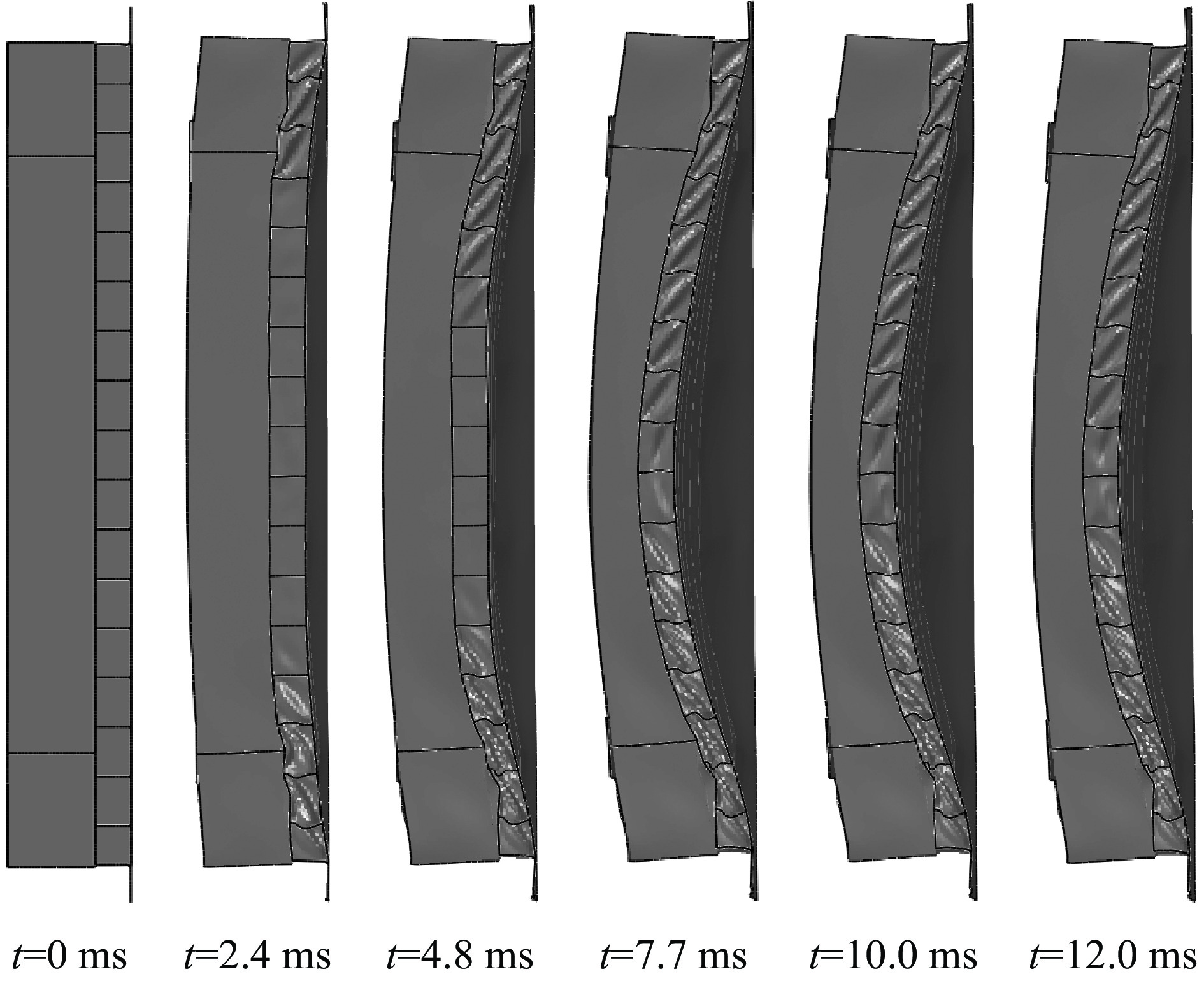 为提高薄壁夹层结构耐撞性,以虾螯为仿生原型,设计梯度分布的仿生波纹形夹层结构,包括单层、双层和三层波纹结构。以初始峰值载荷Fp、比吸能Es为耐撞性指标,利用有限元法分析了单元高宽比γ(γ1、γ2和γ3分别为单元第1层、第2层和第3层的高宽比)对波纹夹层结构耐撞性的影响,采用多目标粒子群优化方法得到了夹层结构最优参数。结果表明,单层波纹结构耐撞性随单元高宽比γ的增大逐渐变差,双层波纹结构下层结构单元高宽比γ对耐撞性的影响大于上层结构单元高宽比γ对耐撞性的影响,较小的γ值有利于提高三层波纹结构的比吸能。结构优化结果表明:单层结构最优尺寸γ1为0.8;双层结构最优尺寸为γ1 = 0.5和γ2 = 1.2;三层结构最优组合为γ1 = 0.6,γ2 = 0.6和γ3 = 0.9。上述结果可为薄壁夹层结构轻量化设计提供新思路。