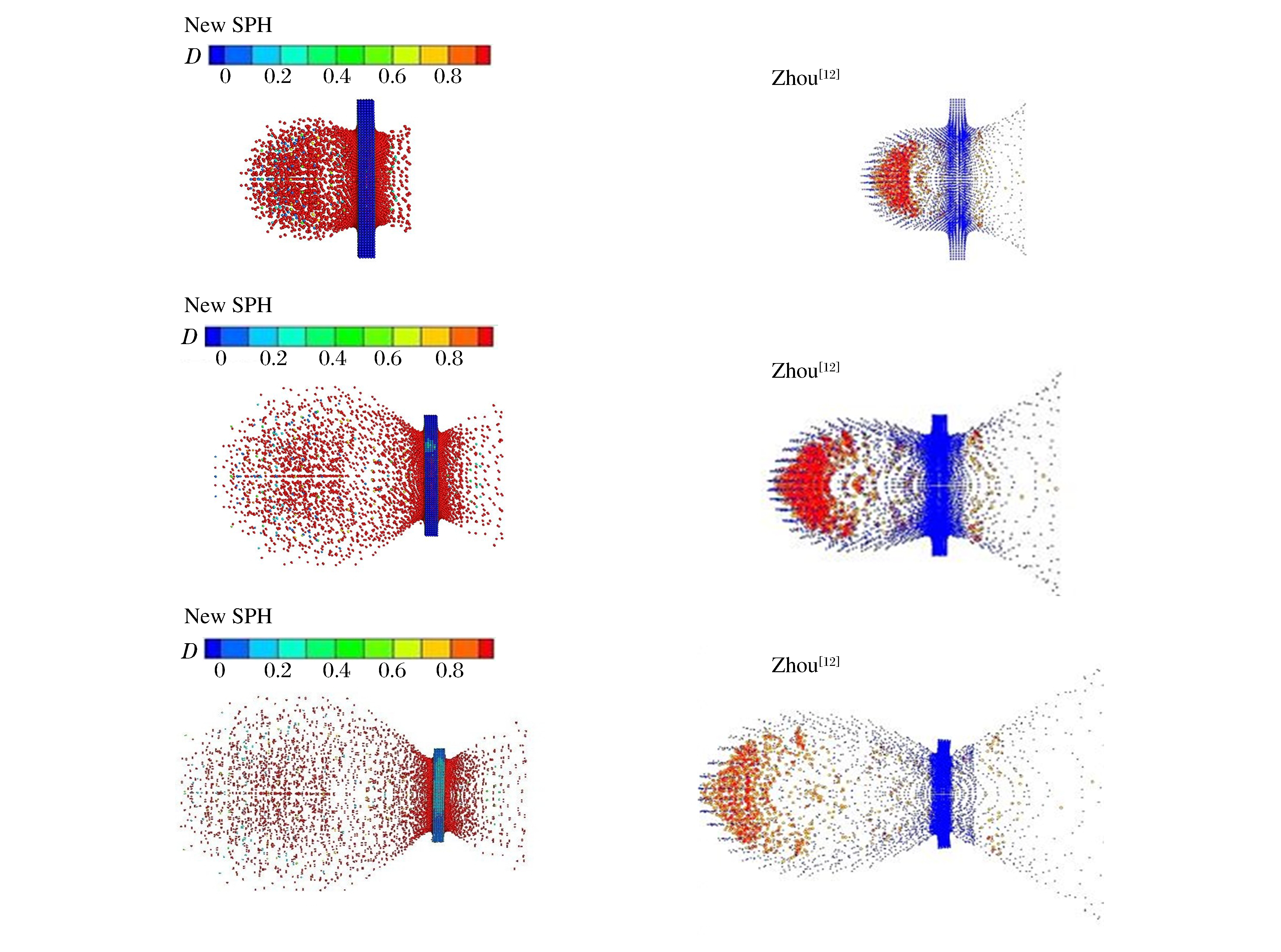 A/MPa B/MPa n C m Tm/K ${\dot \varepsilon _0}$/s-1 369 684 0.73 0.083 1.7 775 0.1 CV/(J·kg-1·C-1) D1 D2 D3 D4 D5 875 0.13 0.13 -1.5 0.011 0 表 5 采用SPH新方法的数值模拟结果与实验结果比较