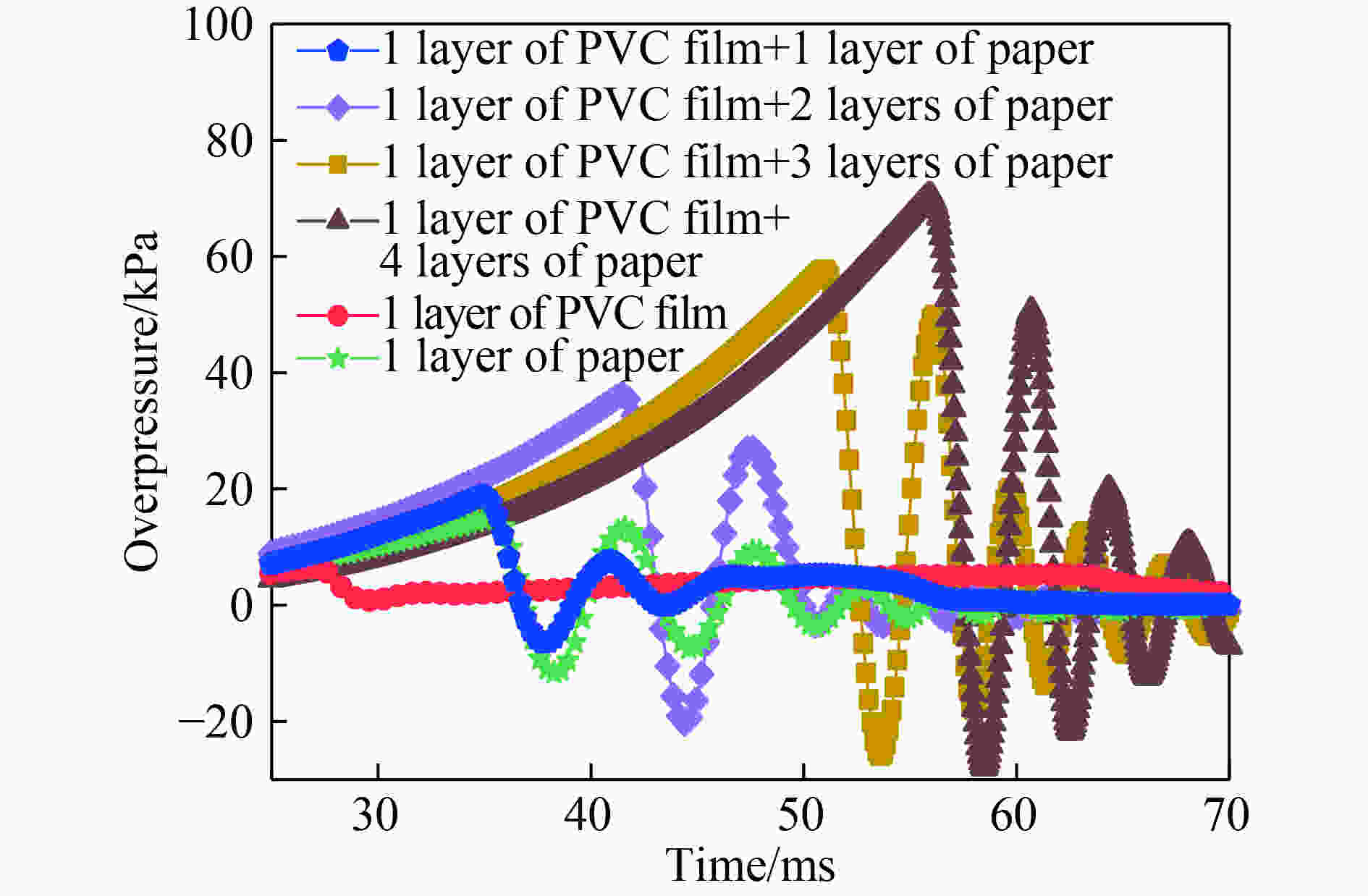 Table 1. Explosion overpressure of methane at different concentrations with the upper end sealed by different materials
