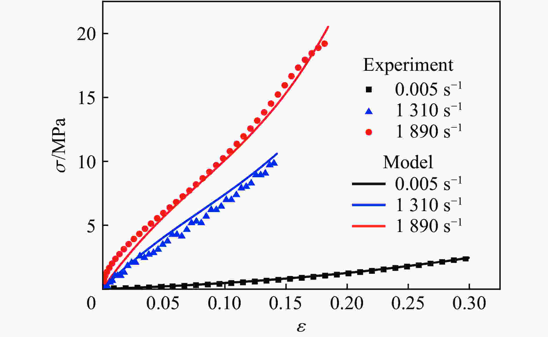 $\dot \varepsilon {\rm{/}}{{\rm{s}}^{{\rm{ - 1}}}}$ 相关系数平方R2 $\dot \varepsilon {\rm{/}}{{\rm{s}}^{{\rm{ - 1}}}}$ 相关系数平方R2 0.001 0.999 9 1 510 0.997 3 0.01 0.998 3 2 260 0.993 0 0.1 0.997 4 3 000 0.996 1 表 4 修正后的ZWT模型的验证结果