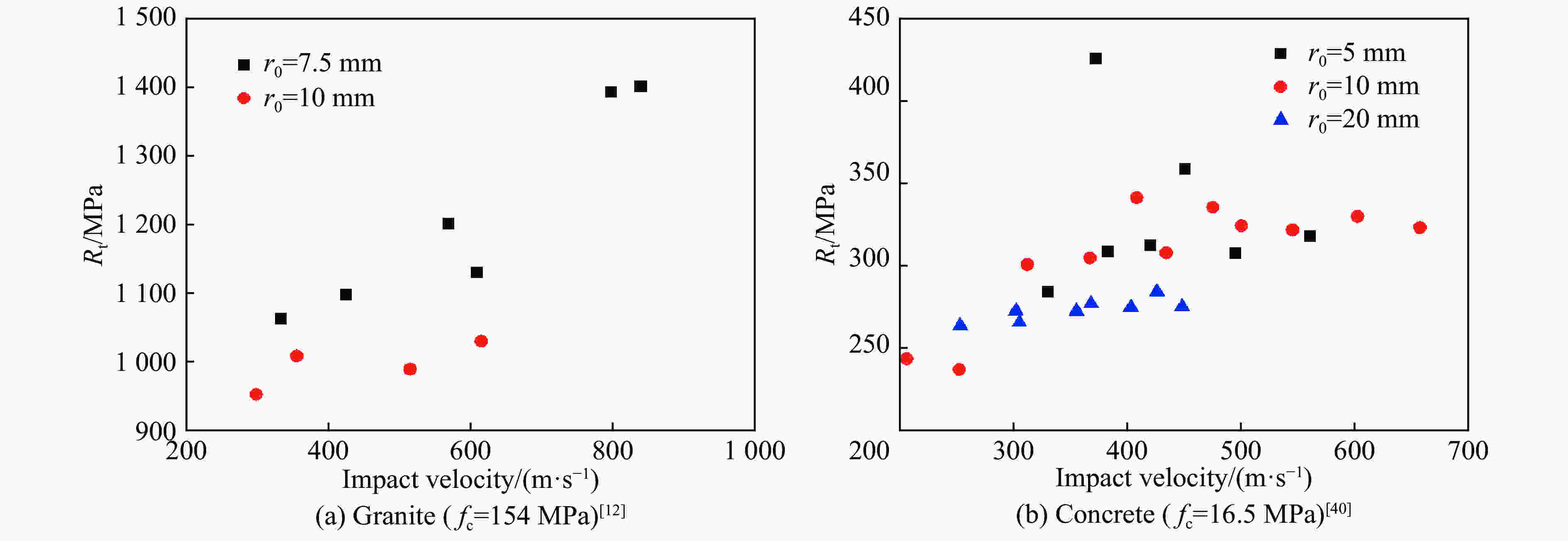 图  8  花岗岩和混凝土靶体Rt随撞击速度的变化规律