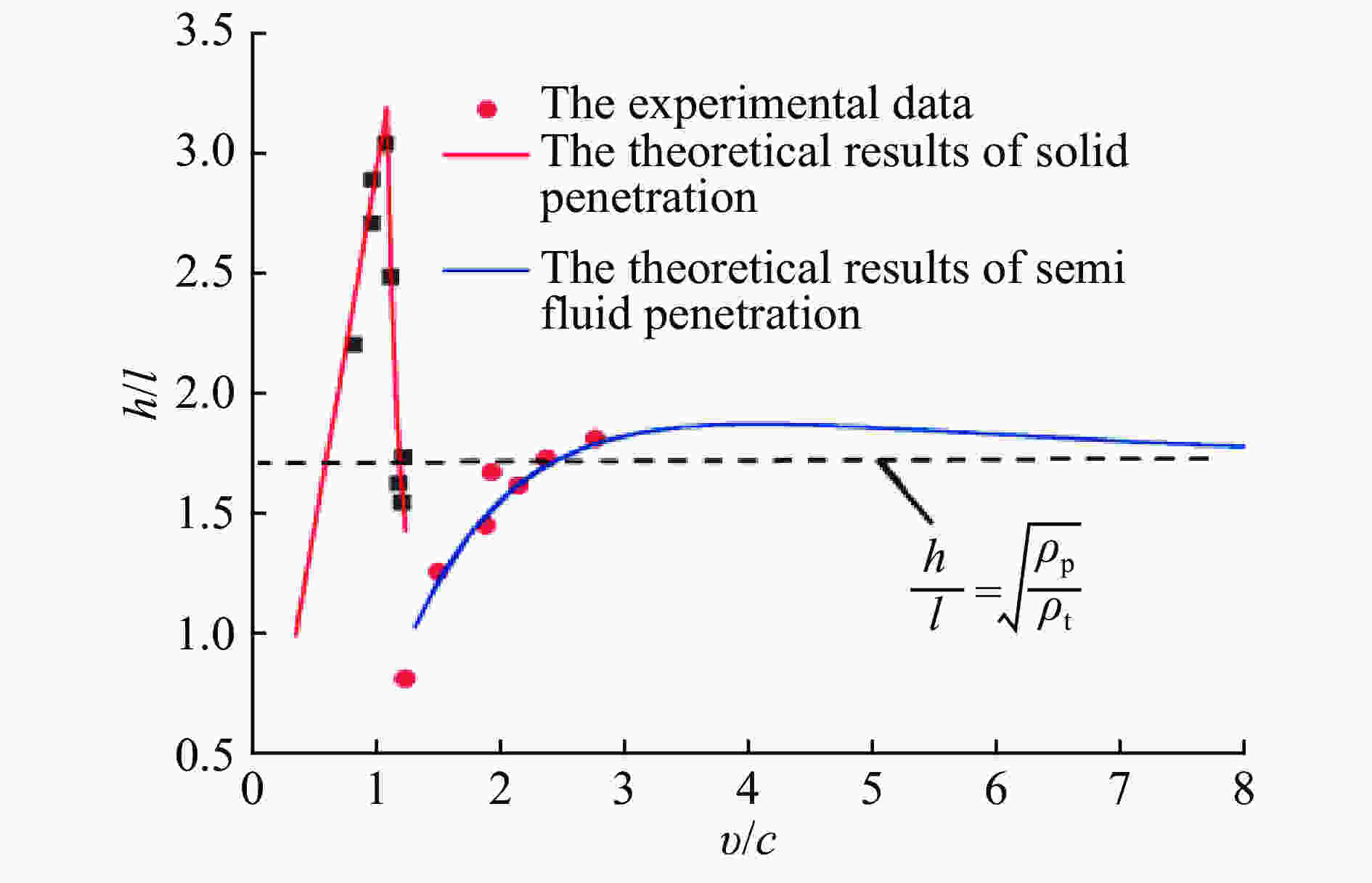 图  3  铝靶侵彻的理论计算与实验结果[23]对比