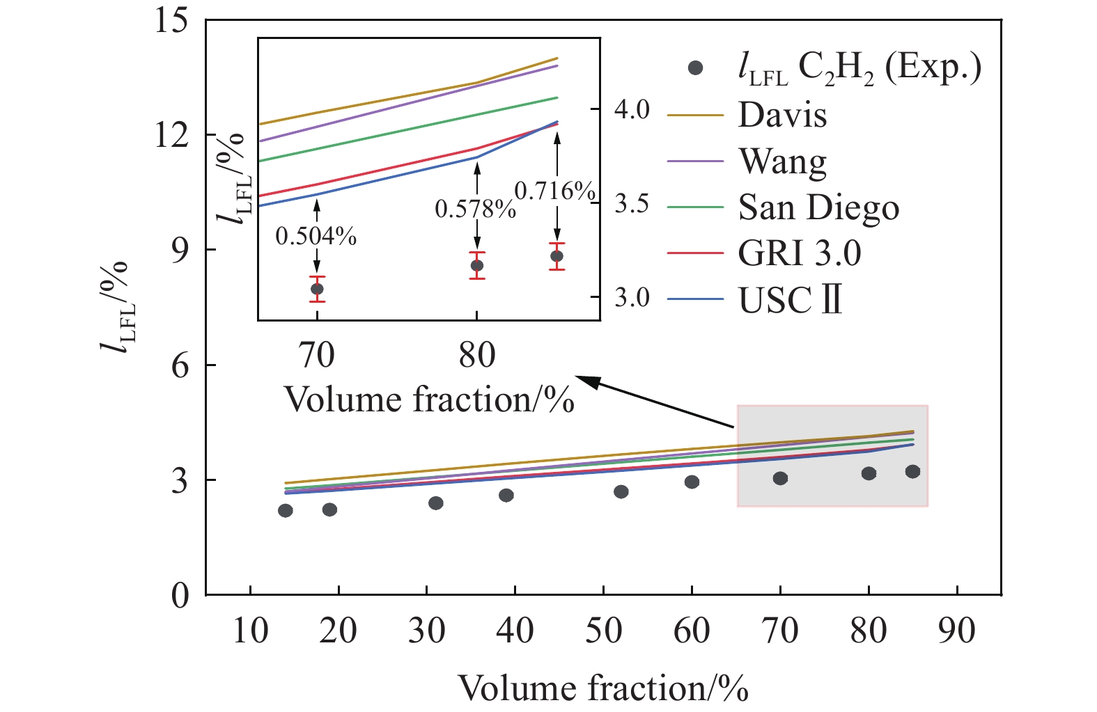 [1] 李旭东, 谭青博, 赵浩辰, 等. 碳达峰背景下中国电力行业碳排放因素和脱钩效应 [J]. 中国电力, 2024, 57(5): 88–98. DOI: 10.11930/j.issn.1004-9649.202306019.LI X D, TAN Q B, ZHAO H C, et al. Carbon emission factors and decoupling effects of China’s power industry under the background of carbon peak [J]. Electric Power, 2024, 57(5): 88–98. DOI: 10.11930/j.issn.1004-9649.202306019. [2] ZHAO F M, ROGERS W J, MANNAN M S. Experimental measurement and numerical analysis of binary hydrocarbon mixture flammability limits [J]. Process Safety and Environmental Protection, 2009, 87(2): 94–104. DOI: 10.1016/j.psep.2008.06.003. [3] 尹林虎, 任小荣, 马利云, 等. 乙炔生产工艺应用与推广 [J]. 江西化工, 2018(1): 39–41. DOI: 10.14127/j.cnki.jiangxihuagong.2018.01.014.YIN L H, REN X R, MA L Y, et al. Application and popularization acetylene production [J]. Jiangxi Chemical Industry, 2018(1): 39–41. DOI: 10.14127/j.cnki.jiangxihuagong.2018.01.014. [4] NGUYEN V G, DAGER B, CHHILLAR A, et al. Desirability-based optimization of dual-fuel diesel engine using acetylene as an alternative fuel [J]. Case Studies in Thermal Engineering, 2024, 59: 104488. DOI: 10.1016/j.csite.2024.104488. [5] LAWRENCE K R, ANCHUPOGU P, REDDYGARI M R, et al. Optimization of biodiesel yield and performance investigations on diesel engine powered with hydrogen and acetylene gas injected with enriched Jojoba biodiesel blend [J]. International Journal of Hydrogen Energy, 2024, 50: 502–523. DOI: 10.1016/j.ijhydene.2023.09.166. [6] HU X Z, YU Q B, SUN N, et al. Effects of high concentrations of CO2 on the lower flammability limits of oxy-methane mixtures [J]. Energy & Fuels, 2016, 30(5): 4346–4352. DOI: 10.1021/acs.energyfuels.6b00492. [7] HU X Z, YU Q B, SUN Y S. Effects of carbon dioxide on the upper flammability limits of methane in O2/CO2 atmosphere [J]. Energy, 2020, 208: 118417. DOI: 10.1016/j.energy.2020.118417. [8] SONG D E, HU X Z. Effects of CO2 on the flammability limits of ethane in O2/CO2 atmosphere [J]. Fuel, 2022, 324: 124543. DOI: 10.1016/j.fuel.2022.124543. [9] HU X Z, XIE Q H, YU Q B, et al. Effect of carbon dioxide on the lower flammability limit of propane in O2/CO2 atmosphere [J]. Energy & Fuels, 2020, 34(4): 4993–4998. DOI: 10.1021/acs.energyfuels.0c00601. [10] CHENG F M, LI B B, LUO Z M, et al. Effect of CO2 on the explosion limit parameters and kinetic characteristics of ammonia-hydrogen-air mixtures [J]. Journal of Loss Prevention in the Process Industries, 2024, 92: 105480. DOI: 10.1016/j.jlp.2024.105480. [11] TIAN Y, BAI M Q, LI Y X, et al. Effects of N2 and CO2 on the flammability of 2, 3, 3, 3-tetrafluoropropene at elevated temperatures [J]. Journal of Loss Prevention in the Process Industries, 2023, 83: 105024. DOI: 10.1016/j.jlp.2023.105024. [12] KIM T, BUKAR M, BASNET S, et al. Effects of O2 concentration of O2/CO2 co-flow on the flame stability of non-premixed coaxial jet flame [J]. Fuel, 2024, 371: 132114. DOI: 10.1016/j.fuel.2024.132114. [13] 陈肯, 张一泽, 孙肇林, 等. O2/CO2气氛下CH4/H2可燃下极限的实验研究 [J]. 冶金能源, 2019, 38(6): 31–36. DOI: 10.3969/j.issn.1001-1617.2019.06.008.CHEN K, ZHANG Y Z, SUN Z L, et al. Experimental study on the lower flammability limits of CH4/H2 in O2/CO2 atmosphere [J]. Metallurgical Energy, 2019, 38(6): 31–36. DOI: 10.3969/j.issn.1001-1617.2019.06.008. [14] KUMUK O. CO2, Ar, and He dilution effects on combustion dynamics and characteristics in a laboratory-scale combustor [J]. Fuel, 2024, 369: 131745. DOI: 10.1016/j.fuel.2024.131745. [15] BAZALAN B B. Effect pressure on the flammability limits of acetylene [D]. Pahang: Universiti Malaysia Pahang, 2012. [16] WANG H, YOU X Q, JOSHI A V, et al. High-temperature combustion reaction model of H2/CO/C1-C4 compounds [EB/OL]. [2024-09-23]. http://ignis.usc.edu/USC_Mech_II.htm. [17] XU K W, HE C L, YIN J Z, et al. Relevance of soot formation characteristics to equivalence ratio and CO2 addition of acetylene flame [J]. Powder Technology, 2022, 412: 117978. DOI: 10.1016/j.powtec.2022.117978. [18] SIST EN 1839: Determination of explosion limits of gases and vapours and determination of the limiting oxygen concentration (LOC) for flammable gases and vapours [S]. SIST, 2017. [19] ISO. ISO 6141: 2015 Gas analysis-contents of certificates for calibration gas mixtures [S]. Geneva: ISO, 2015. [20] PIO G, SALZANO E. Evaluation of safety parameters of light alkenes by means of detailed kinetic models [J]. Process Safety and Environmental Protection, 2018, 119: 131–137. DOI: 10.1016/j.psep.2018.07.024. [21] 梁容真. 单组分气体燃料在O2/CO2气氛下的可燃极限研究 [D]. 沈阳: 东北大学, 2020. DOI: 10.27007/d.cnki.gdbeu.2020.002827.LIANG R Z. Study on the flammability limit of single-component gas fuel at O2/CO2 atmosphere [D]. Shenyang: Northeastern University, 2020. DOI: 10.27007/d.cnki.gdbeu.2020.002827. [22] ZHANG Y, SHEN W F, ZHANG H, et al. Effects of inert dilution on the propagation and extinction of lean premixed syngas/air flames [J]. Fuel, 2015, 157: 115–121. DOI: 10.1016/j.fuel.2015.05.007. [23] HU E J, JIANG X, HUANG Z H, et al. Numerical study on the effects of diluents on the laminar burning velocity of methane-air mixtures [J]. Energy & Fuels, 2012, 26(7): 4242–4252. DOI: 10.1021/ef300535s. -