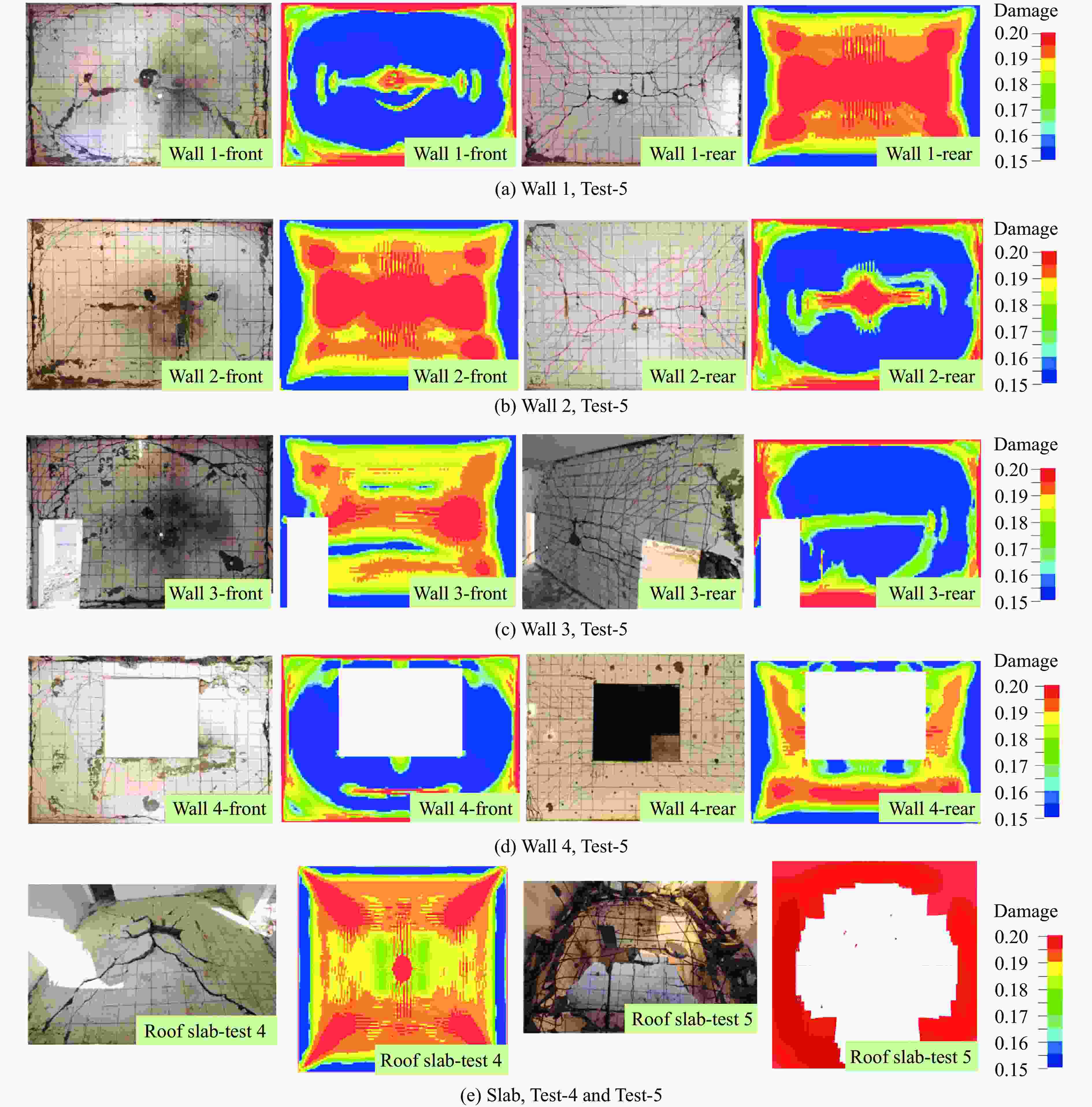 TNT当量/kg 距离/m 构件 尺寸/mm 厚度/mm 位移/mm 2.3 1.41 顶板 5 000×5 000 180 19.8 2.38 墙 3 000×5 000 240 1.5 4.5 1.41 顶板 5 000×5 000 180 50.0 2.38 墙 3 000×5 000 240 9.9 9.0 1.41 顶板 5 000×5 000 180 122.0 2.38 墙 3 000×5 000 240 45.0 -