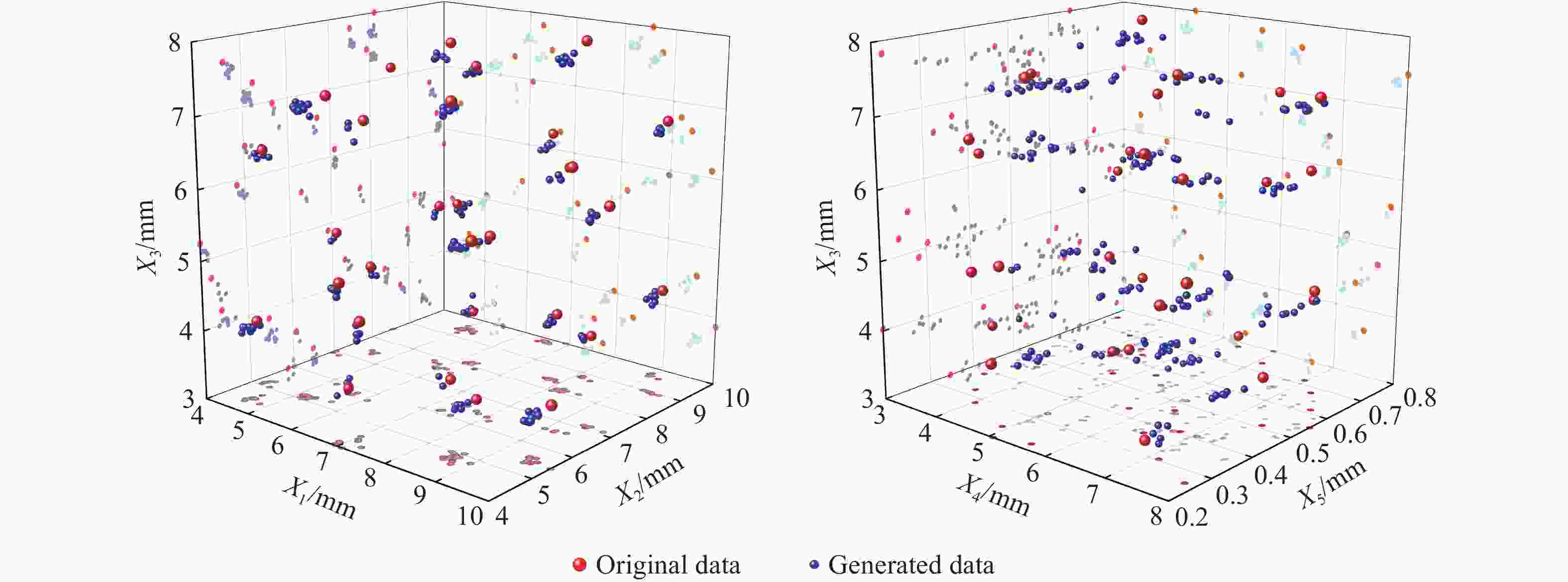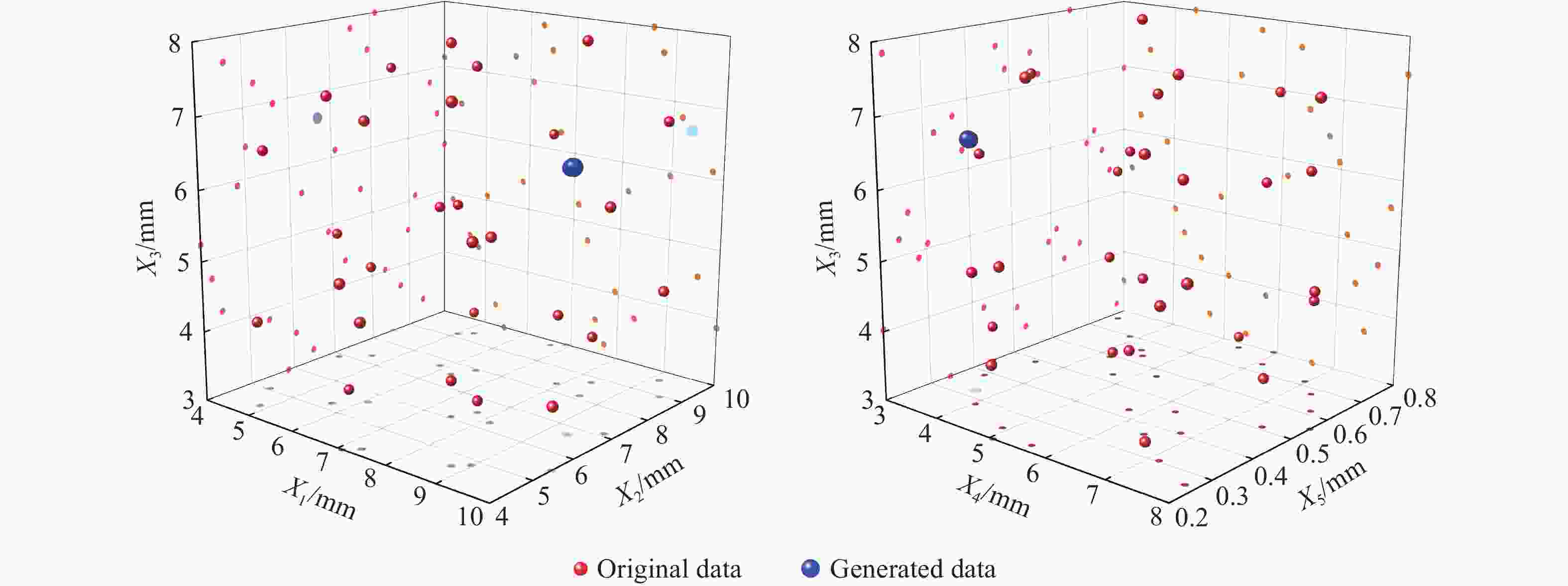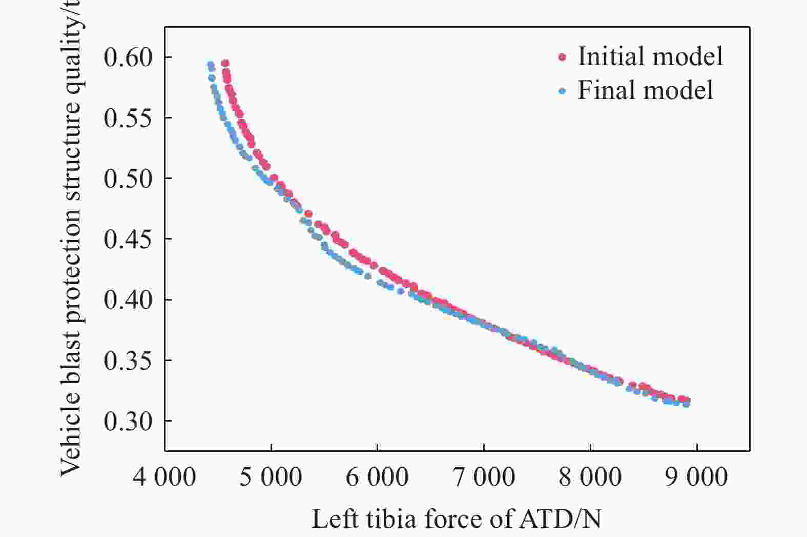 模型 X1/mm X2/mm X3/mm X4/mm X5/mm $ {Y}_{1} $/N $ {Y}_{2} $/t 初始模型 9.7 8.0 5.7 5.6 0.60 4574.1 0.595 最终模型 9.9 7.7 5.6 5.1 0.57 4438.0 0.593 表 6 初始模型和最终模型预测结果与仿真计算结果的对比