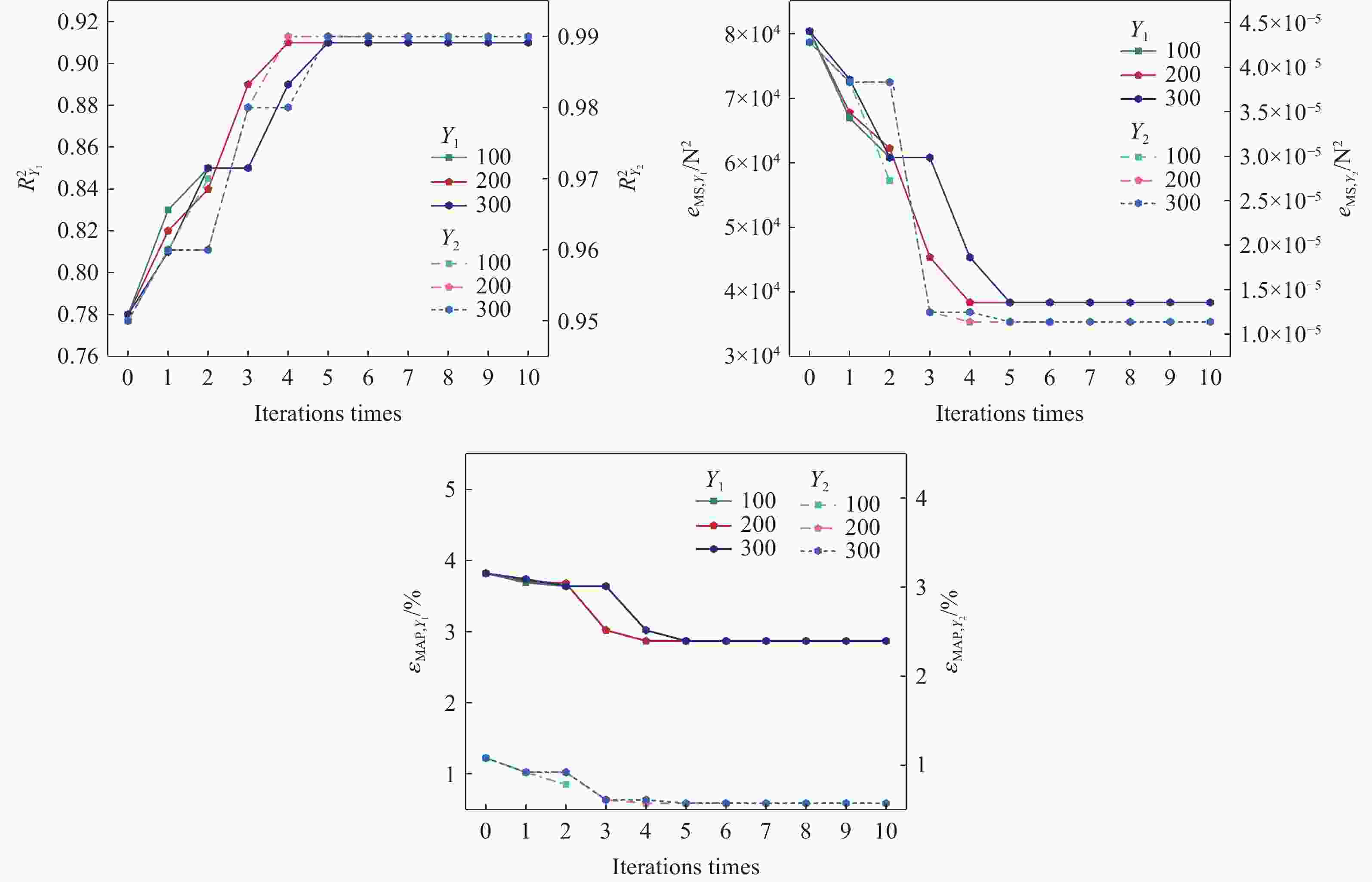 No. X1/mm X2/mm X3/mm X4/mm X5/mm 1 5.240 9.380 3.340 4.720 0.531 $\vdots $ $\vdots $ $\vdots $ $\vdots $ $\vdots $ $\vdots $ 15 5.450 5.860 3.000 6.620 0.345 16 6.900 10.000 5.760 6.100 0.738 $\vdots $ $\vdots $ $\vdots $ $\vdots $ $\vdots $ $\vdots $ 29 9.590 8.970 4.550 4.210 0.593 30 8.140 6.280 5.590 7.830 0.262 表 2 传统优化流程代理模型性能指标