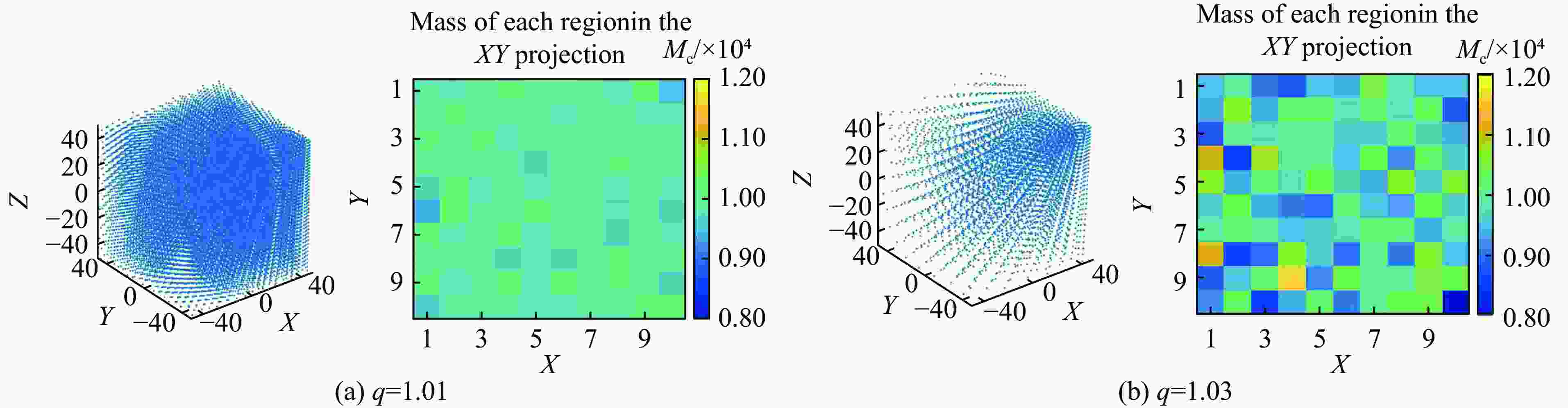 Ares q 总粒子数 总质量 粒子数占比/% 总质量误差/% 1 1.00 1 000 000 1 000 000 100 0 1 1.01 89 859 994 575 8.96 −0.54 1 1.03 10 323 982 158 1.03 −1.78 2 1.00 125 000 1 000 000 100 0 2 1.01 29 714 993 986 23.77 −0.60 2 1.03 5 762 979 872 4.61 −2.01 表 4 相似结果时的不同工况参数
