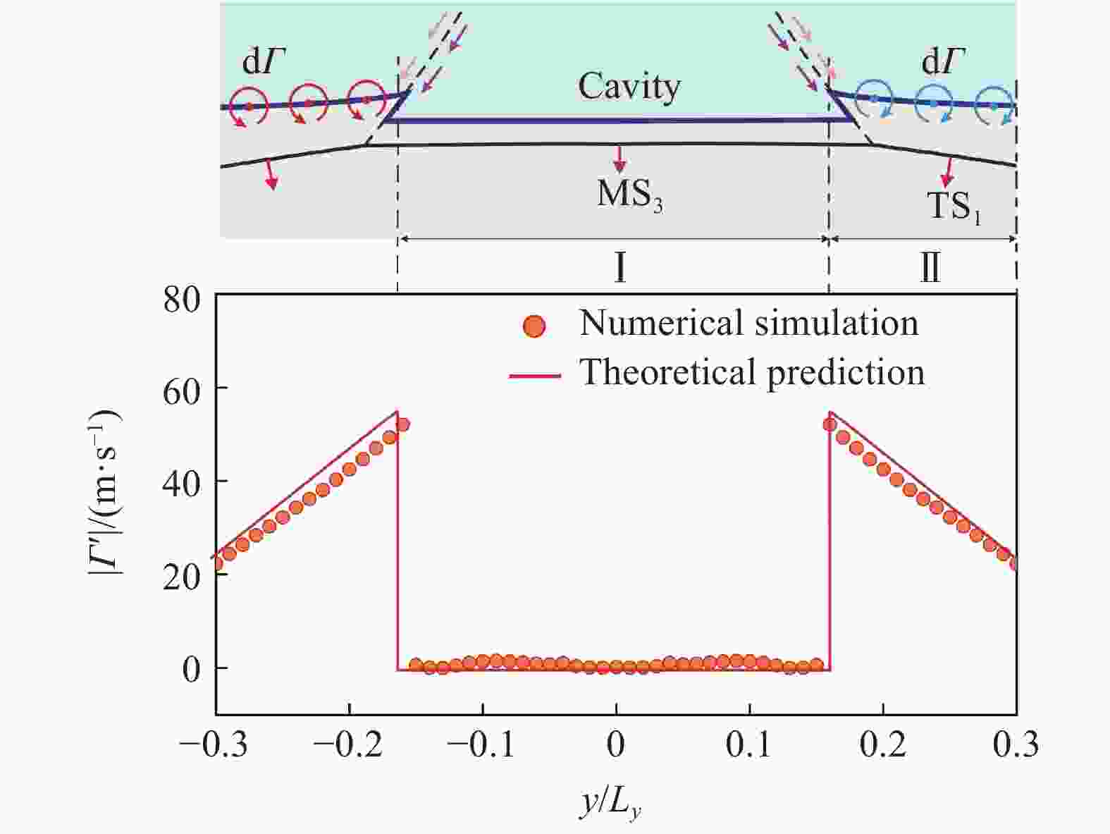 摘要: 采用数值模拟与理论分析相结合的方法,研究了马赫反射波系与平面SF6/N2界面的作用过程,特别关注其中马赫反射波系的入射加载阶段。在入射平面激波马赫数为1.8的情况下,给出了绕刚体圆柱后形成马赫反射波系的数值纹影,定性分析了马赫反射波系入射加载重/轻界面的波系演化过程。运用三激波理论对折射过程进行了分析求解,结果表明,该理论解可以良好预测折射后的激波形态以及界面上的环量沉积和速度扰动。进一步,通过绘制激波极曲线和稀疏波特征线,直观描述了入射加载过程中波系前后的压力变化和气流偏转。理论分析和数值模拟结果均表明,马赫反射波系中激波强度以及入射角的差异诱导了界面上的纵向速度扰动,激波加载带来的切向速度诱导了界面上的环量沉积,速度扰动和环量主导了重/轻界面前期的演化。